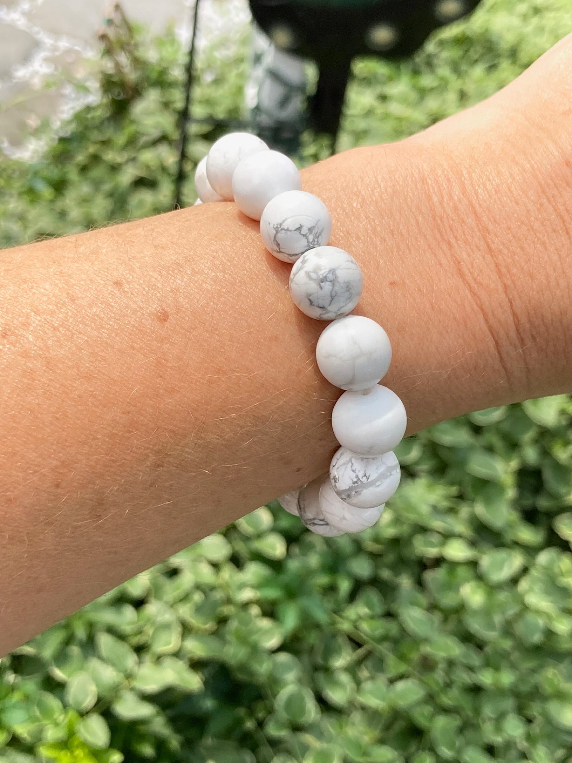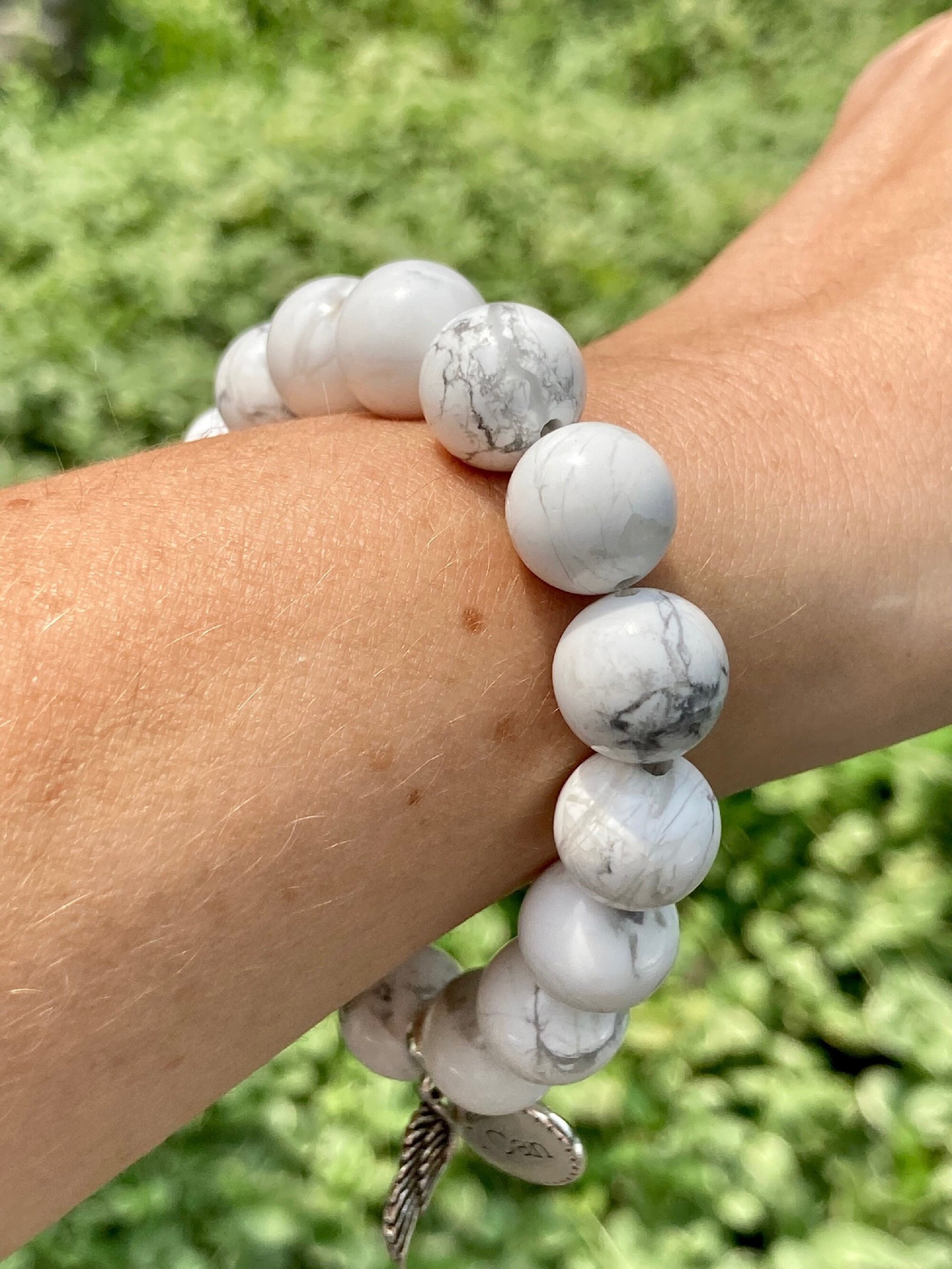 Gemstone Bracelet - White Howlite / Crystal Healing Bracelets, Silver Charms