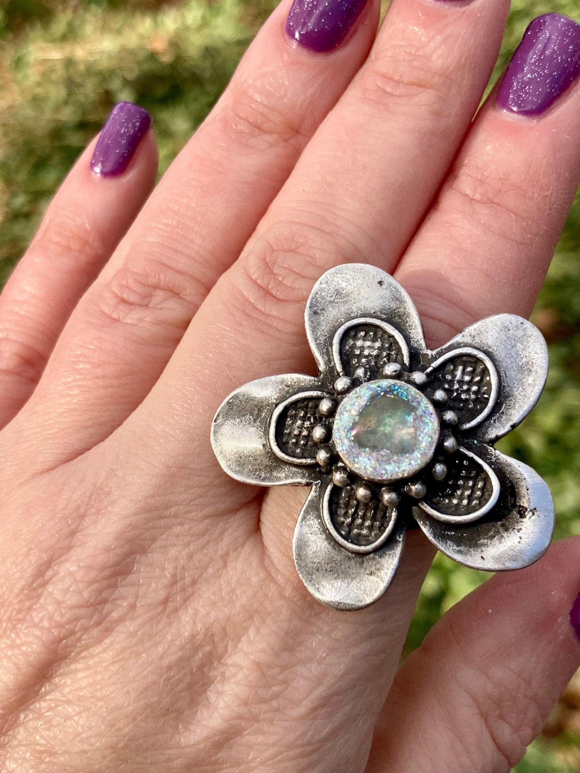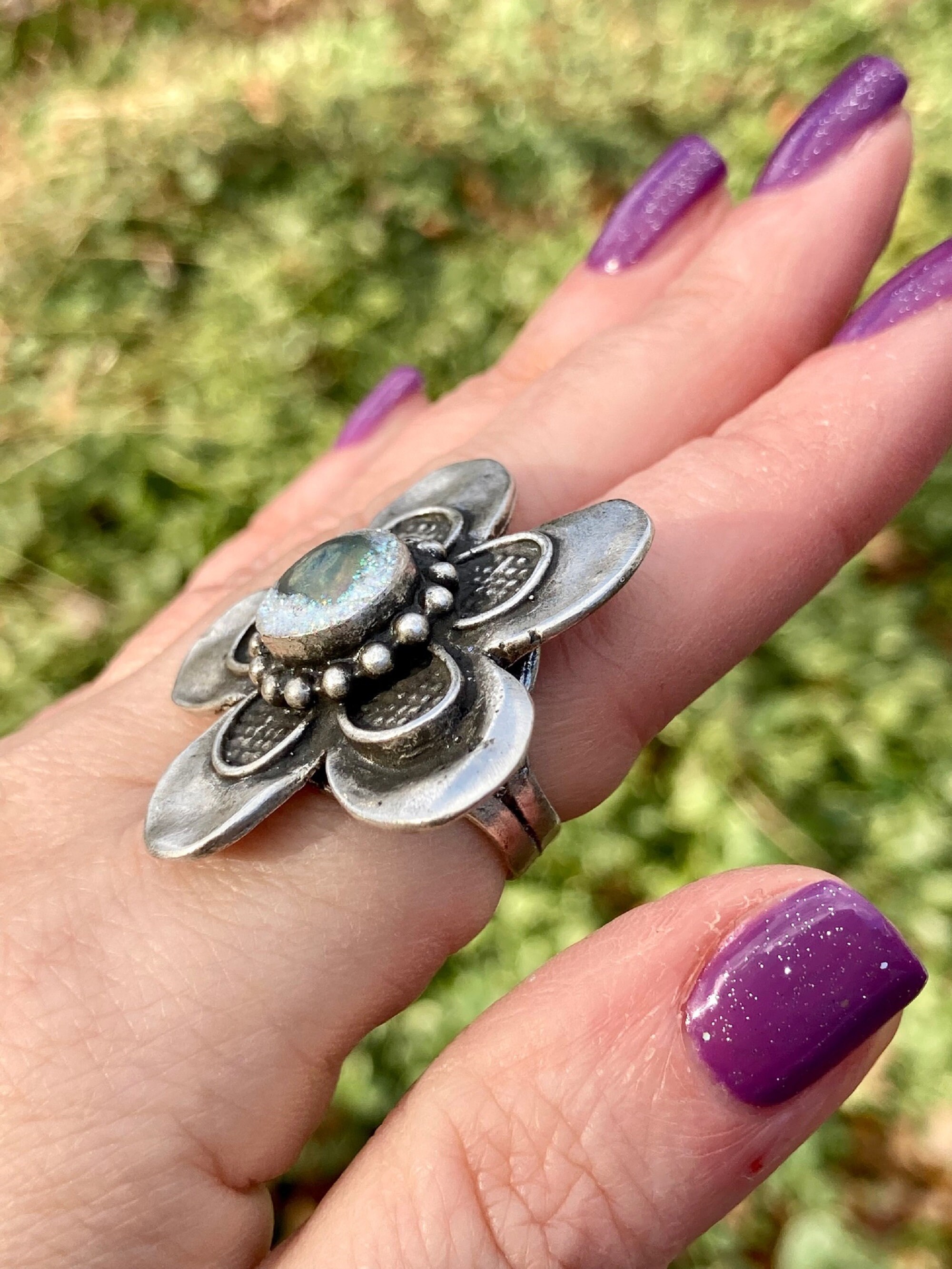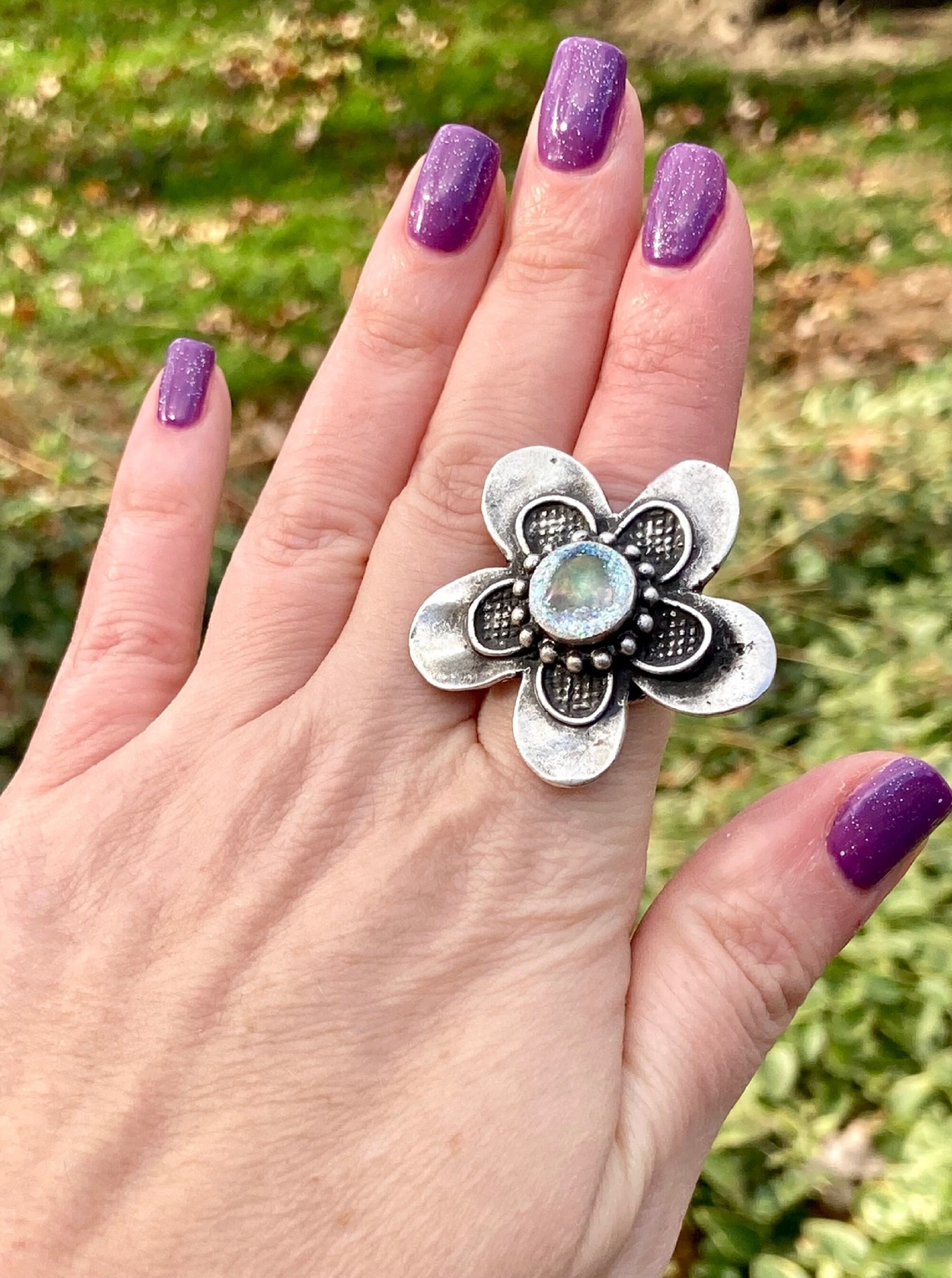 Gemstone Rings - Angel Aura Quartz Crystal Healing Adjustable Witchy Rings, Flower Jewelry, Fairy Jewelry