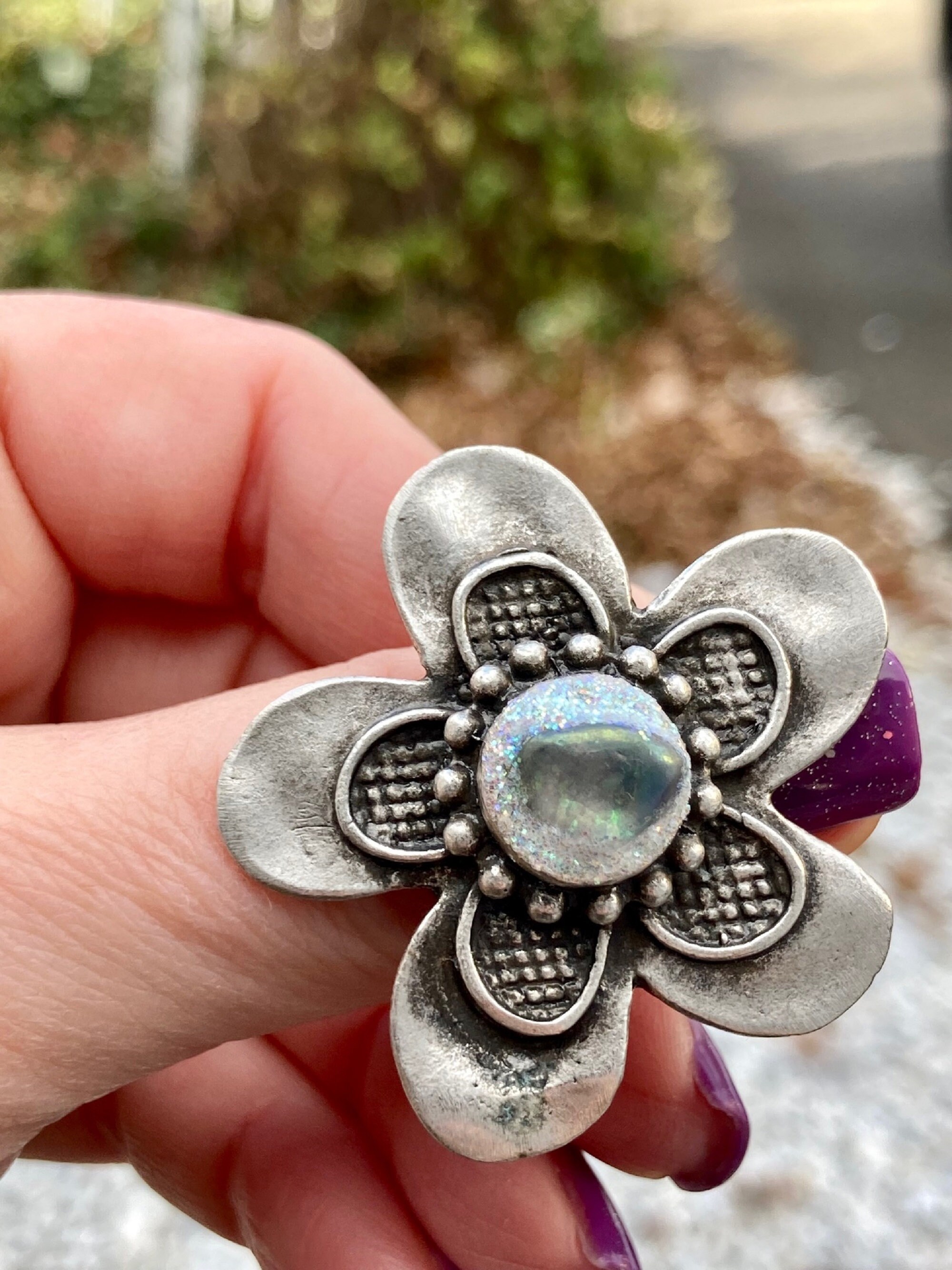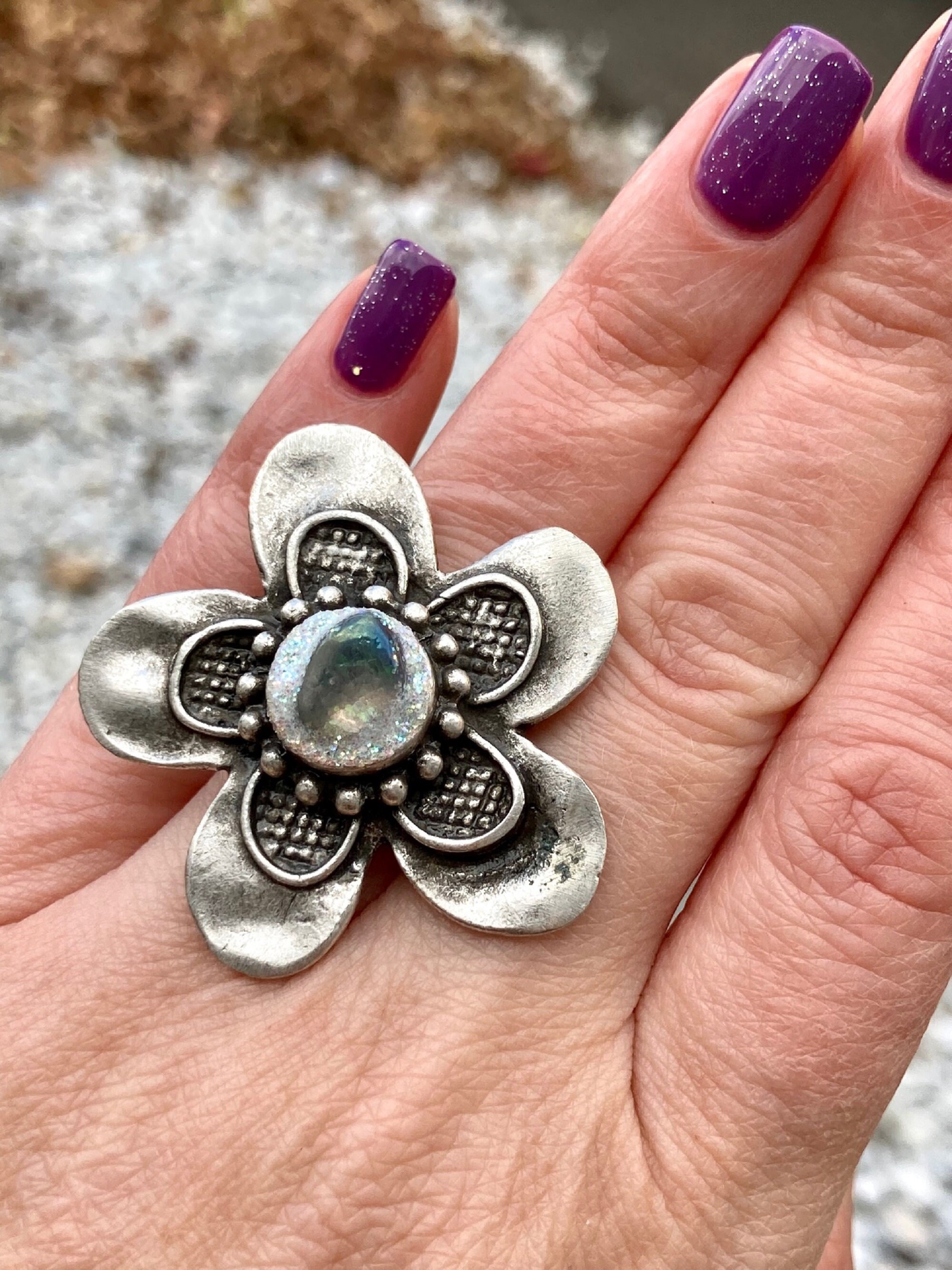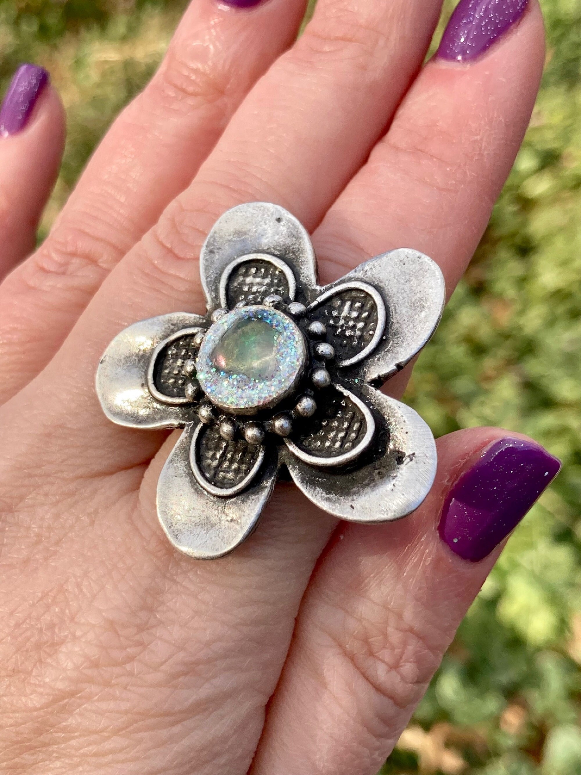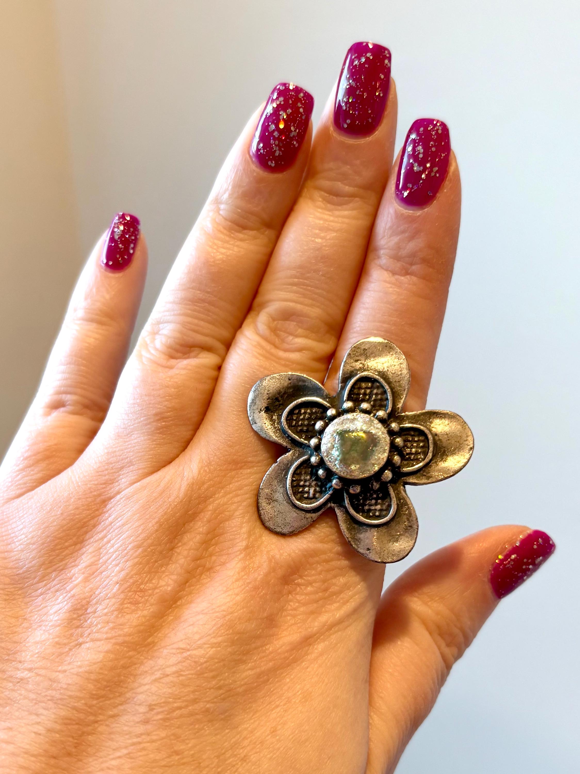 Gemstone Rings - Angel Aura Quartz Crystal Healing Adjustable Witchy Rings, Flower Jewelry, Fairy Jewelry