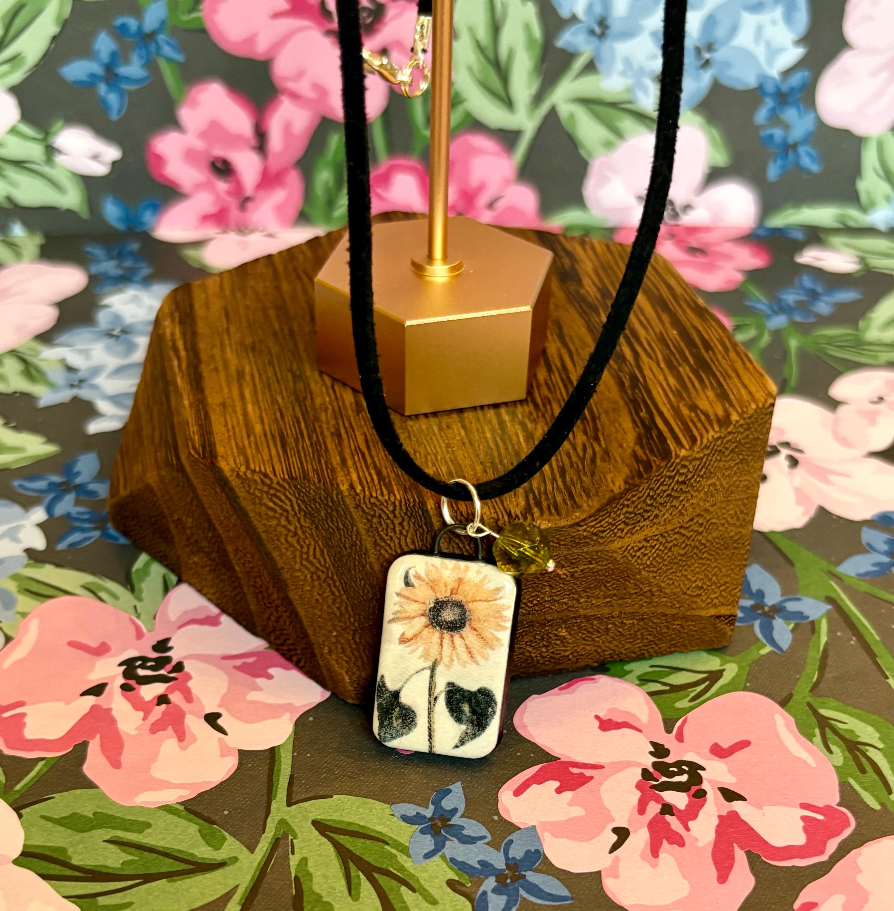 The pendant rests gracefully on a soft black faux suede cord, 18 inches in length, offering both comfort and style for everyday wear. This necklace captures the warmth of  summer/fall sunshine and the promise of new beginnings, making it a thoughtful gift or a meaningful piece for your own collection.