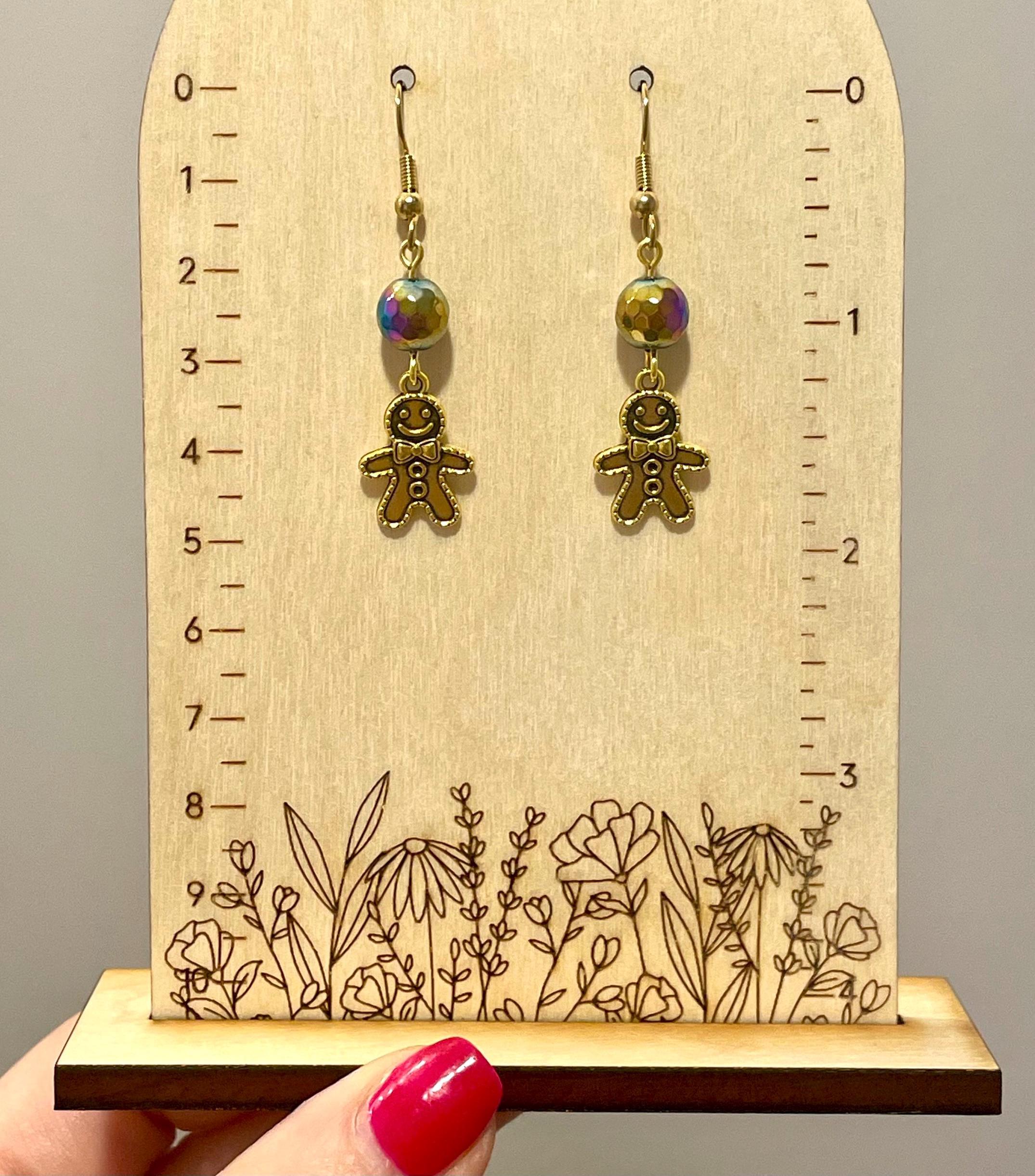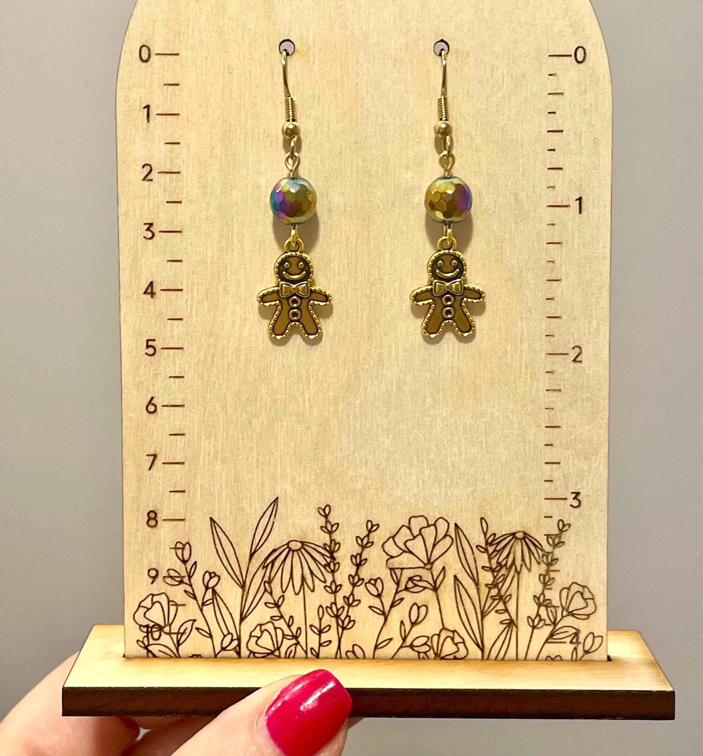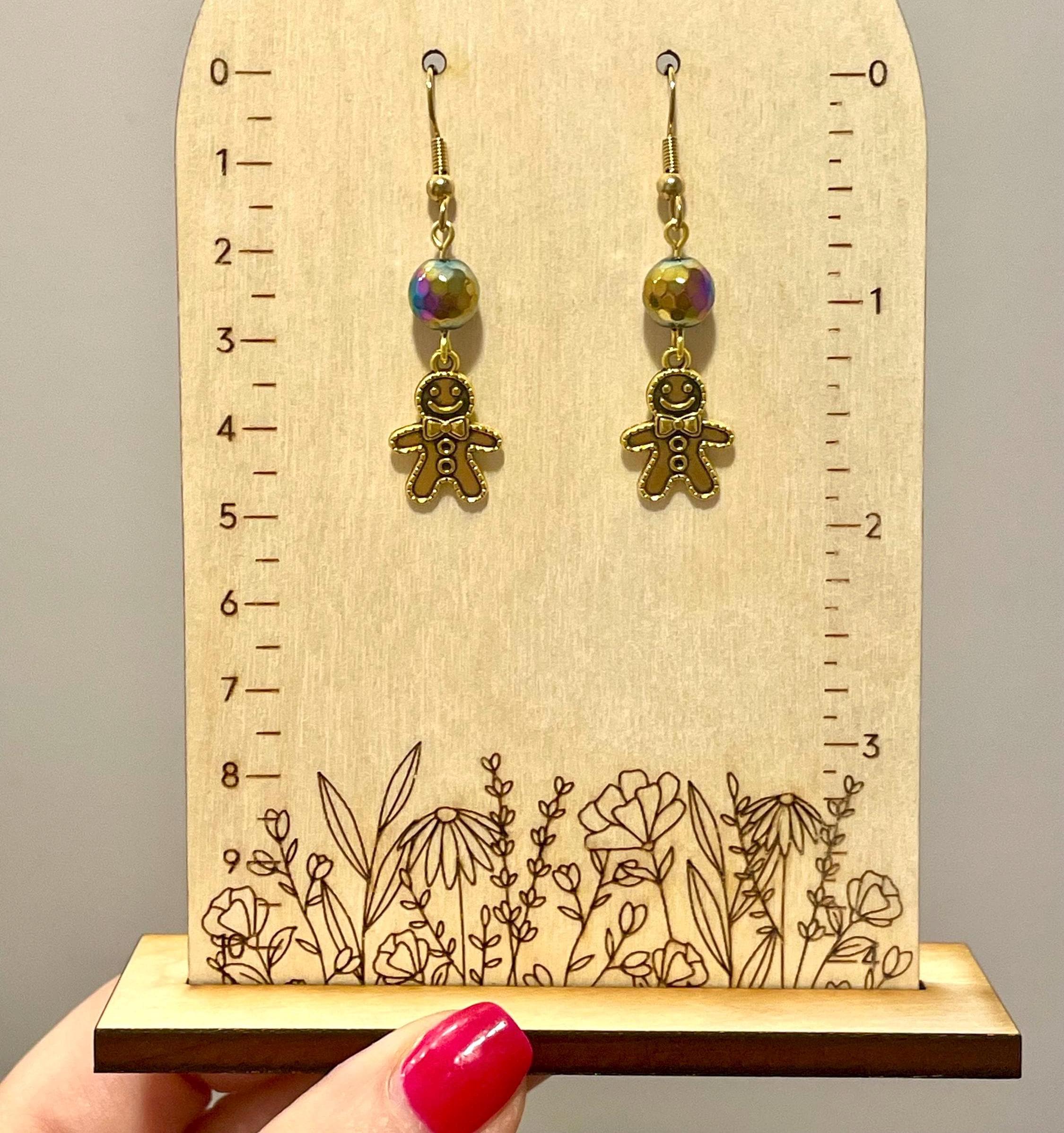 Gemstone Earrings - Titanium Rainbow Hematite Crystal Healing, Gingerbread Boy