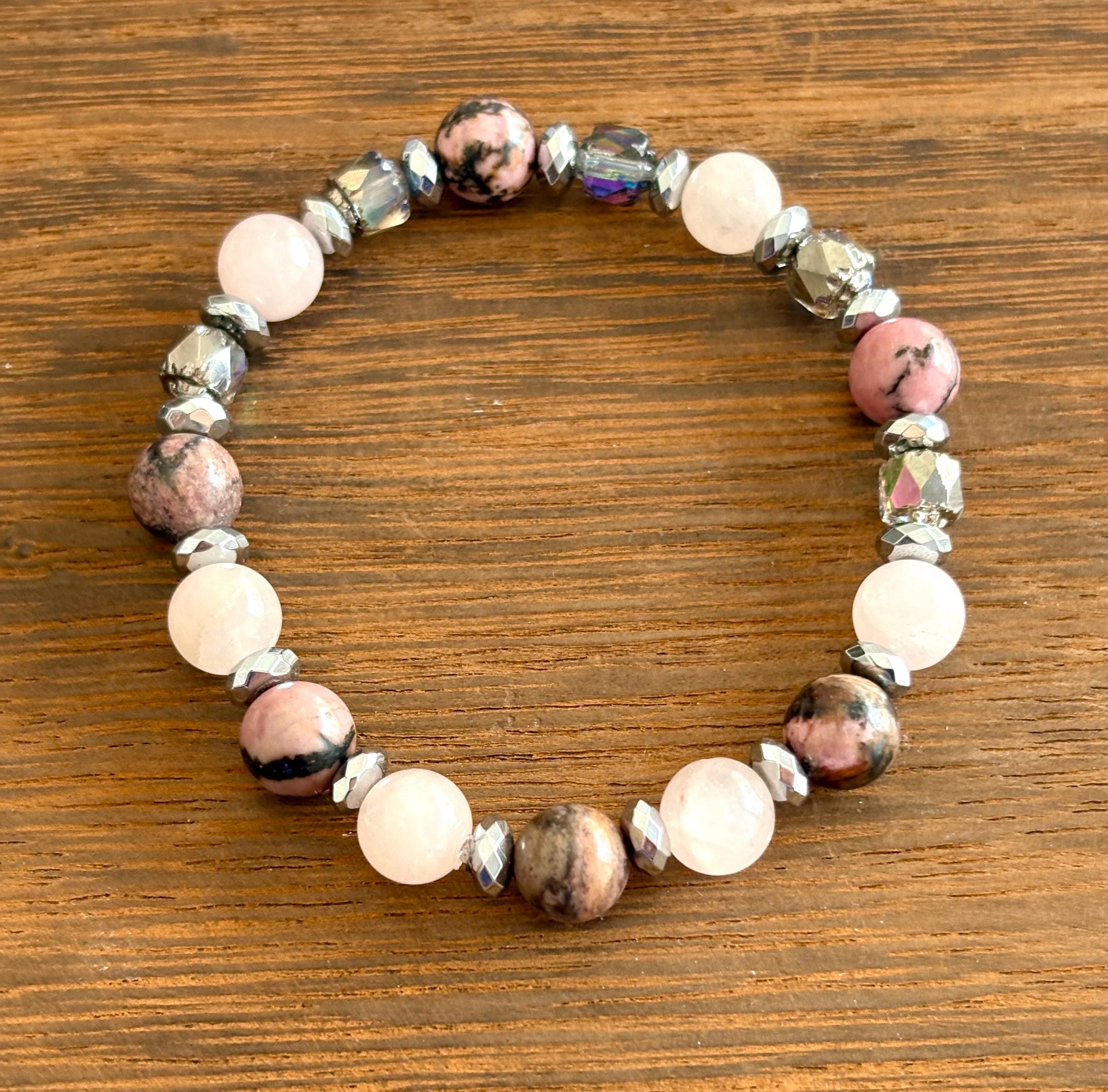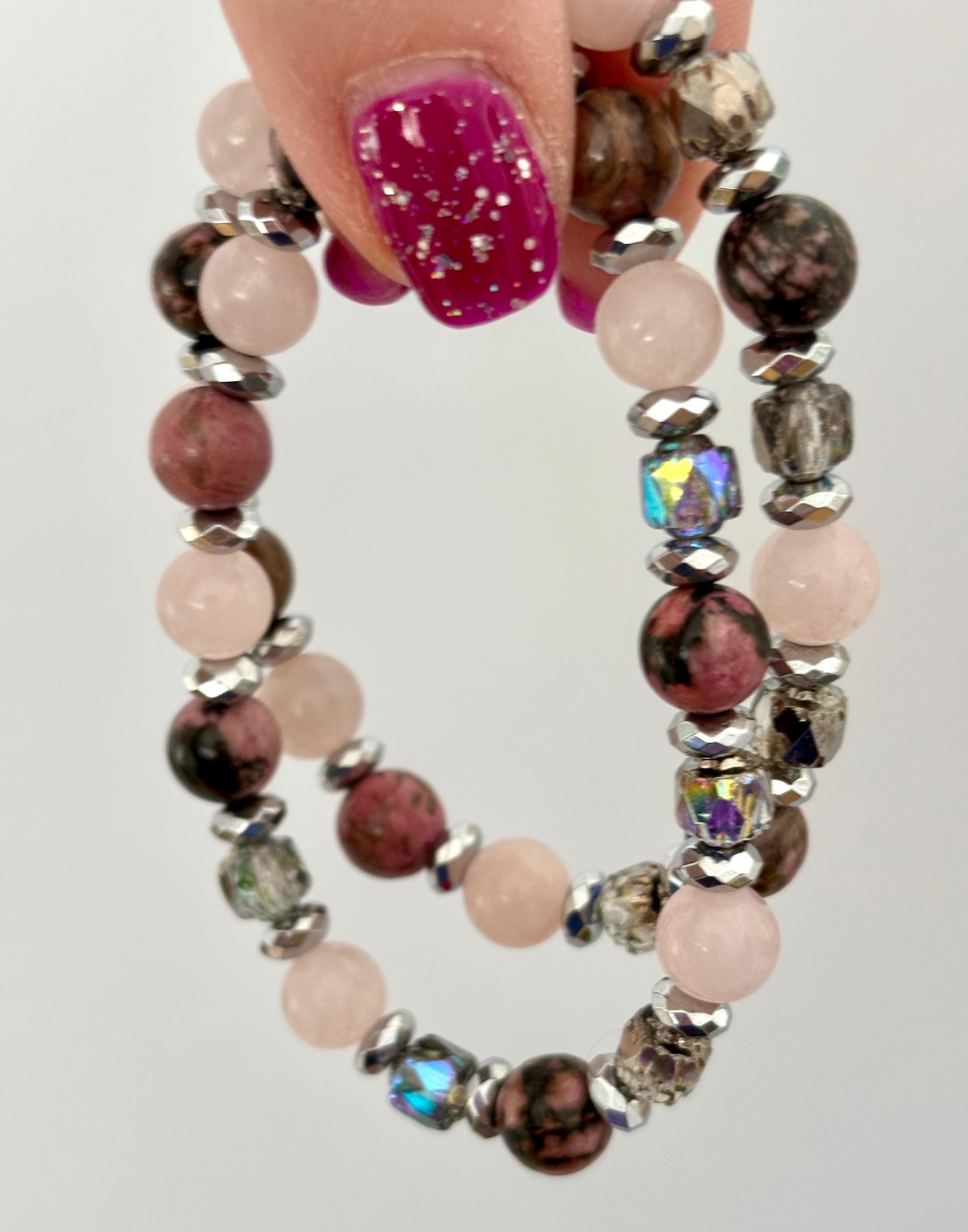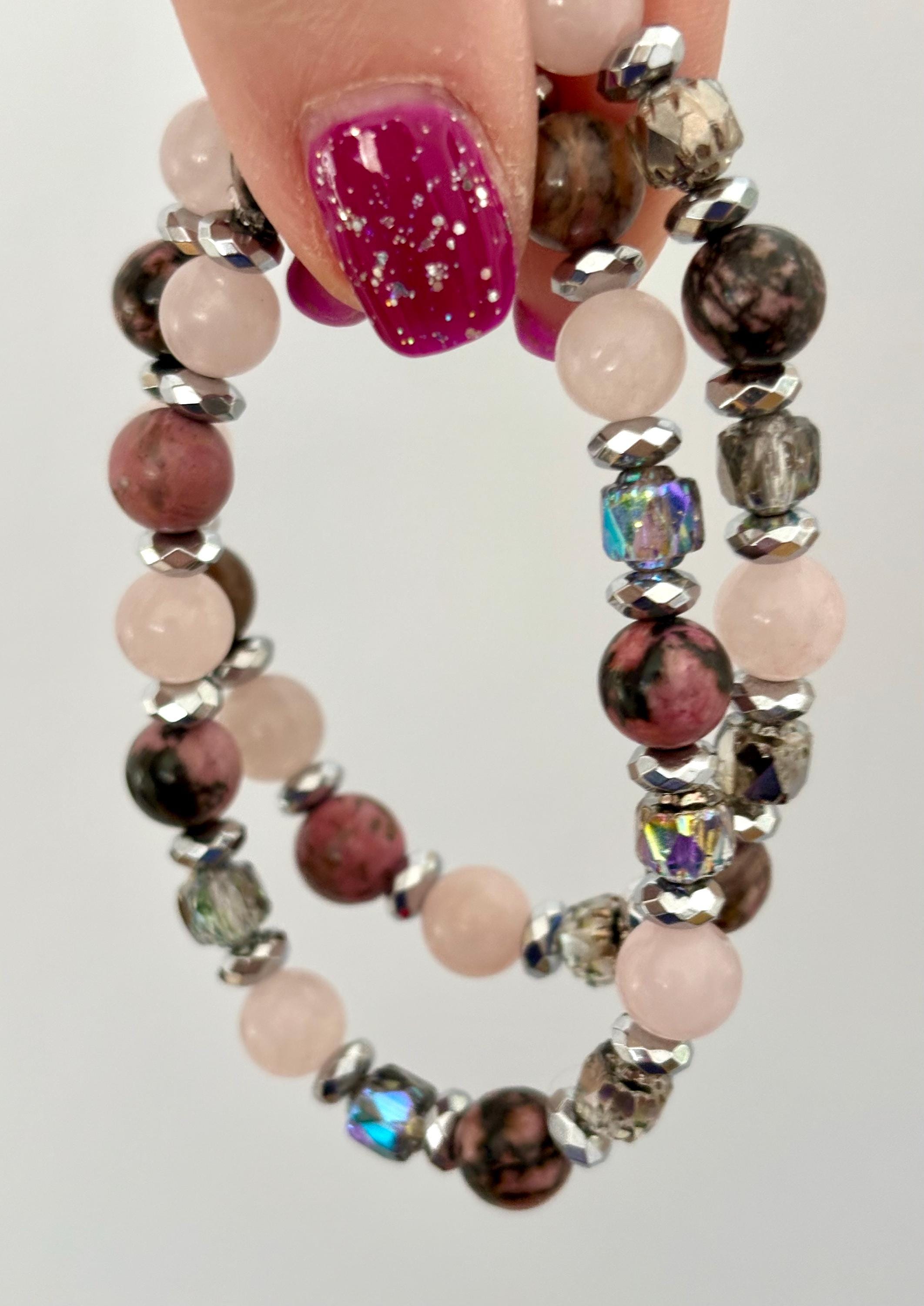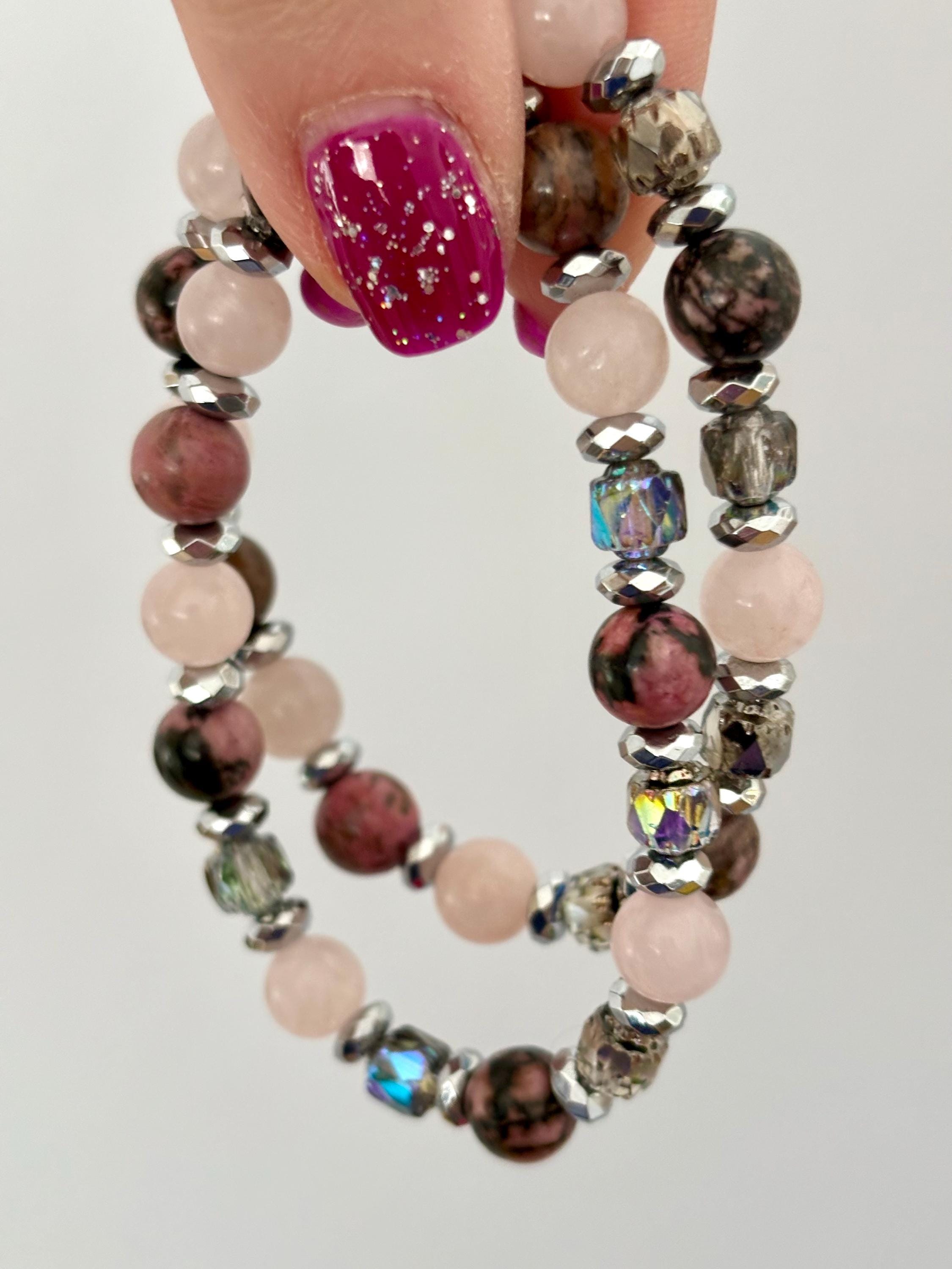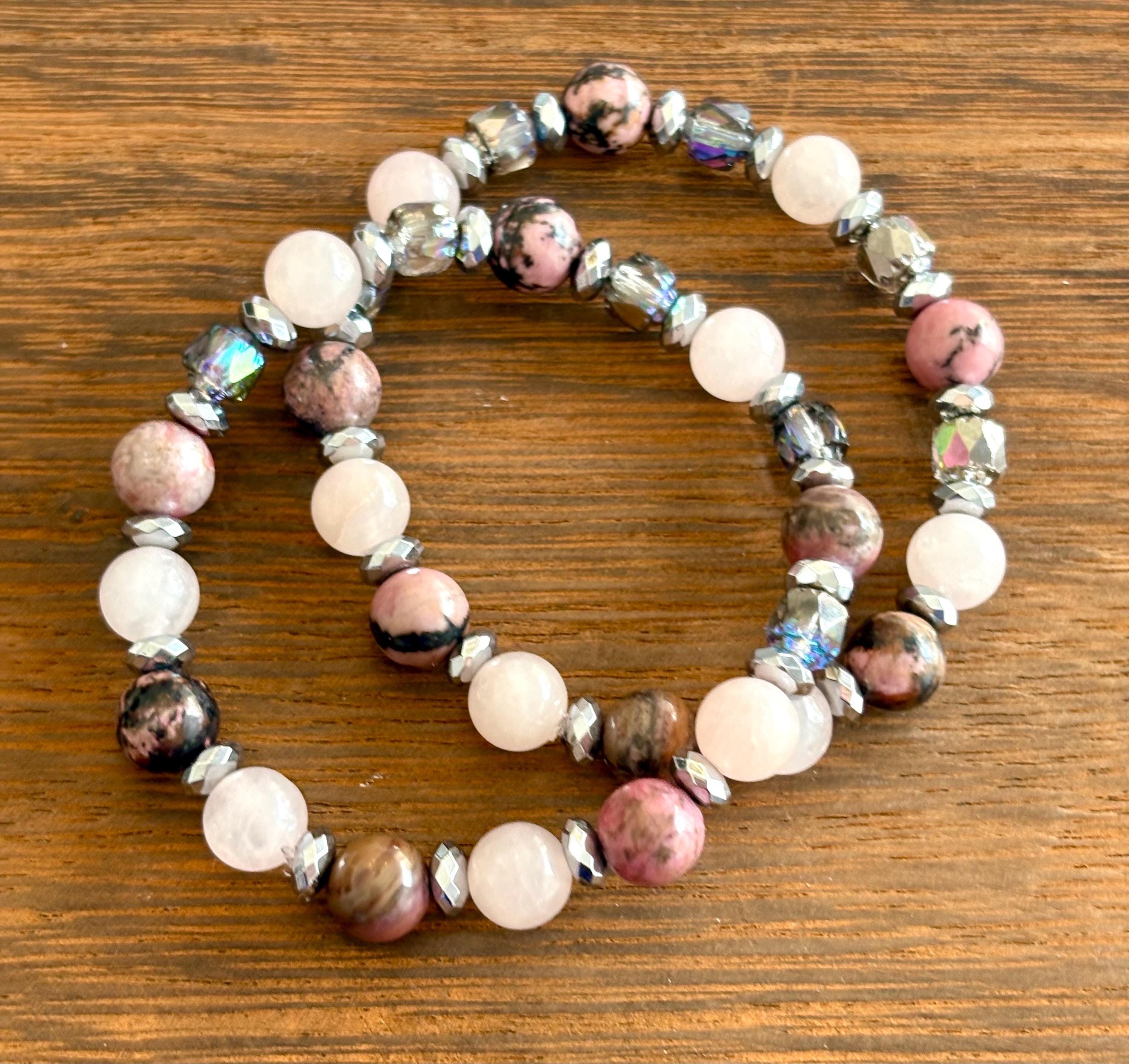 Gemstone Bracelet - Rhodonite / Rose Quartz / Hematite Crystal Healing, Compassionate Lovely Human