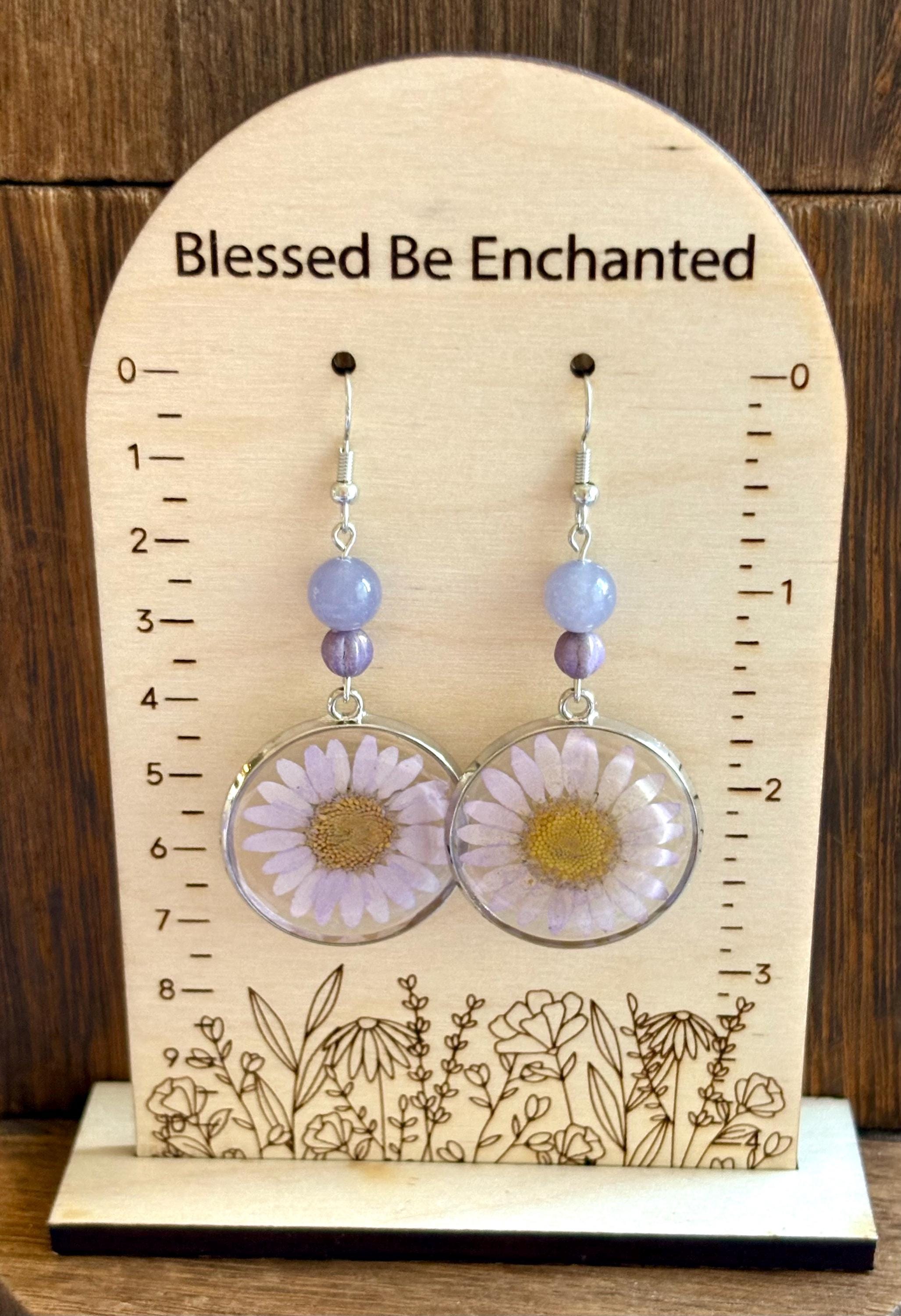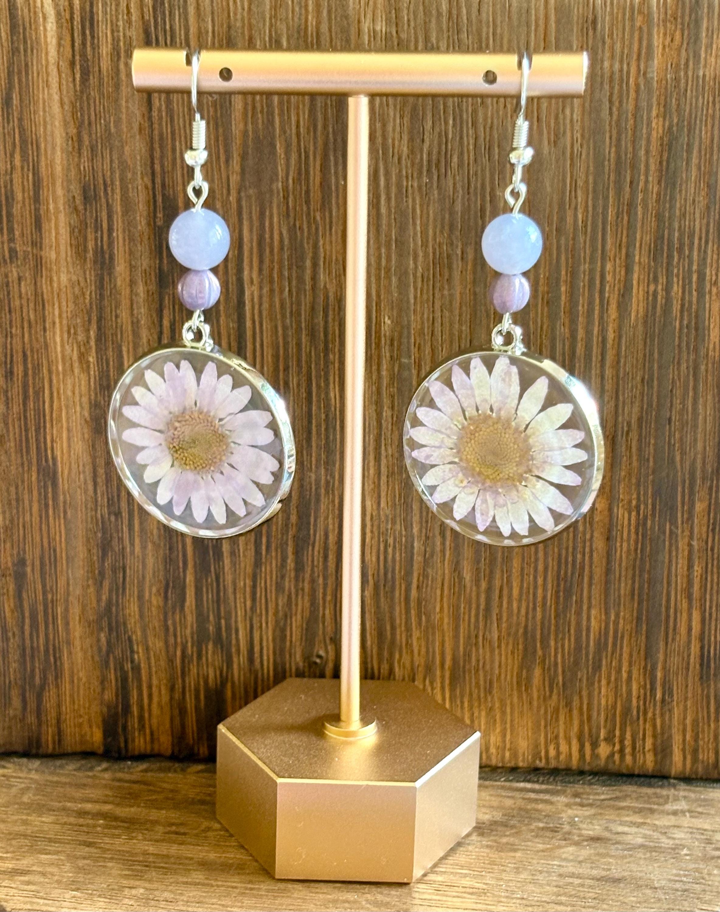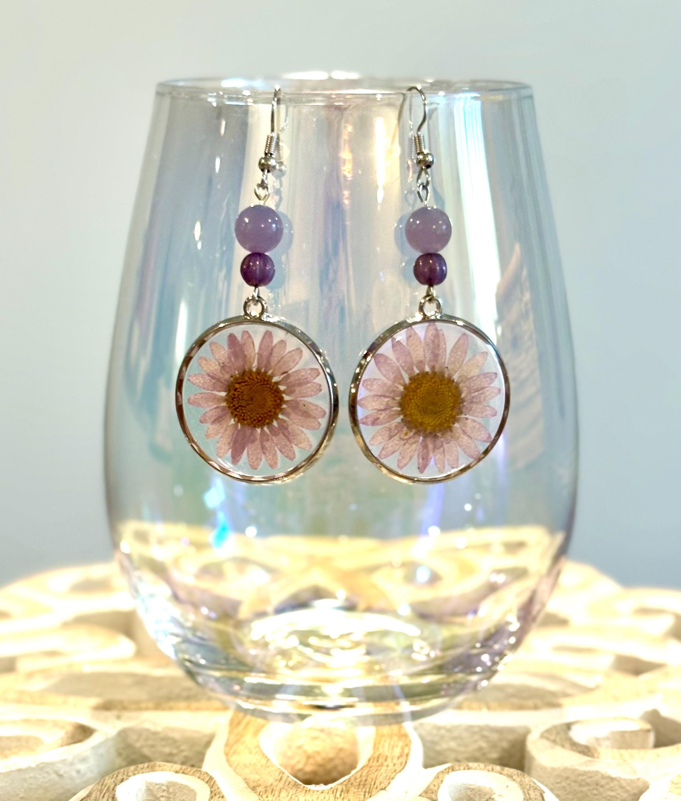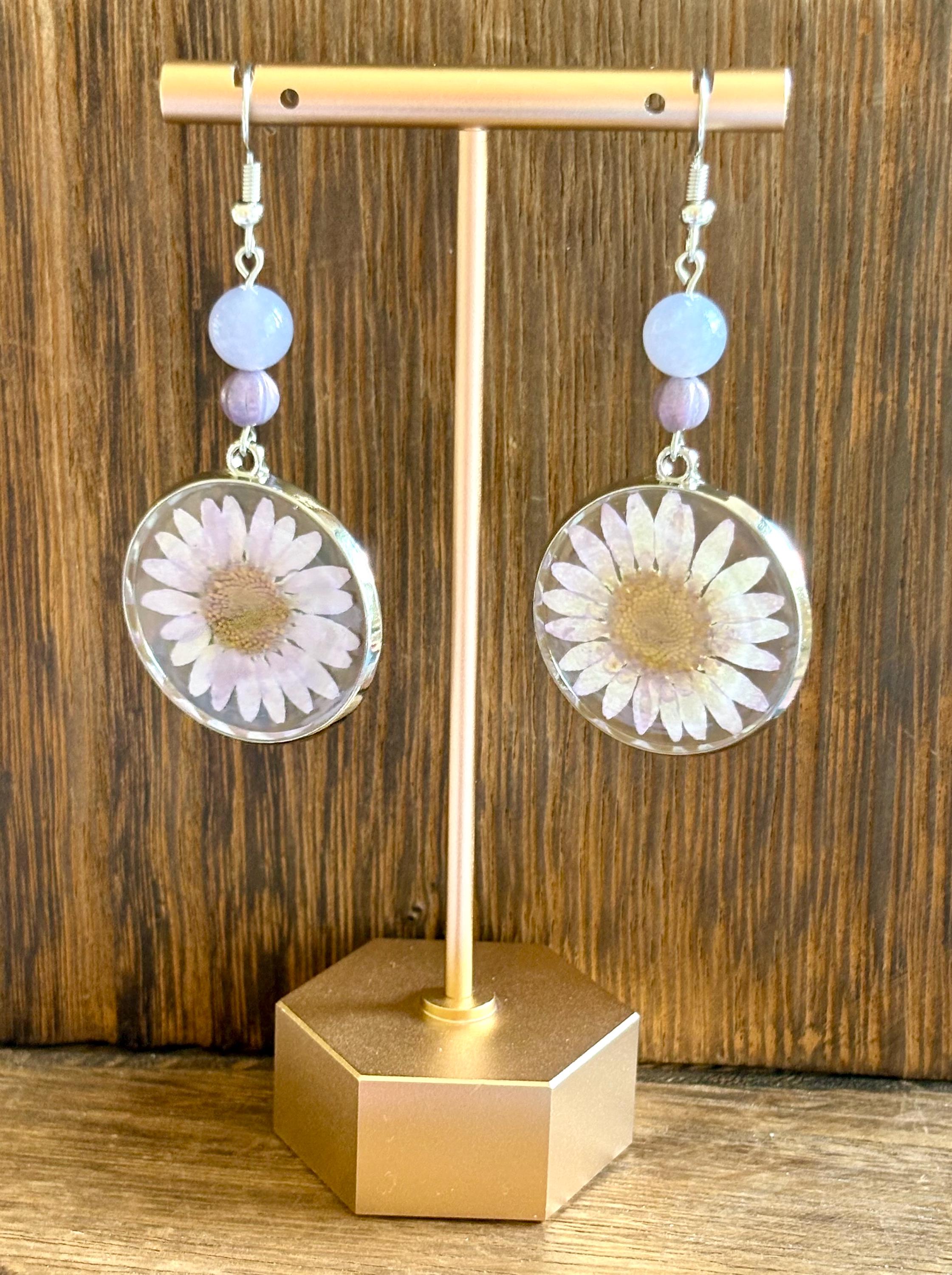 Gemstone Earrings - Tanzanian Lepidolite Crystal Healing, Daisy Aura