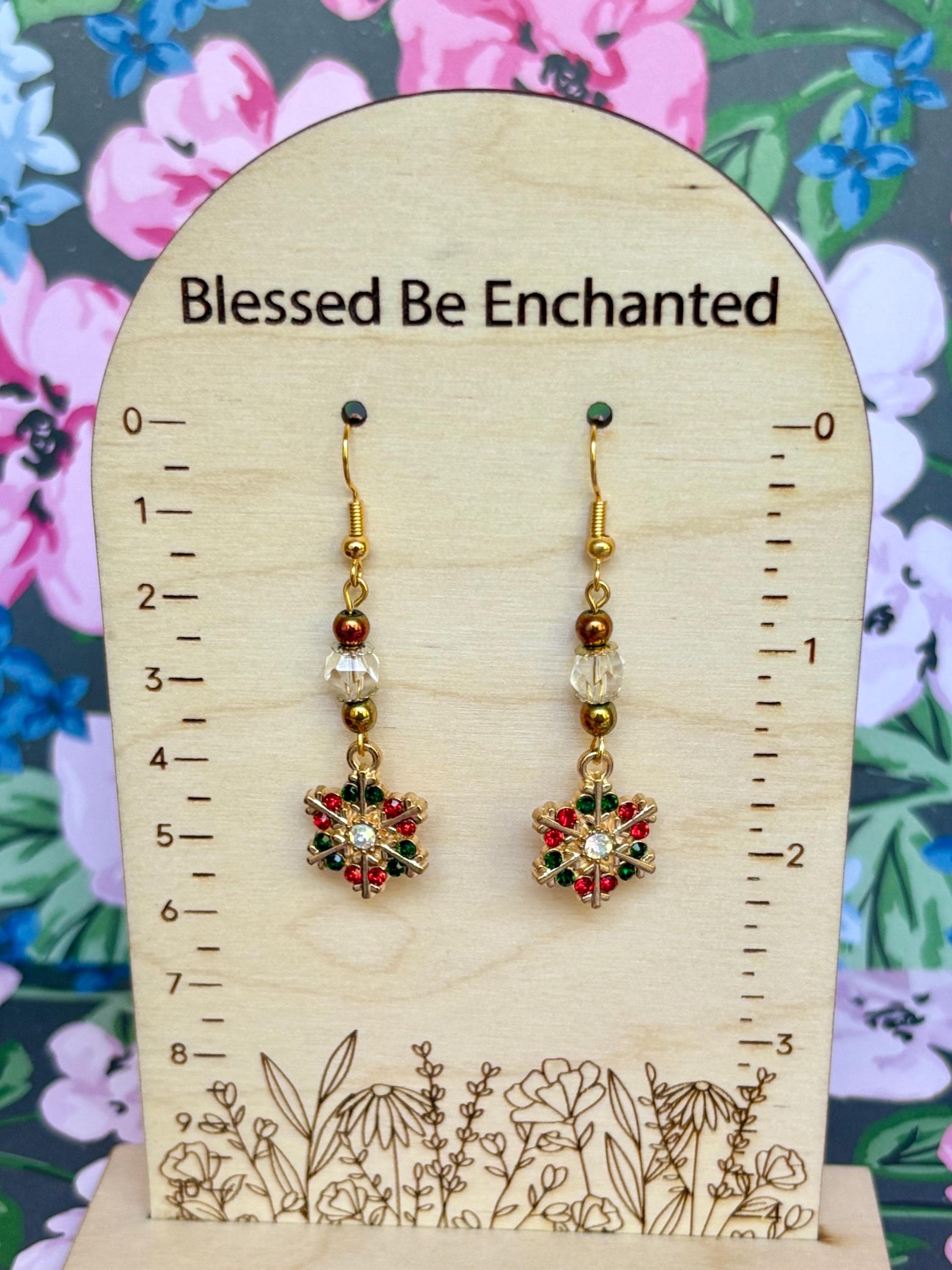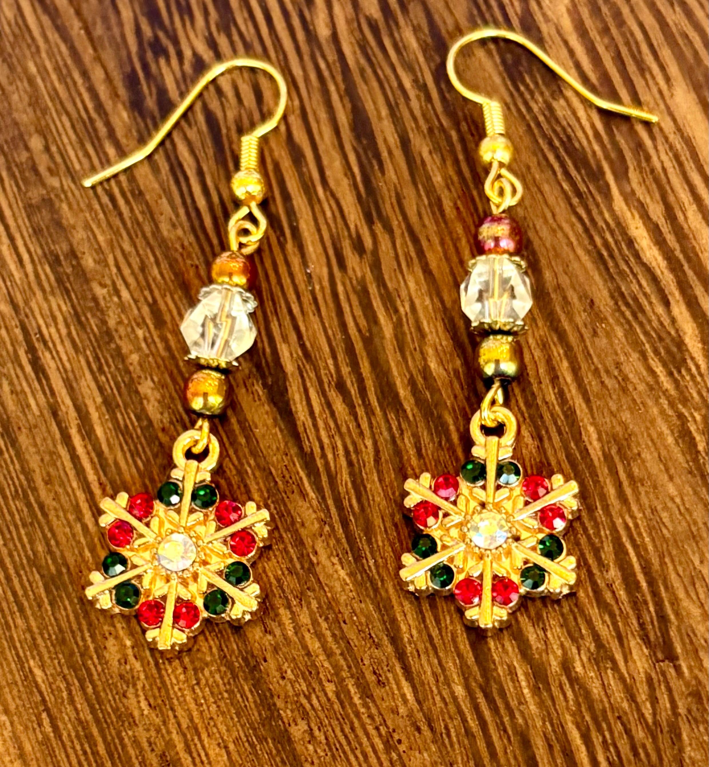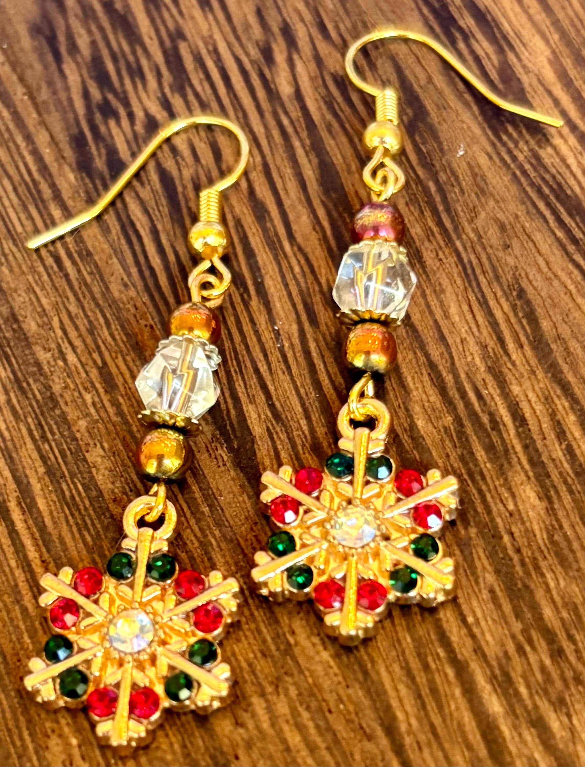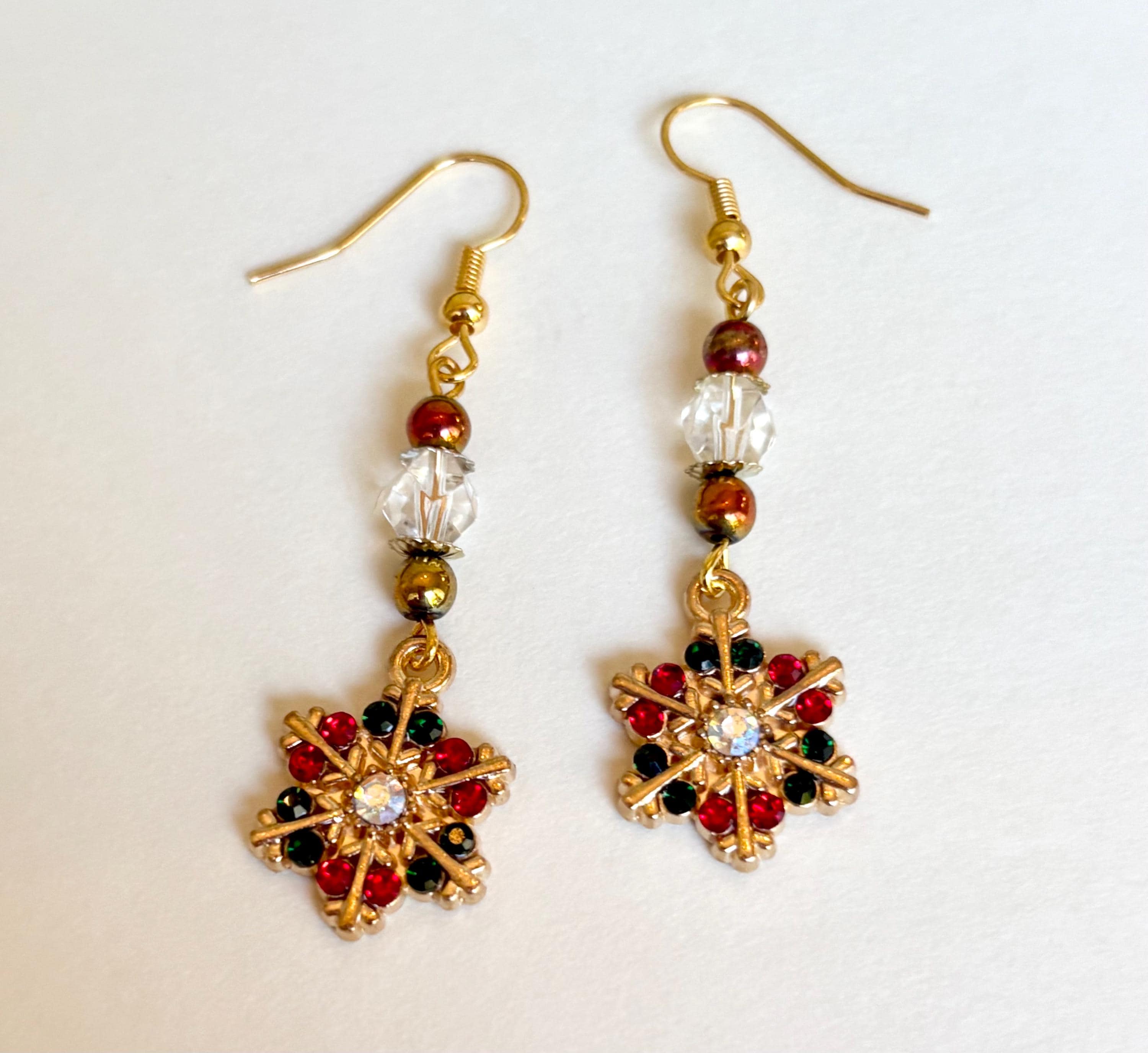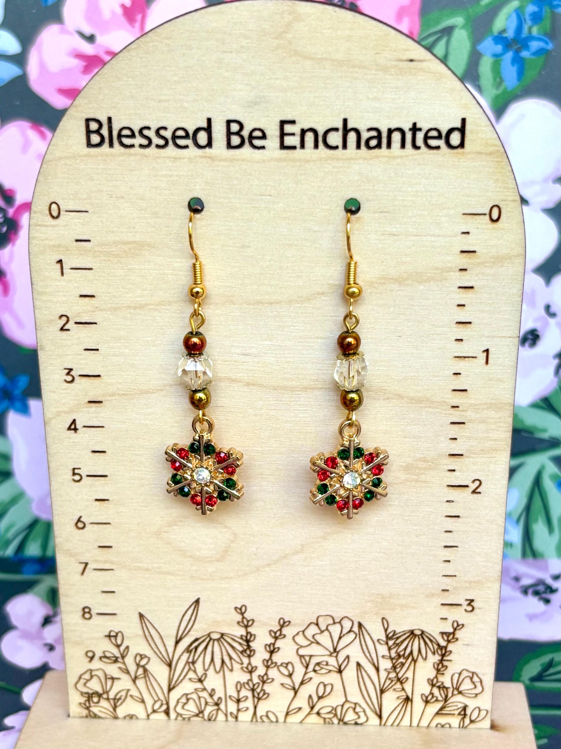 Add a touch of winter magic to your look with these Enchanted Snowflake Shimmer Earrings, handmade with love and radiant festive energy! Each pair features golden enamel snowflake charms adorned with sparkling red and green crystals — a symbol of joy, light, and renewal. The design is elevated with faceted star-cut clear quartz gemstones that capture the brilliance of winter light, and hematite gemstones for grounding and protection.