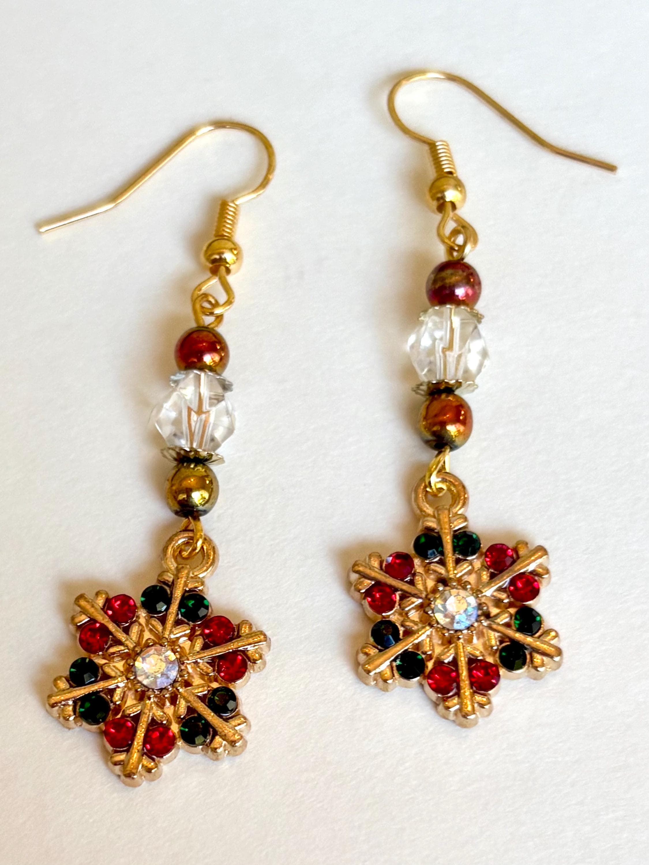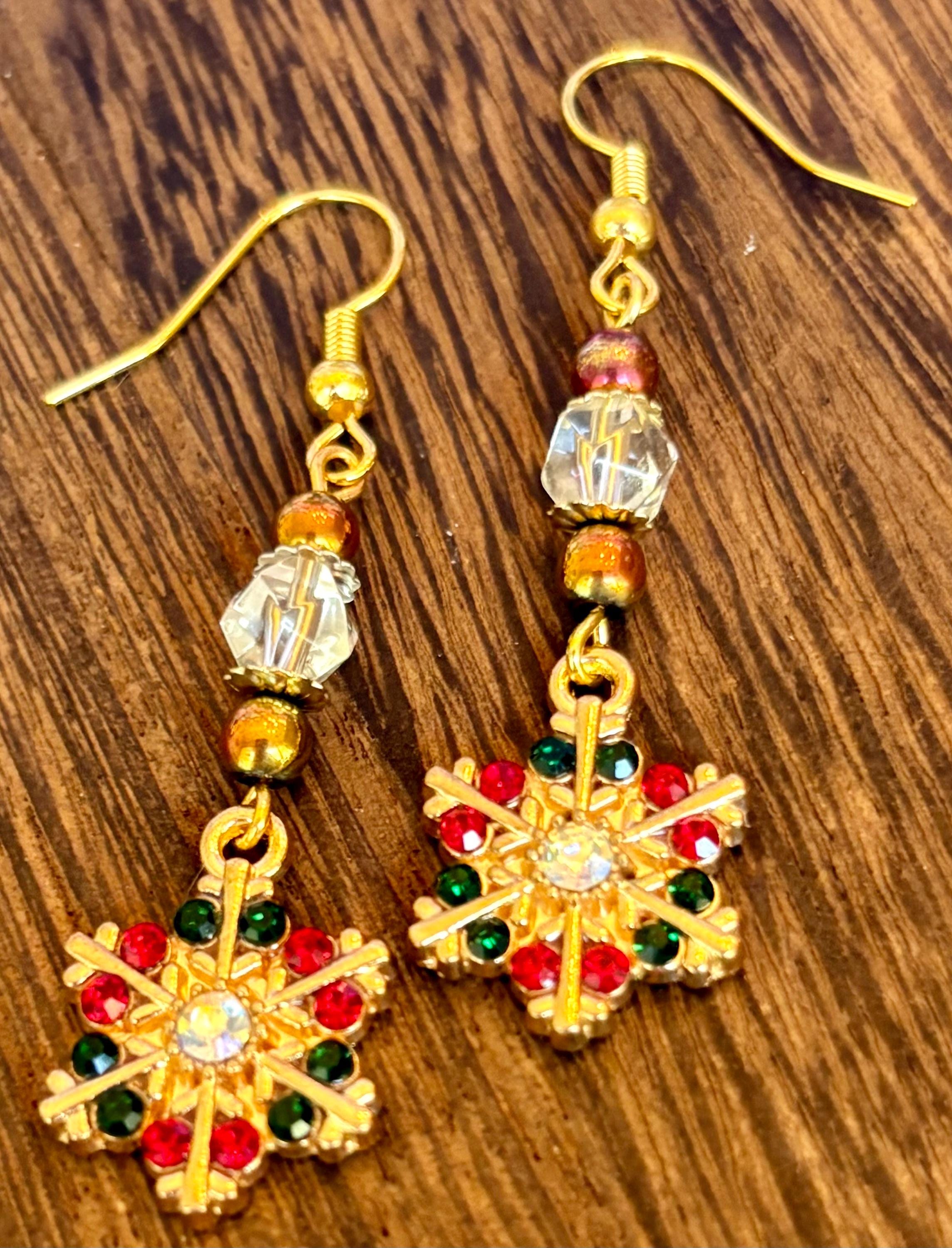 Crafted with gold-tone 316L surgical stainless steel hypoallergenic ear wires, they combine lasting comfort with timeless elegance. Perfect for holiday gatherings, cozy nights, or gifting a bit of seasonal sparkle to someone special.