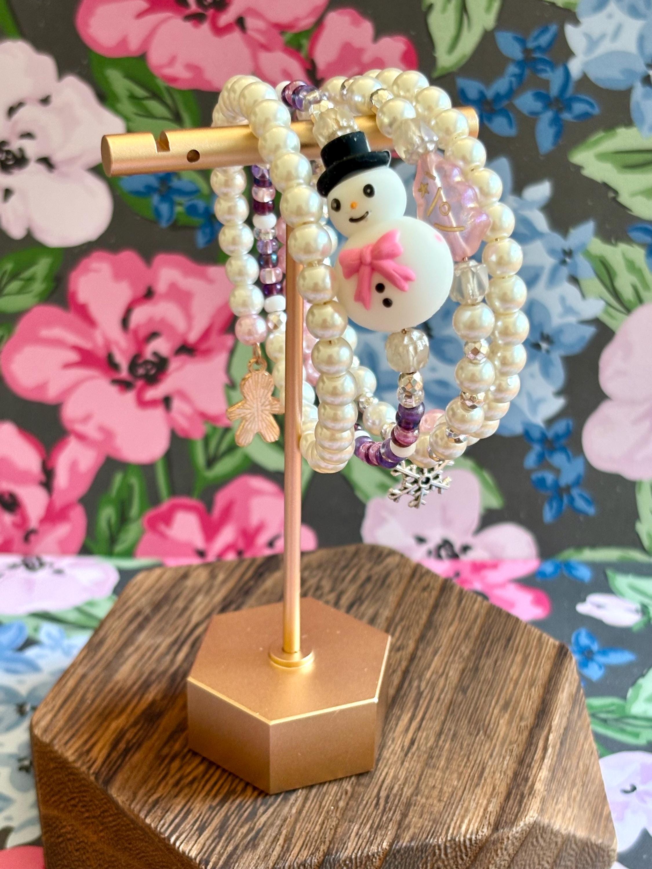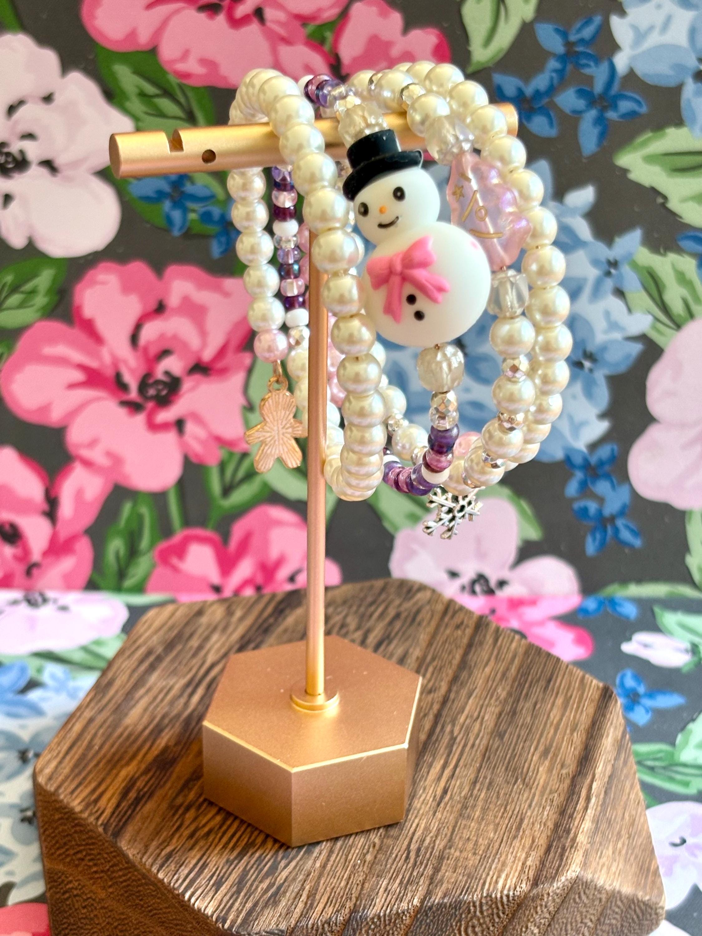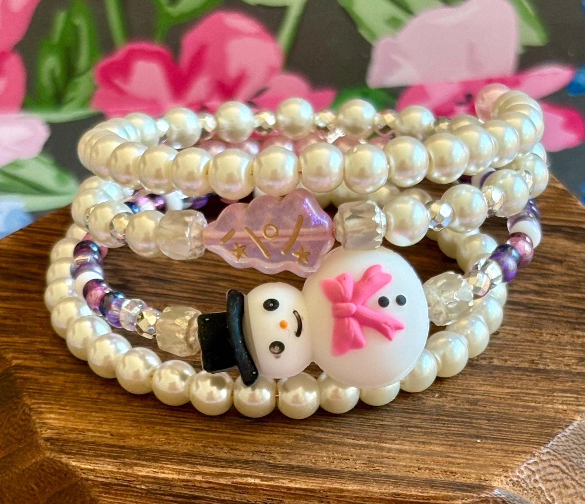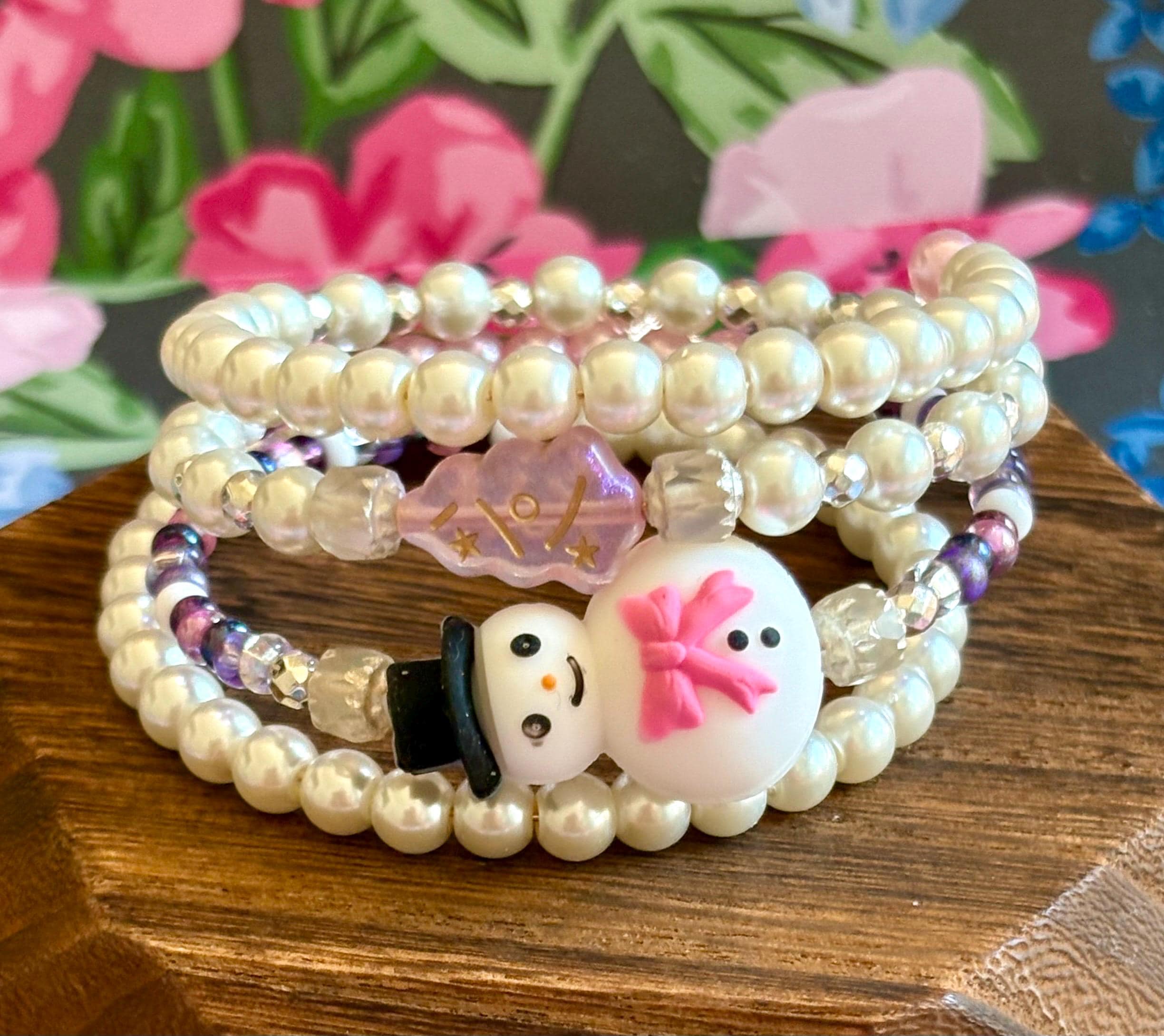 Enchanted Frosted Friends Holiday Wrap Bracelet – Snowman Beads, Metallic Pearls & Hematite Gemstones | Holiday Kissed Wrap Collection | Reiki-Infused Gift
