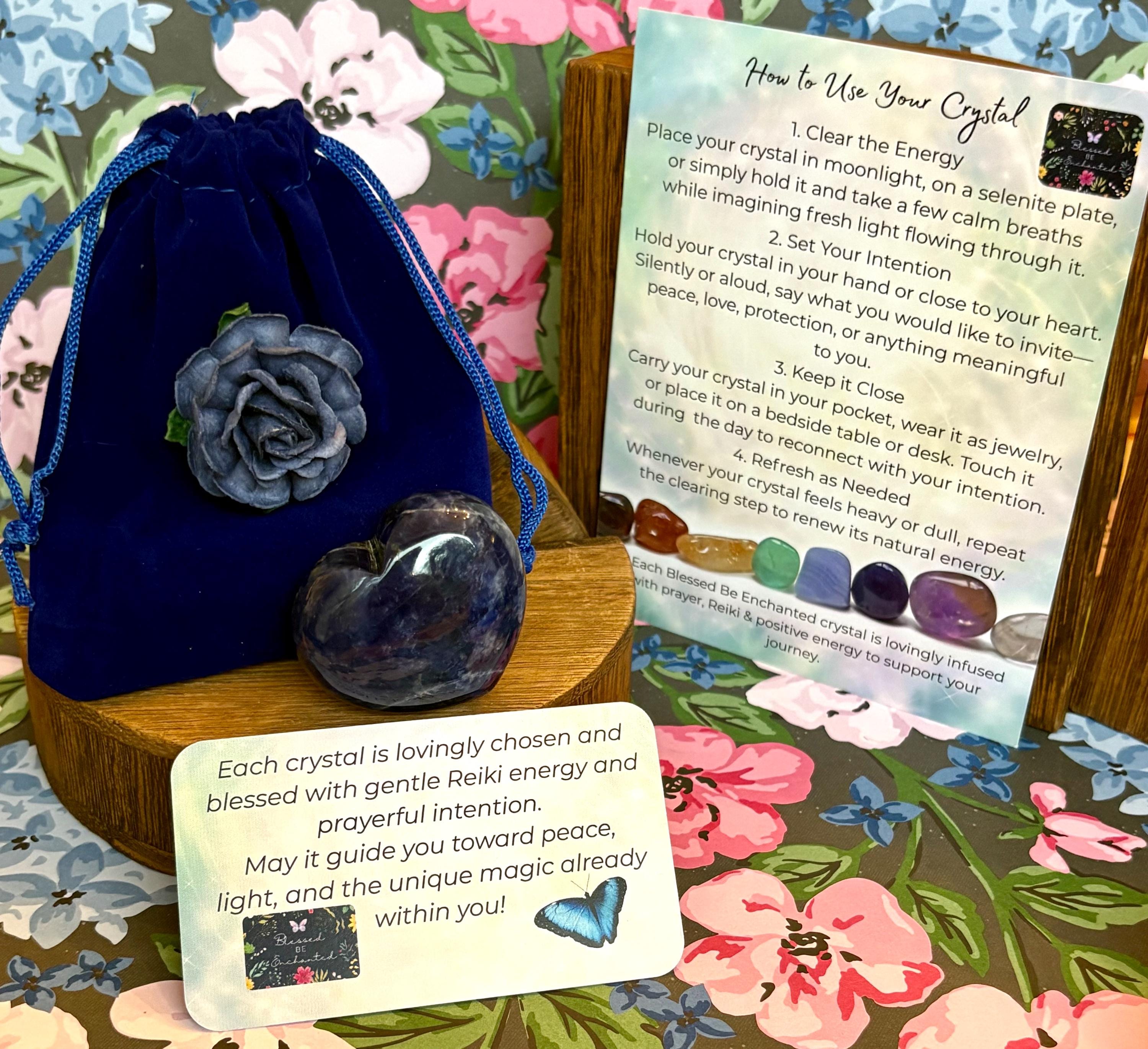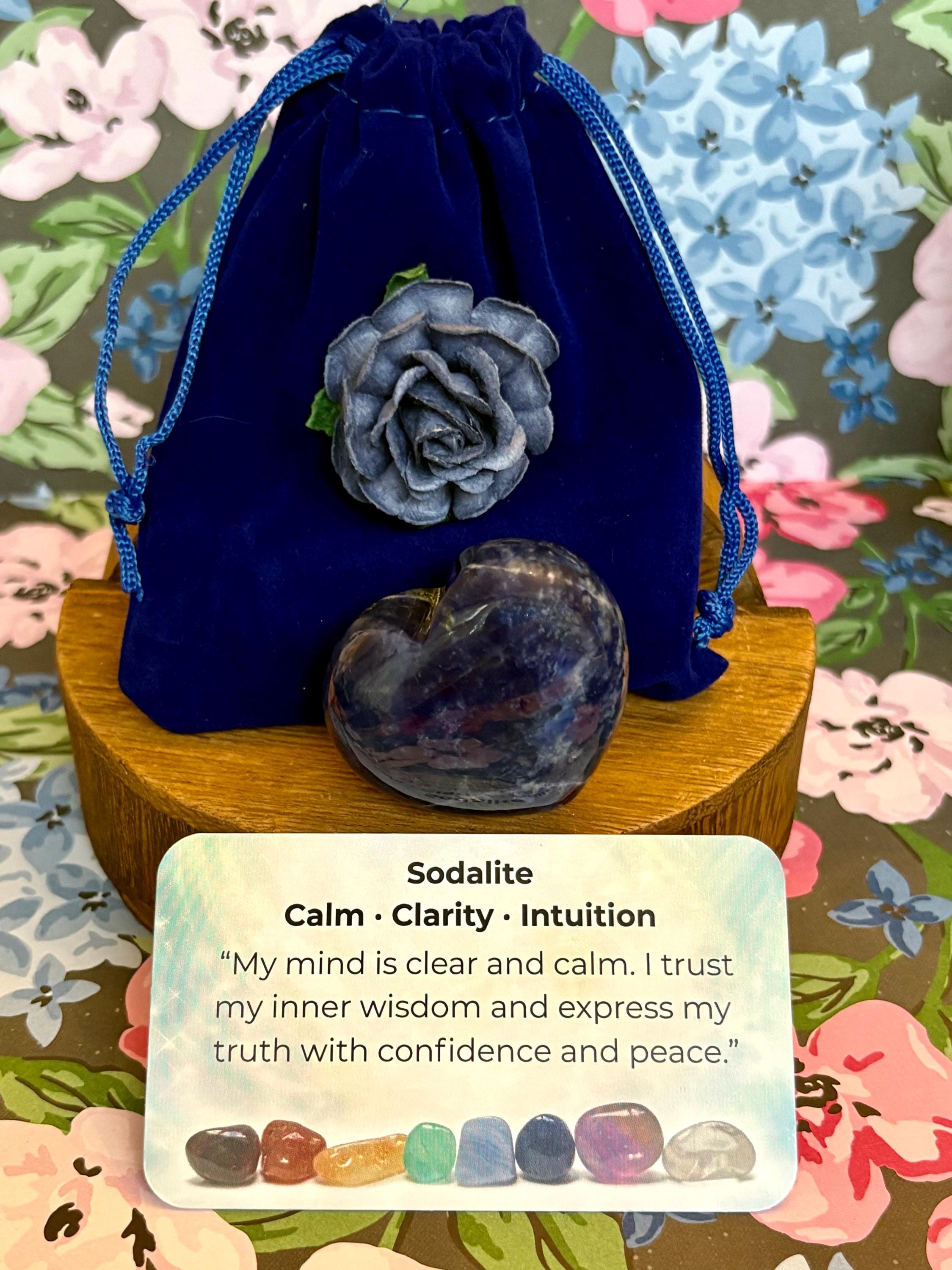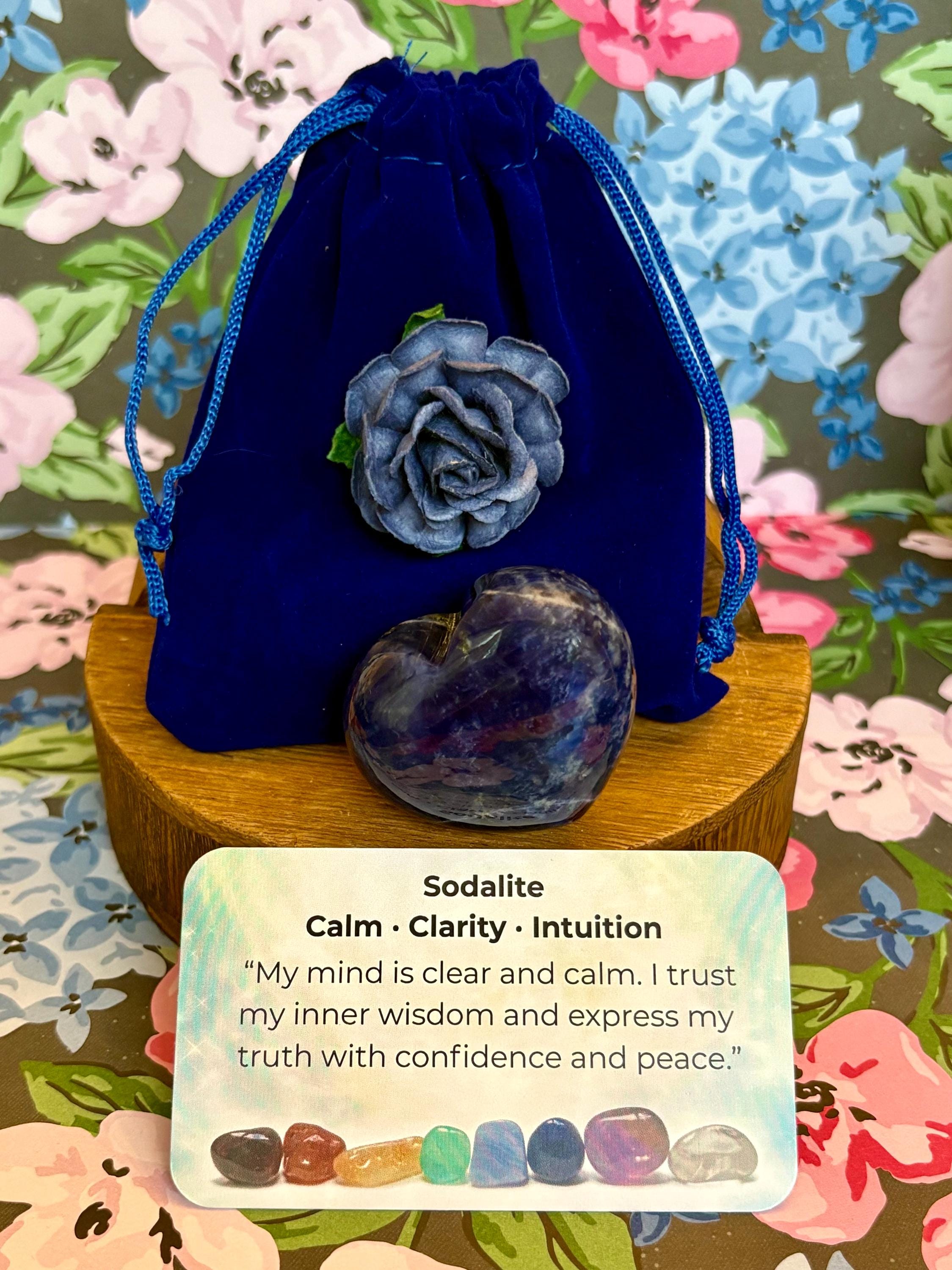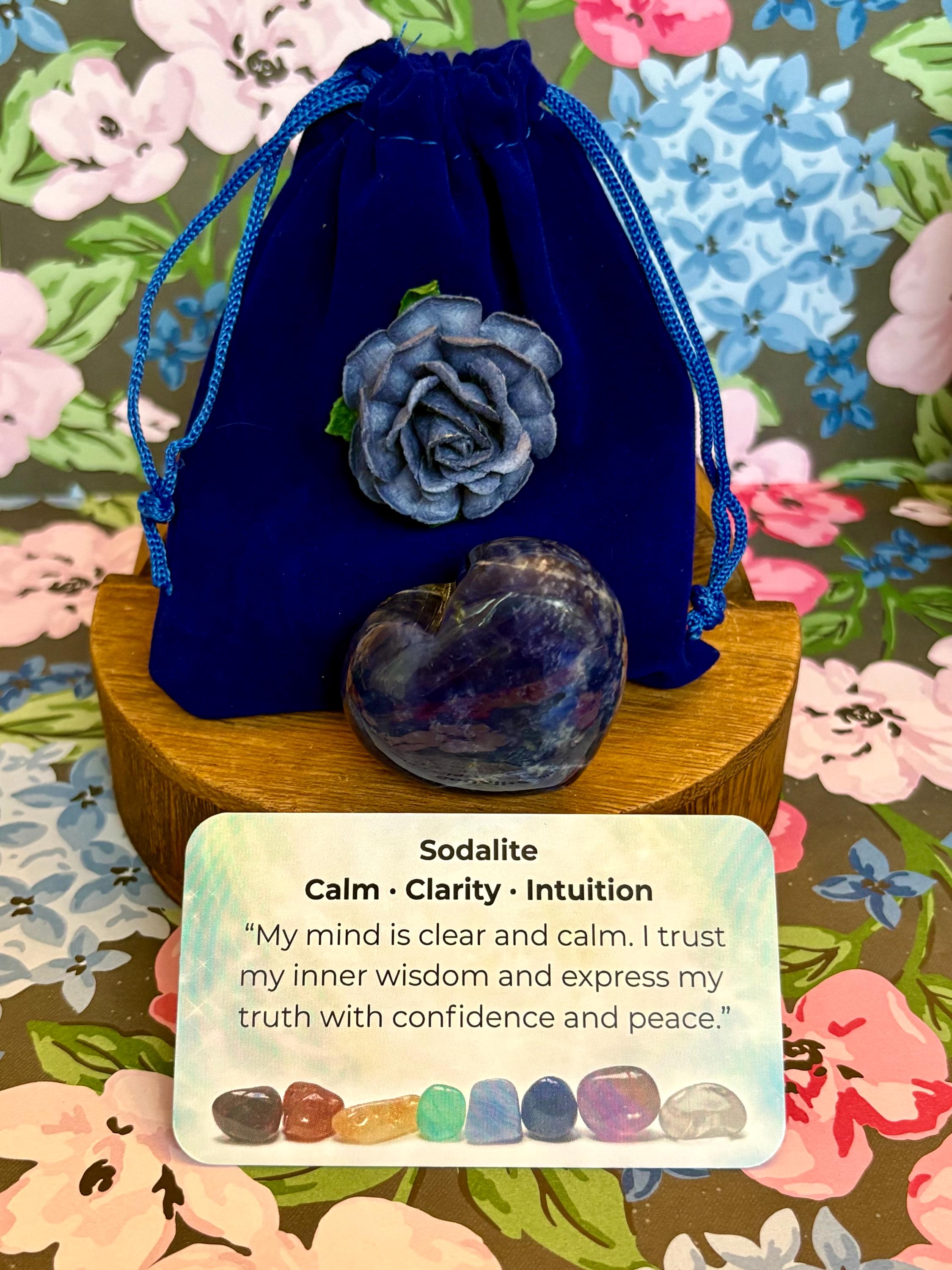 • 💙 One polished Sodalite heart crystal (each unique by nature).