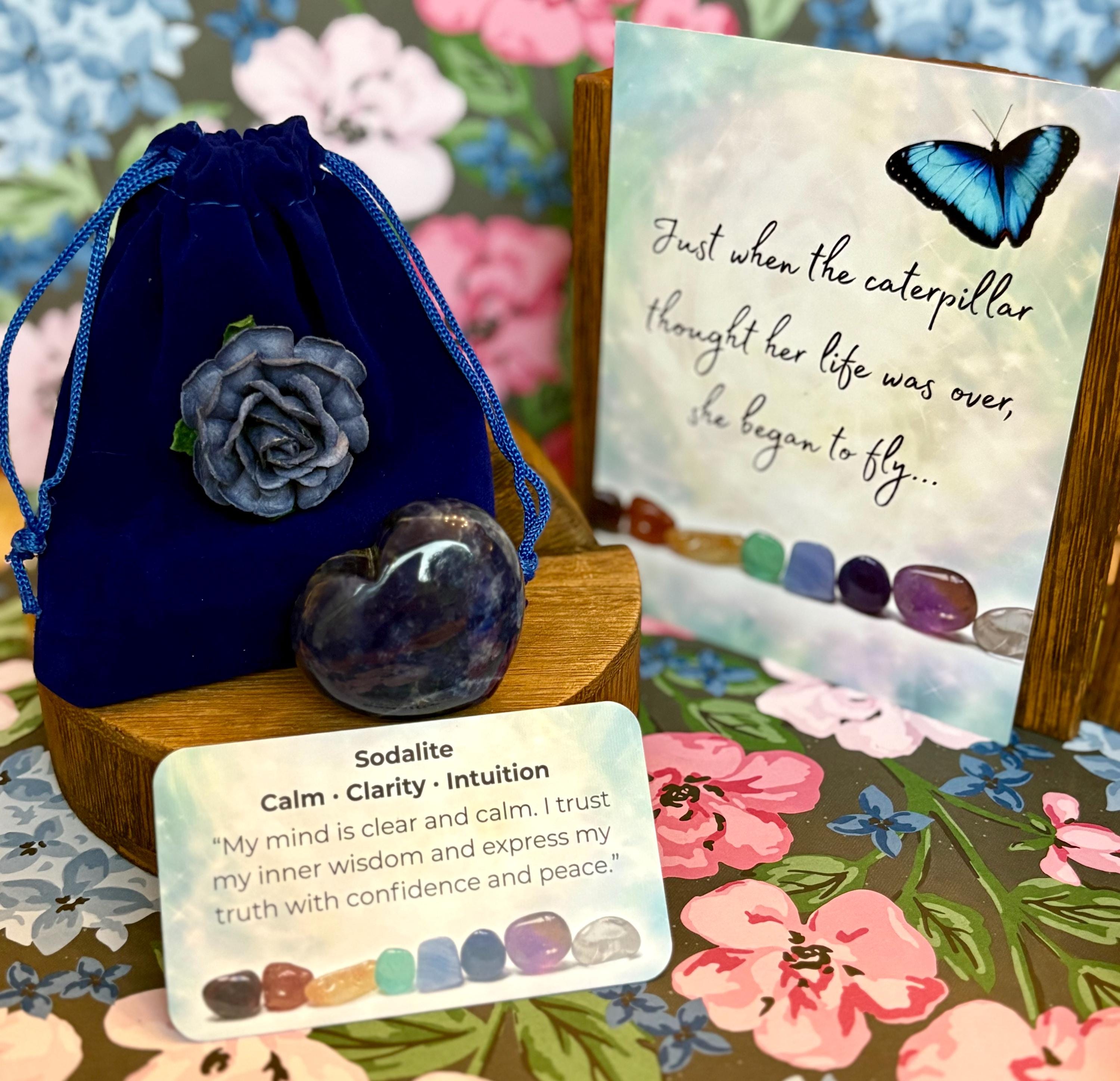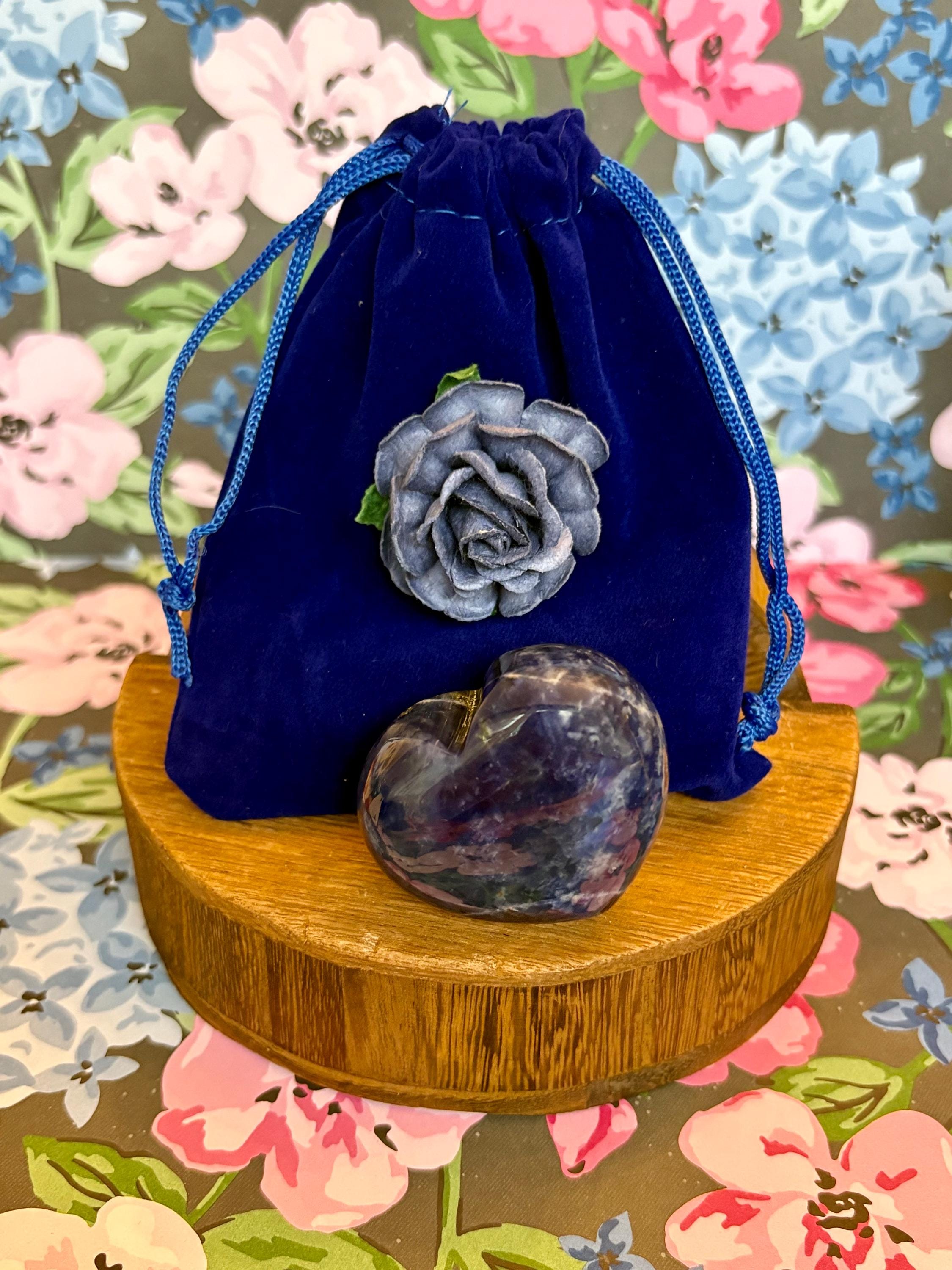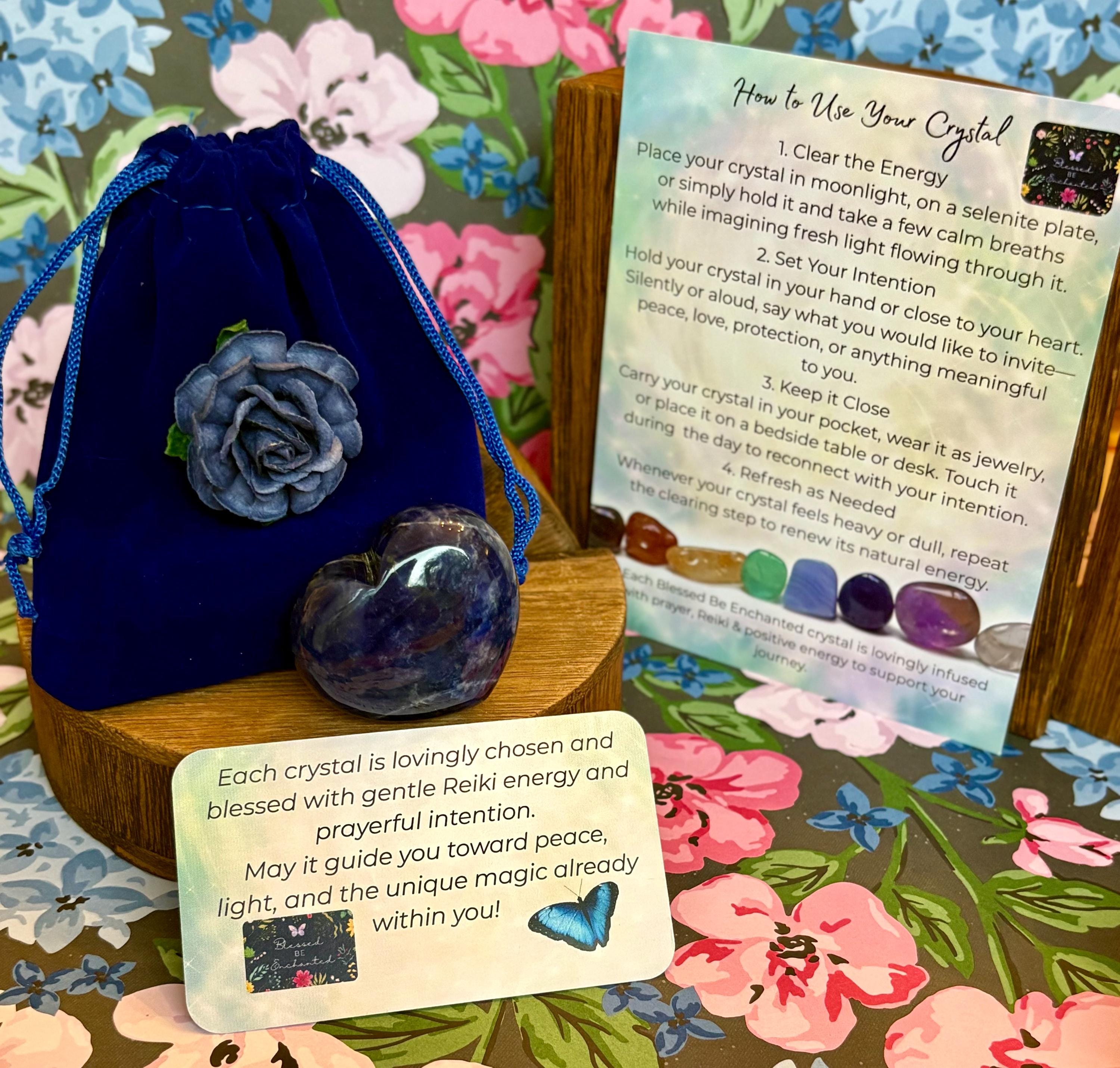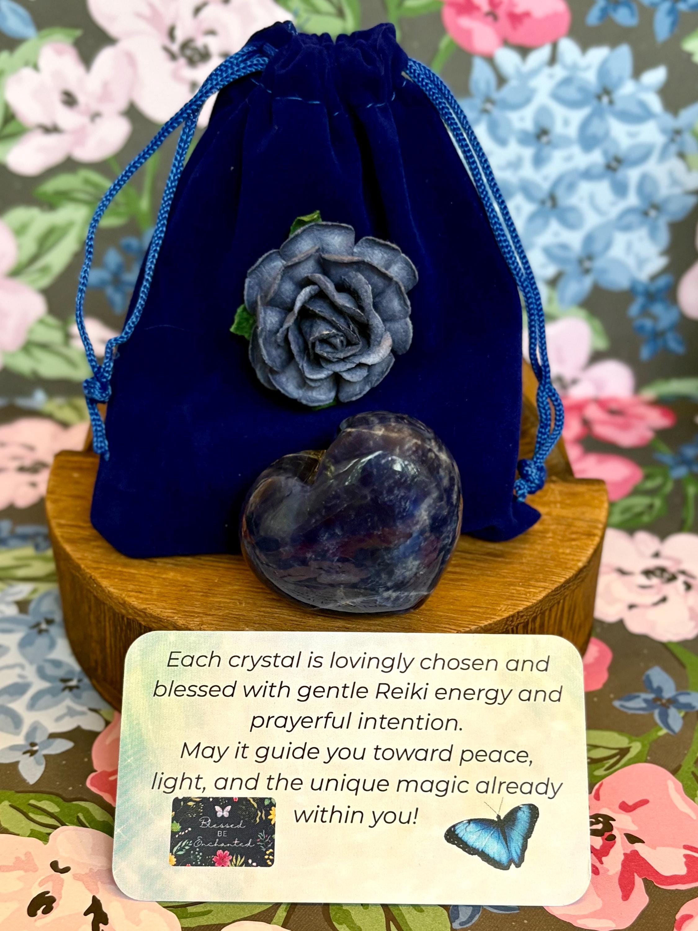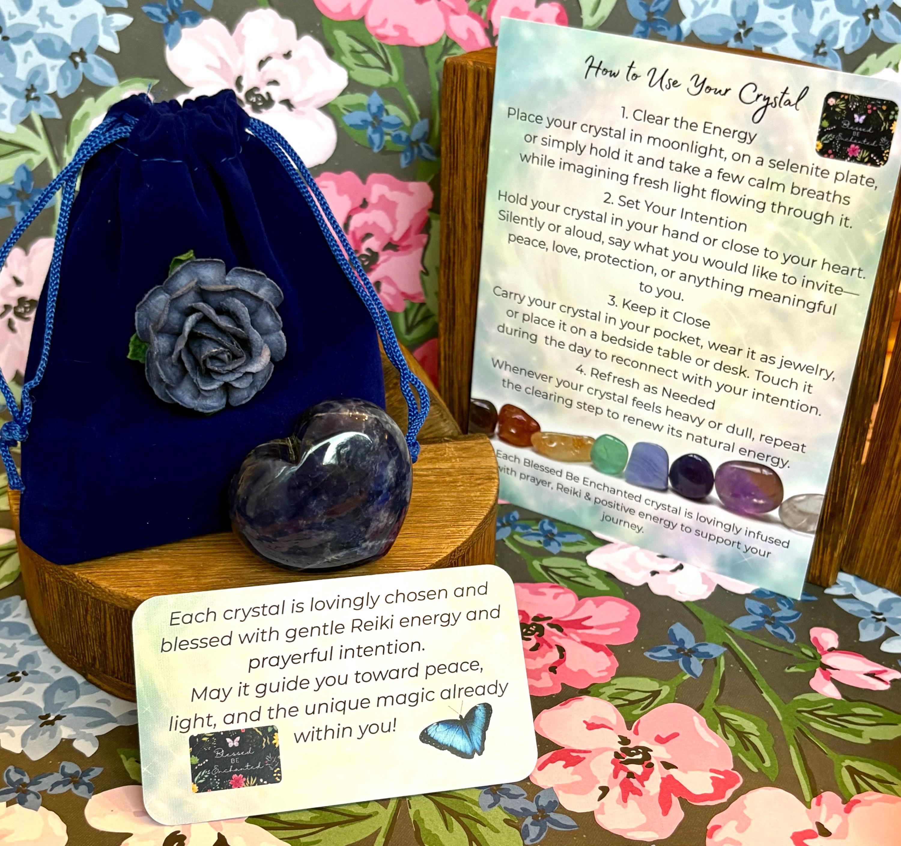 • 💙 One polished Sodalite heart crystal (each unique by nature).