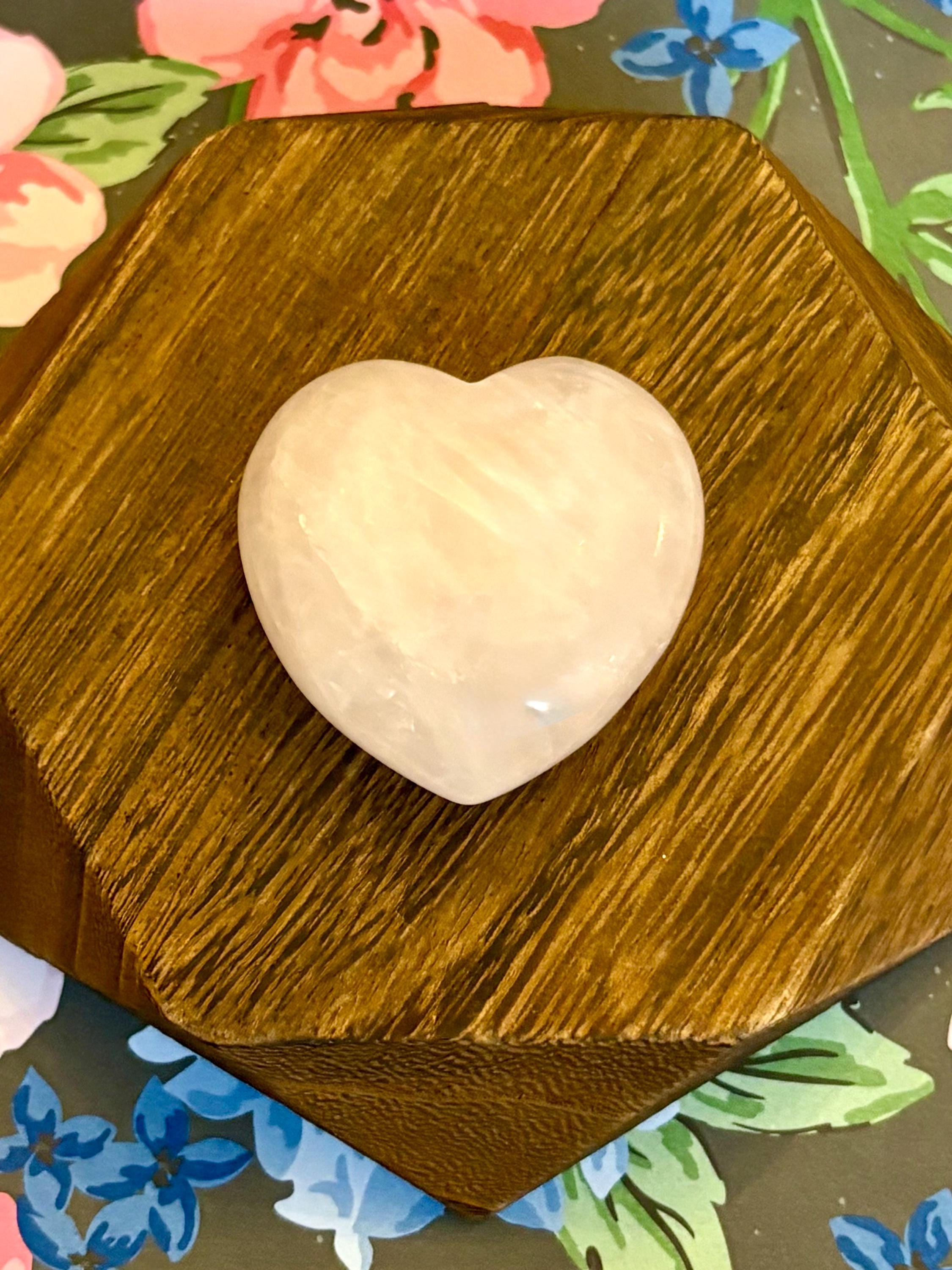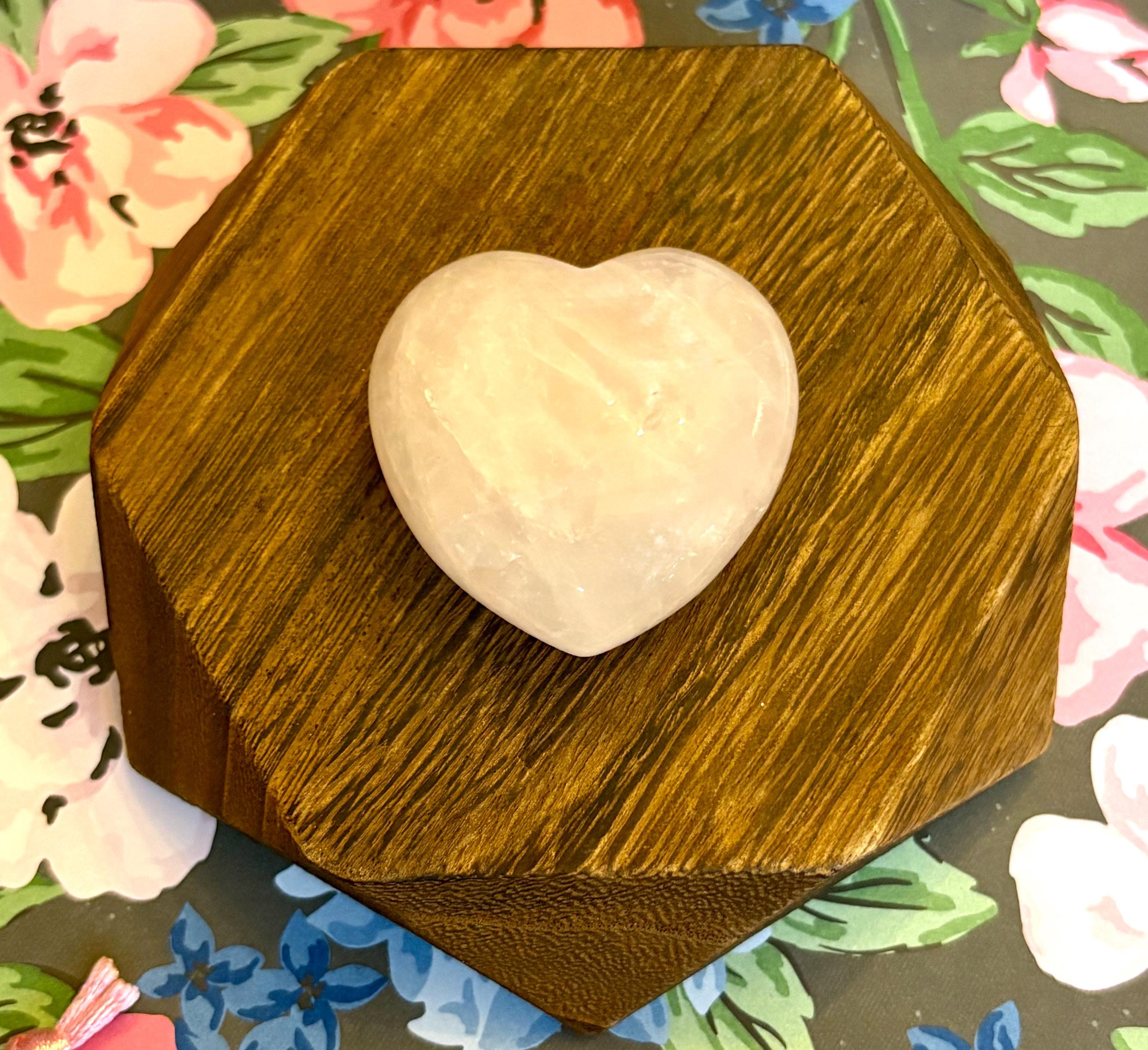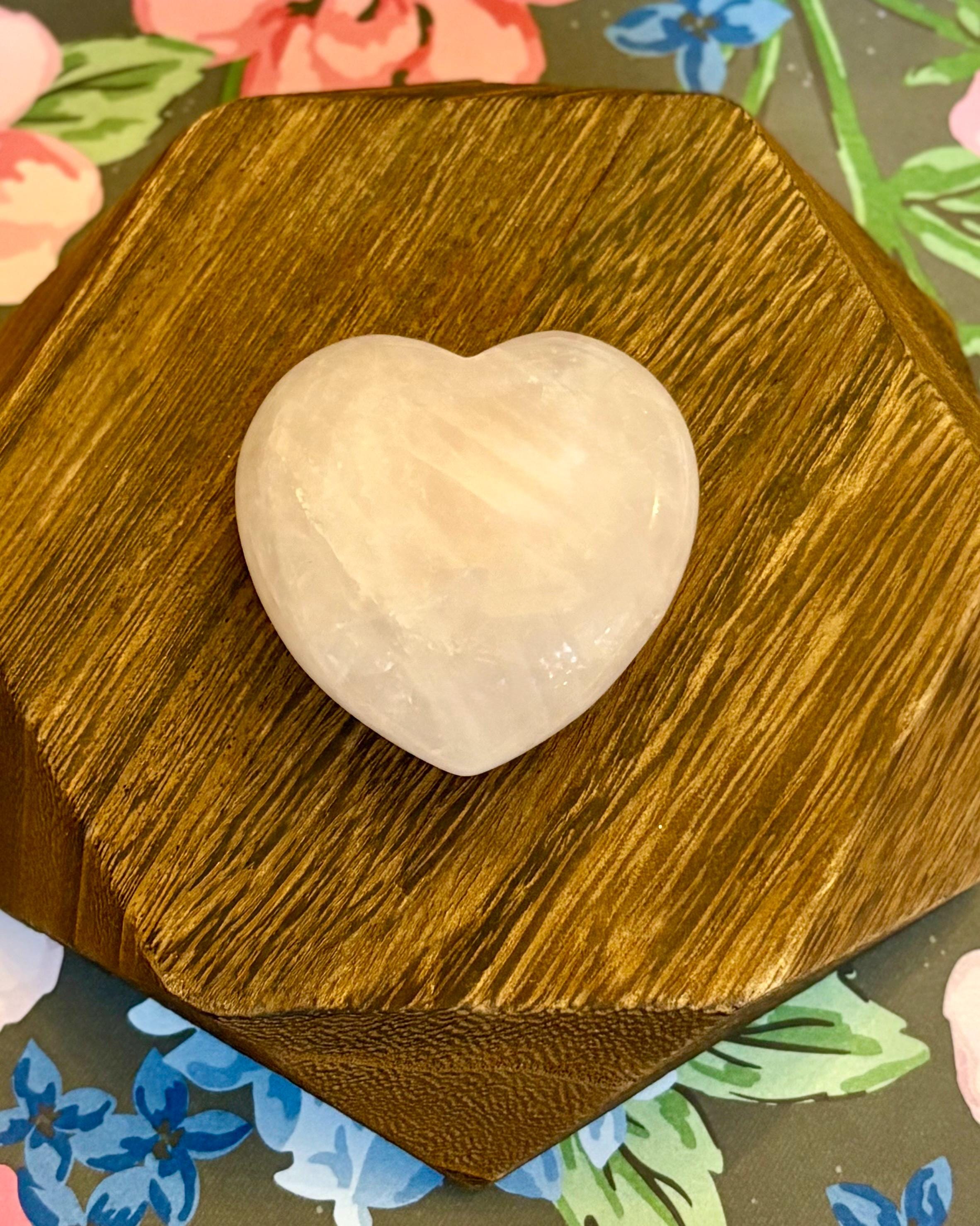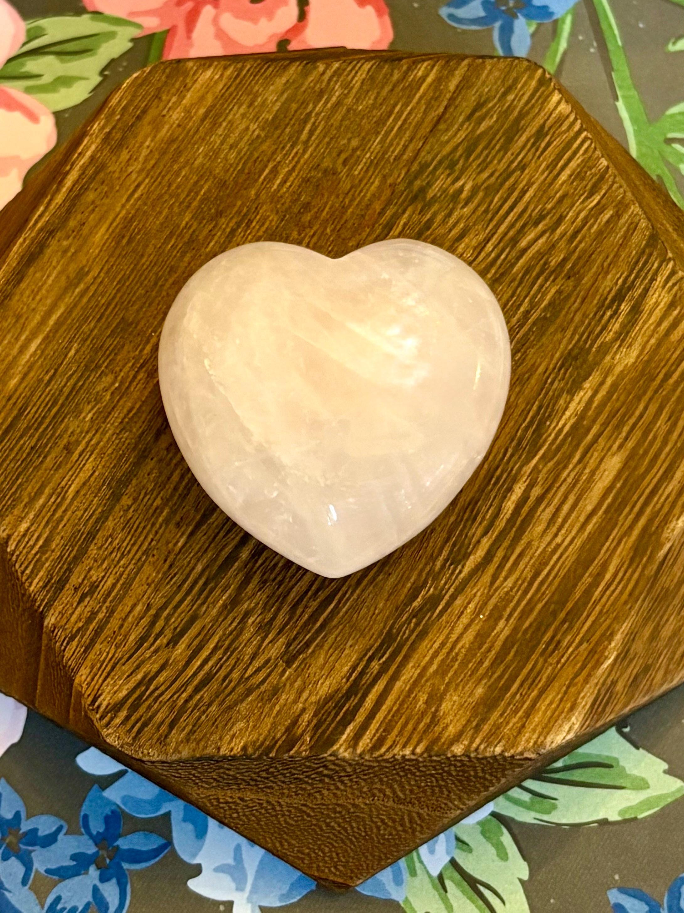 ✨ 1 polished heart-shaped Rose Quartz crystal.