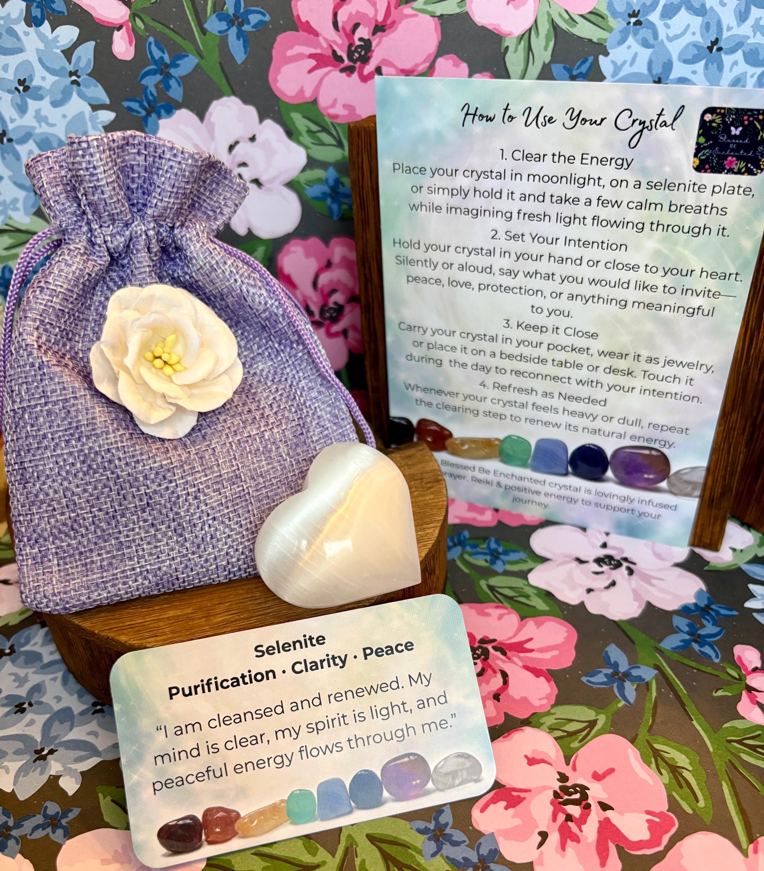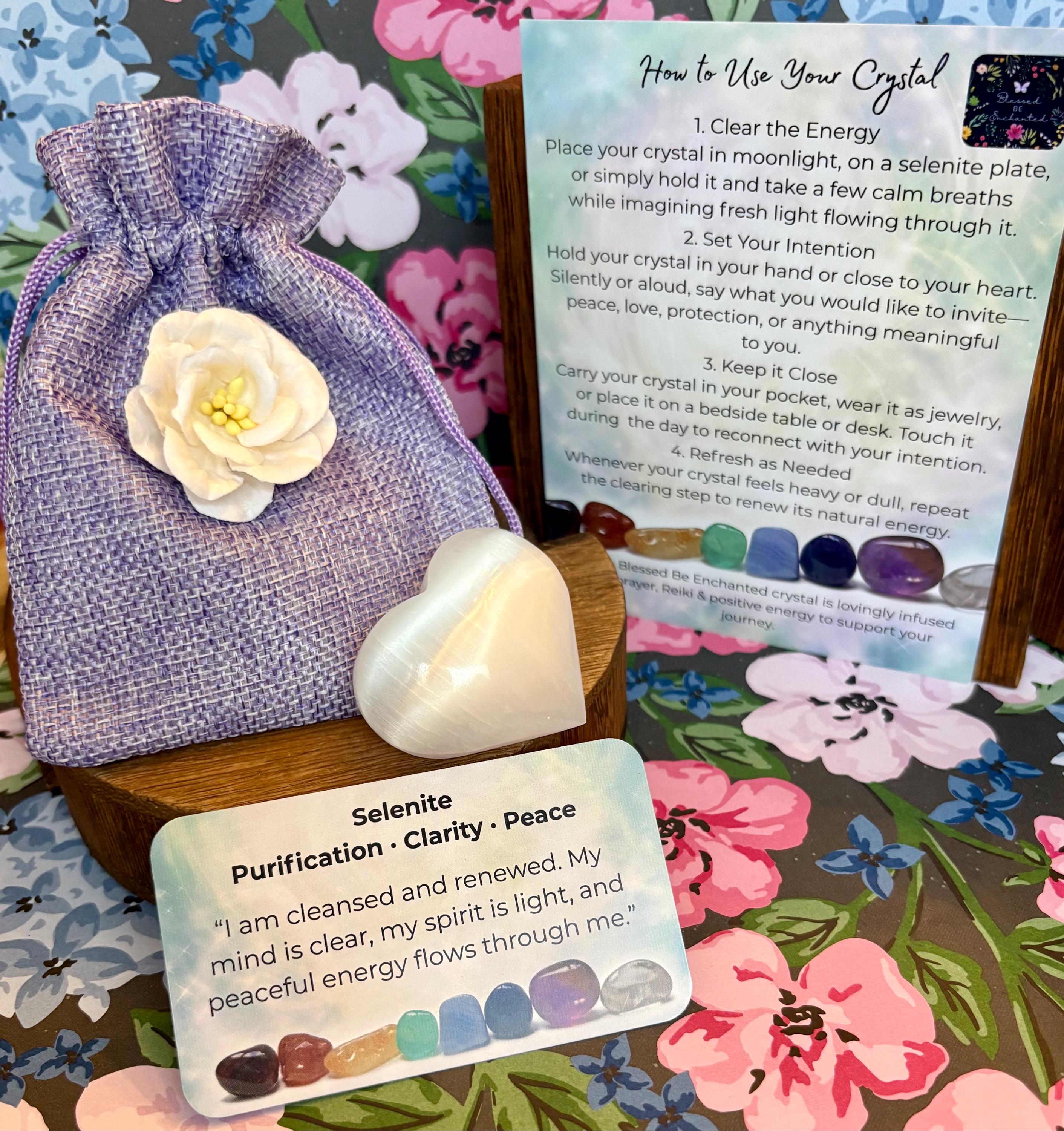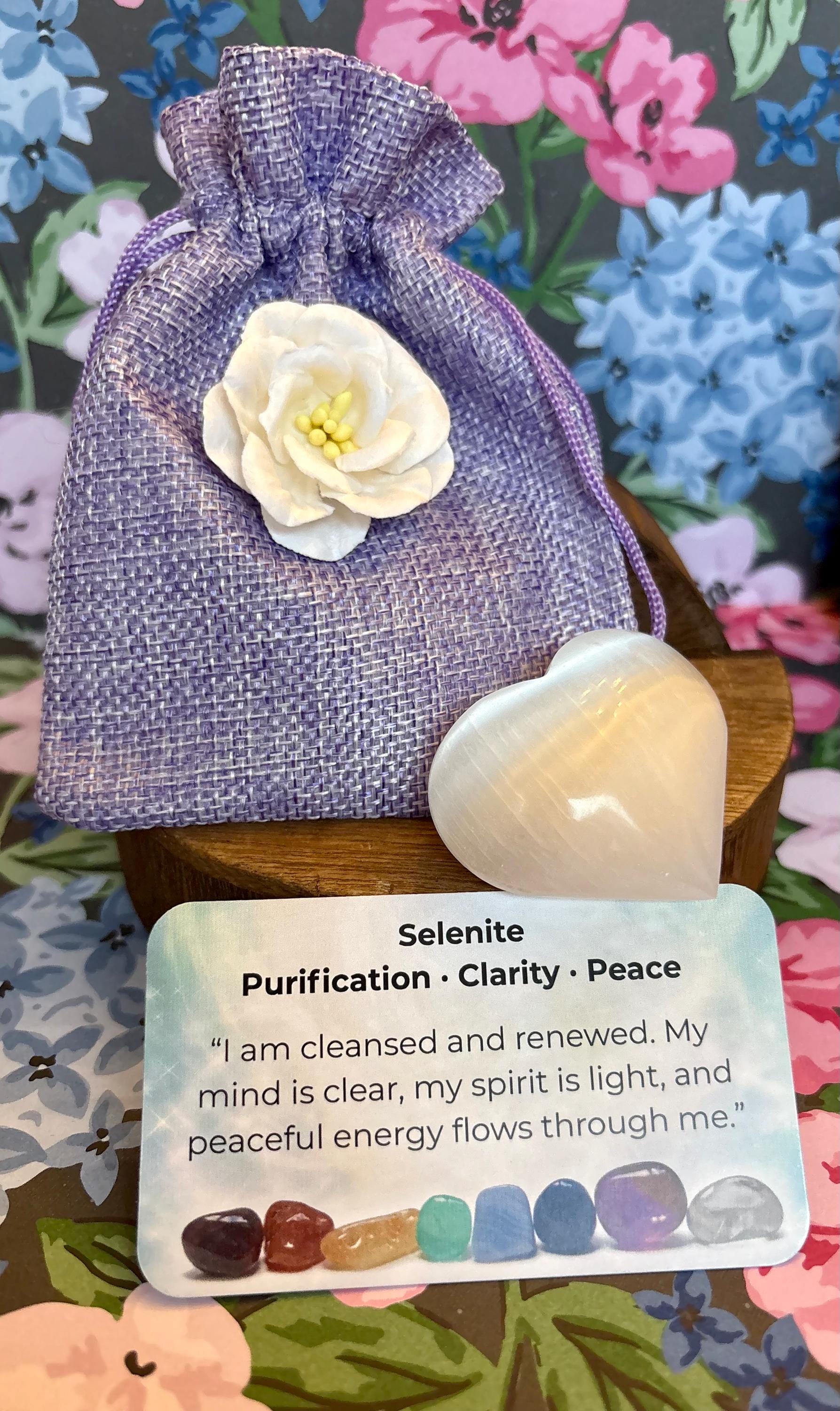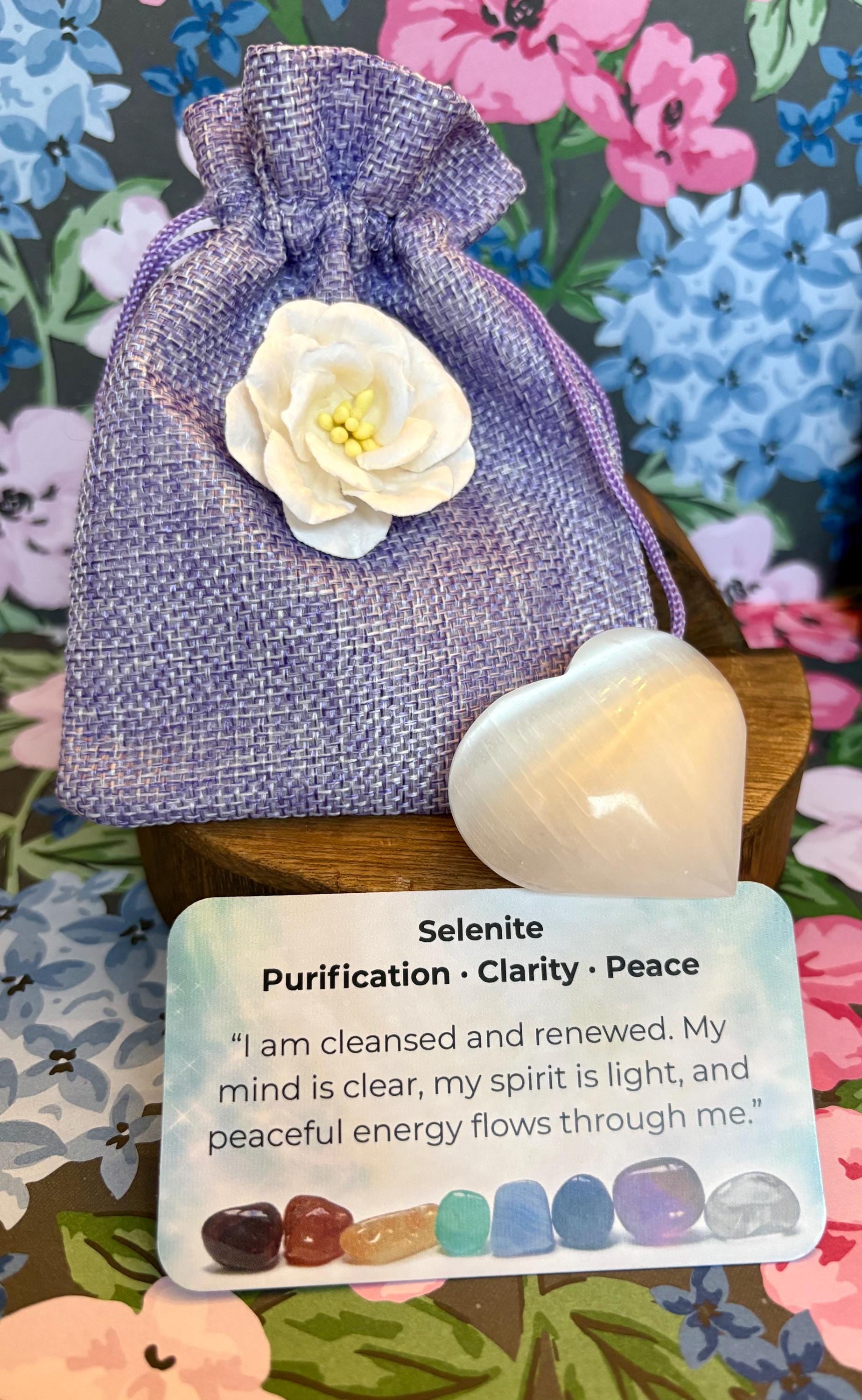 Selenite Heart Angel Crystal Bag • Purification • Clarity • Peace • Reiki-Infused Healing Crystal Gift