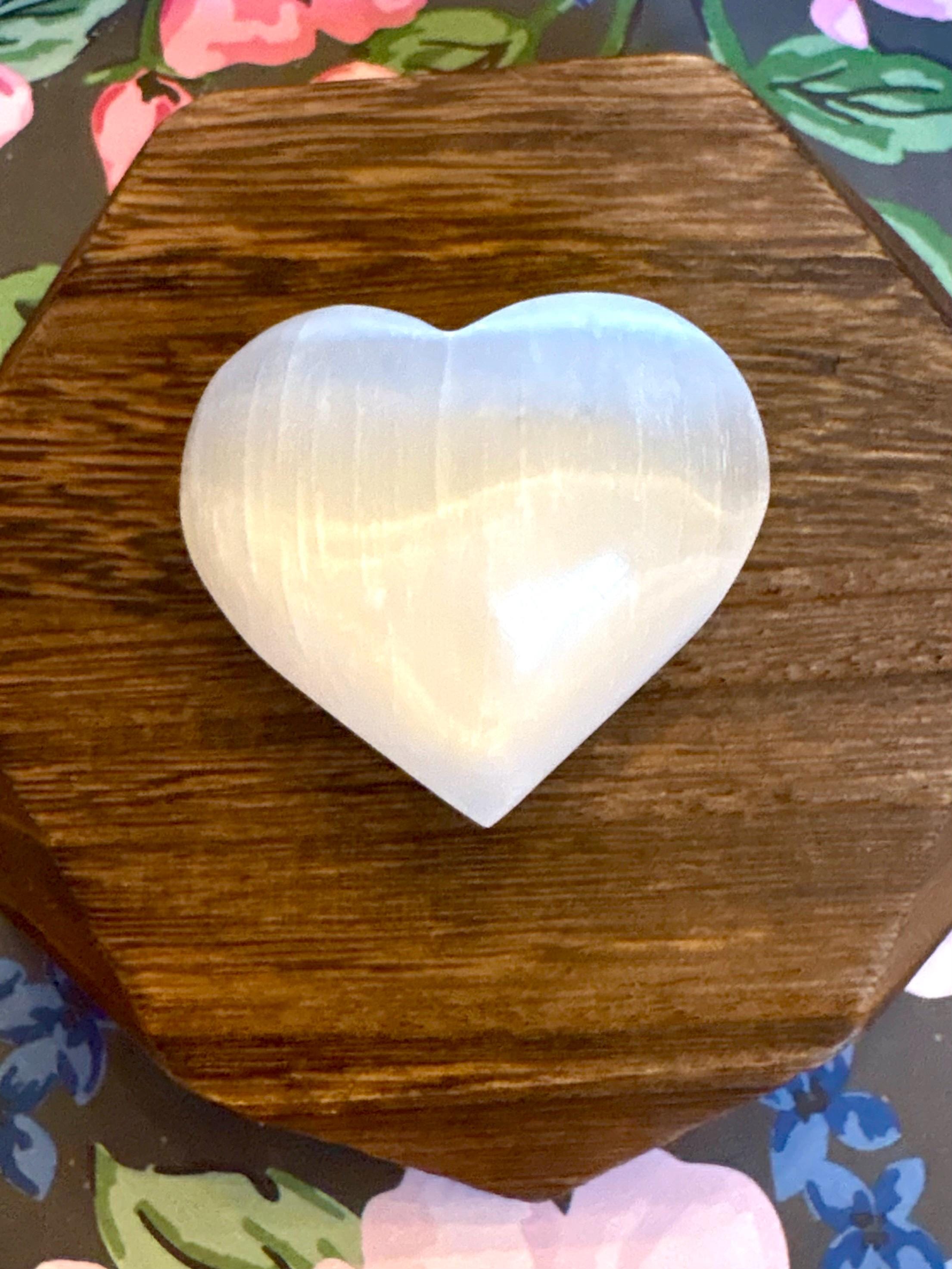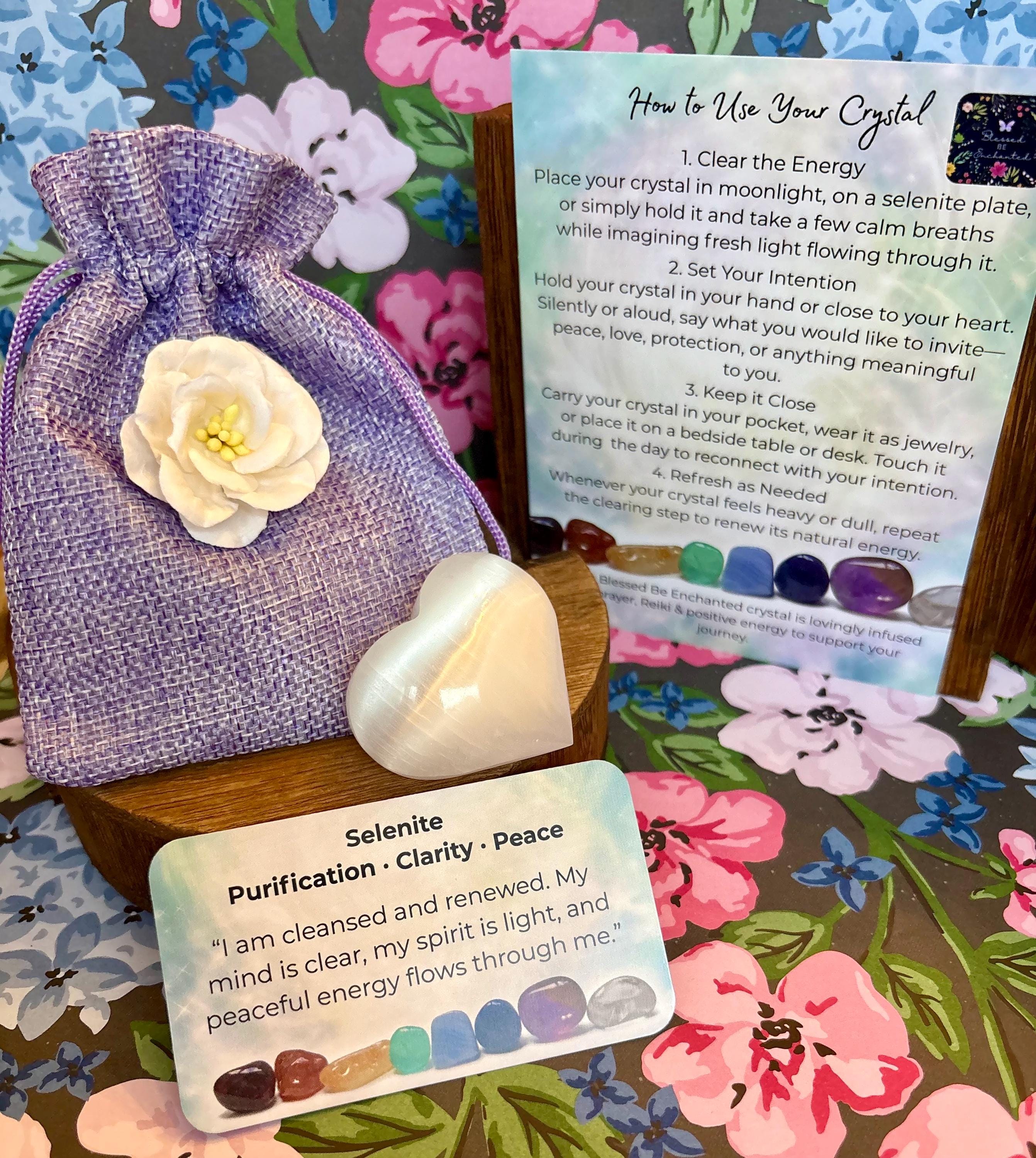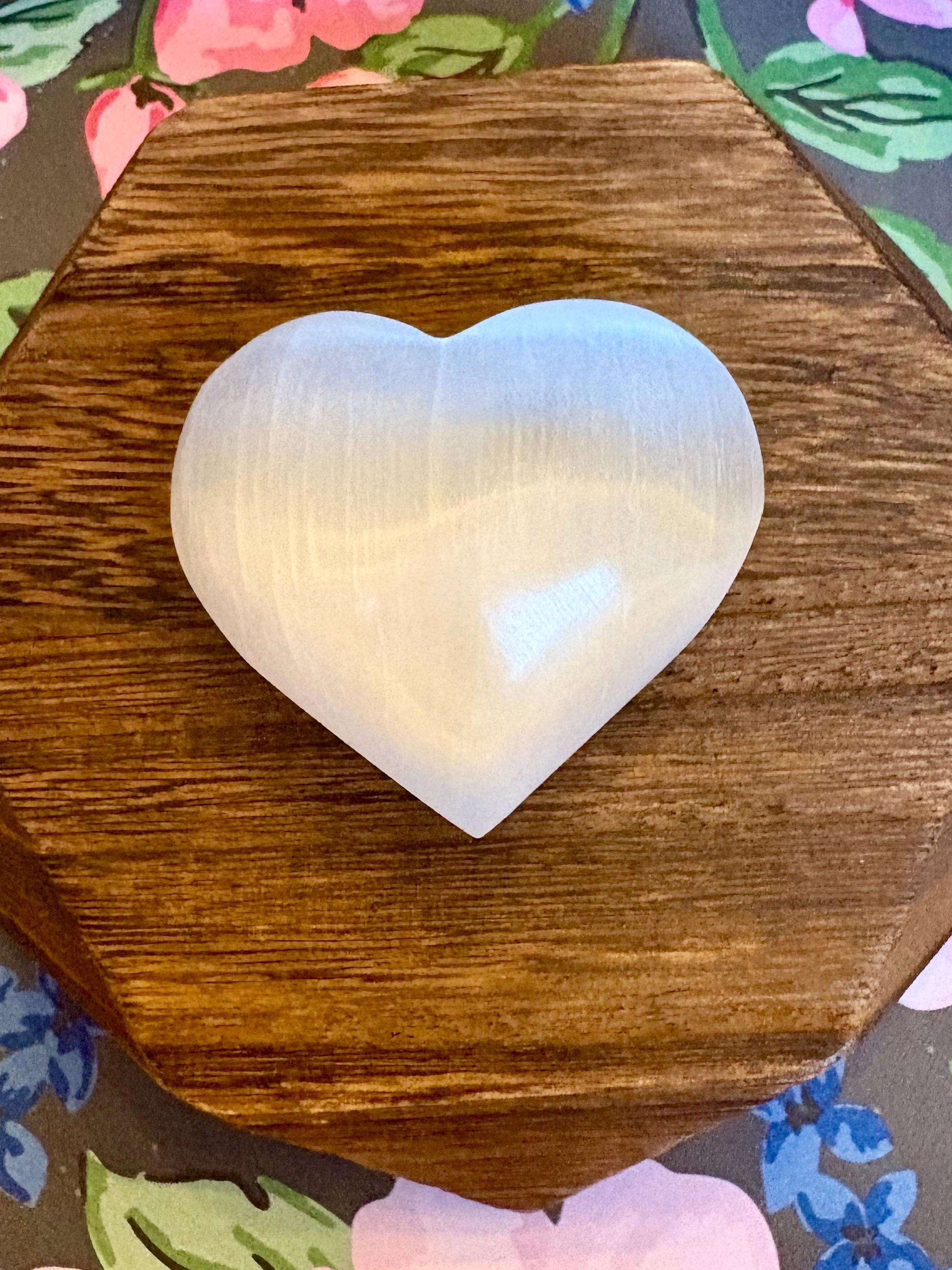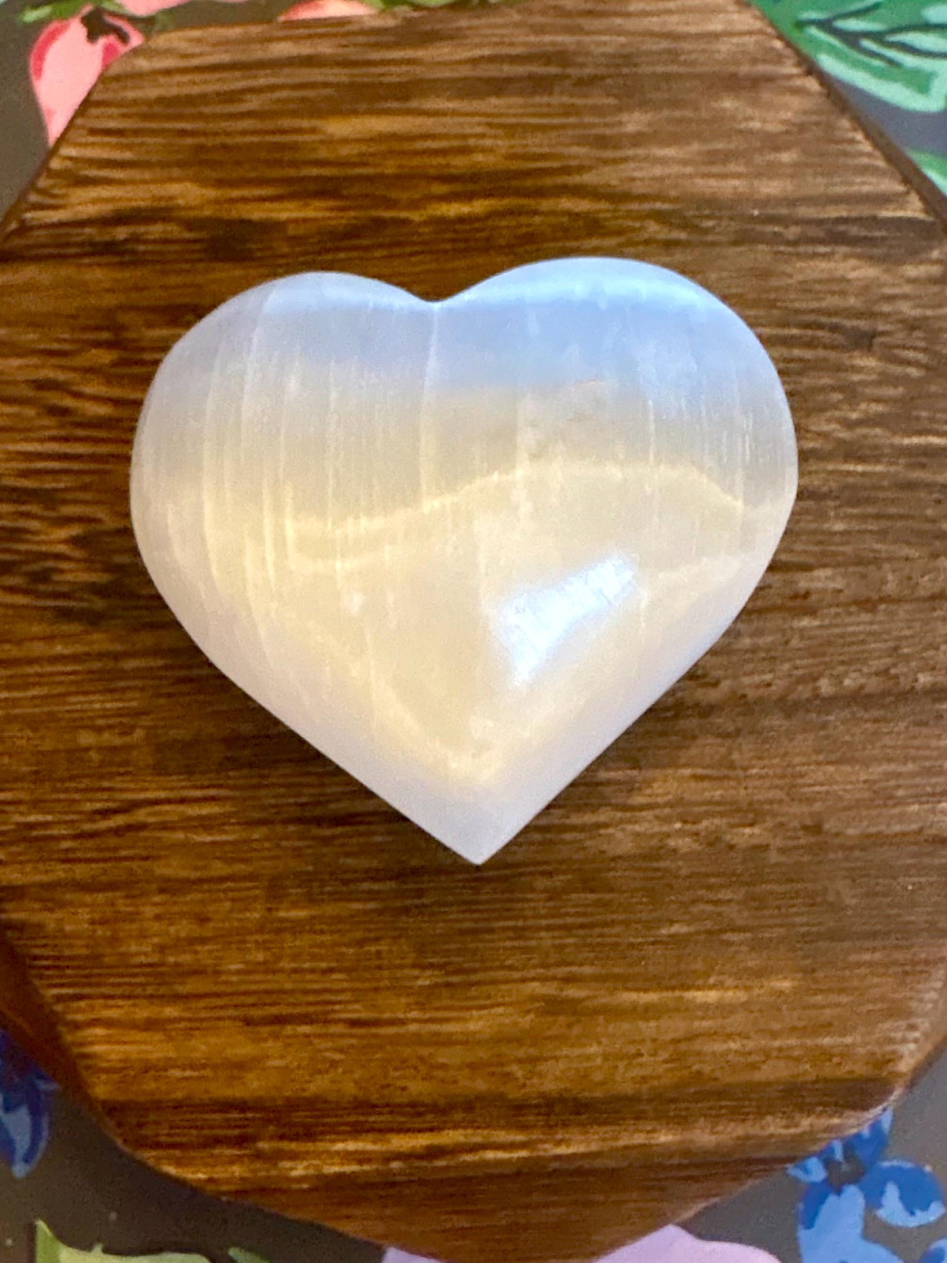 💎 1 polished heart-shaped Selenite crystal (puffed style) – radiant and smooth, perfect for meditation or energy cleansing.