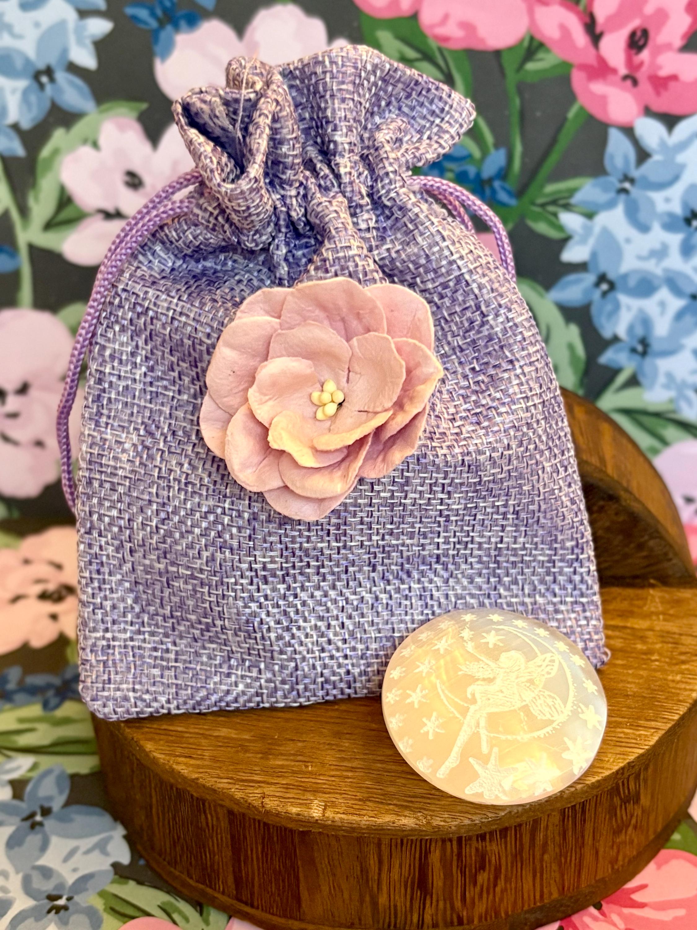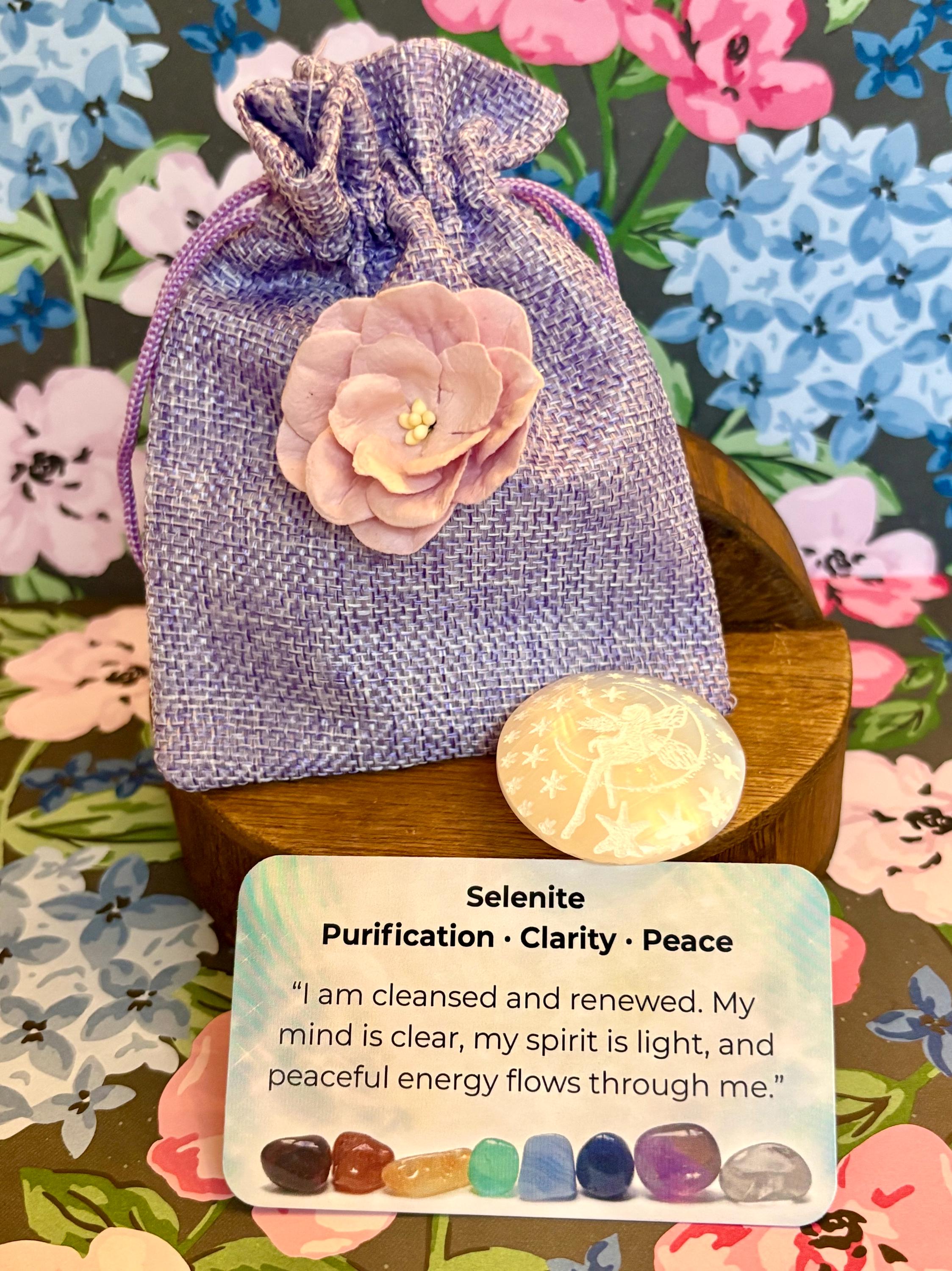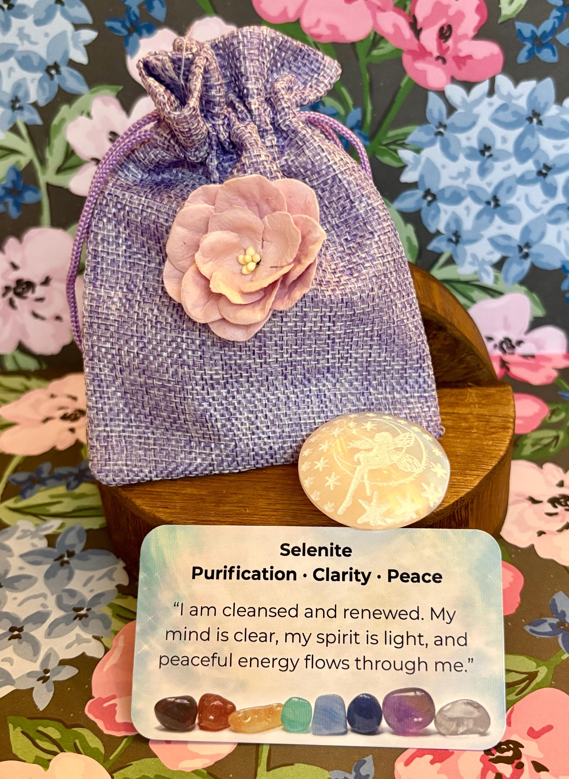 Angel Crystal Bag – Selenite Fairy Palm Stone • Purification • Clarity • Peace • Reiki Blessed Healing Gift Set