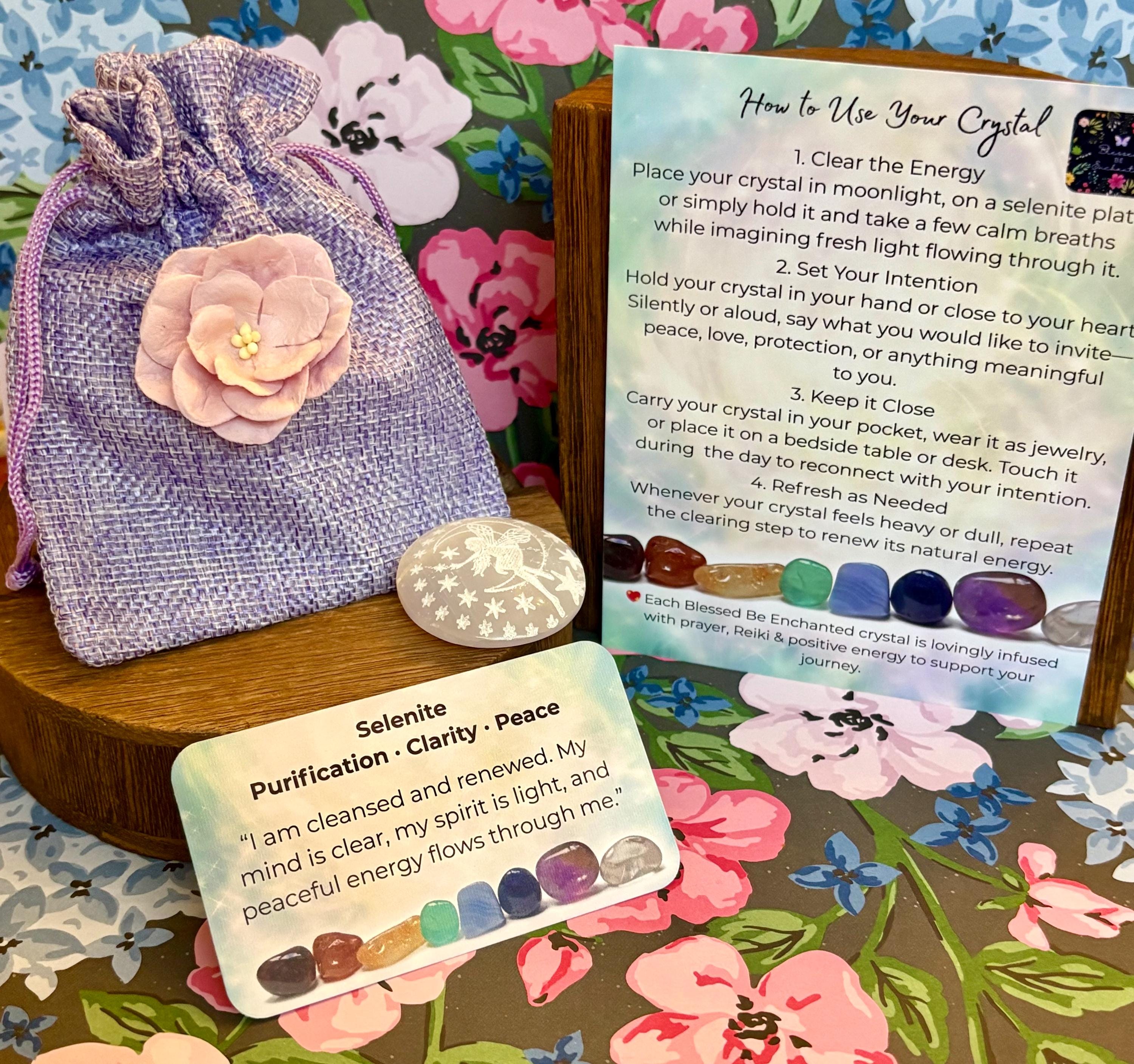 Each Blessed Be Enchanted crystal is intuitively chosen, Reiki-infused, and wrapped with love to bless your journey.
