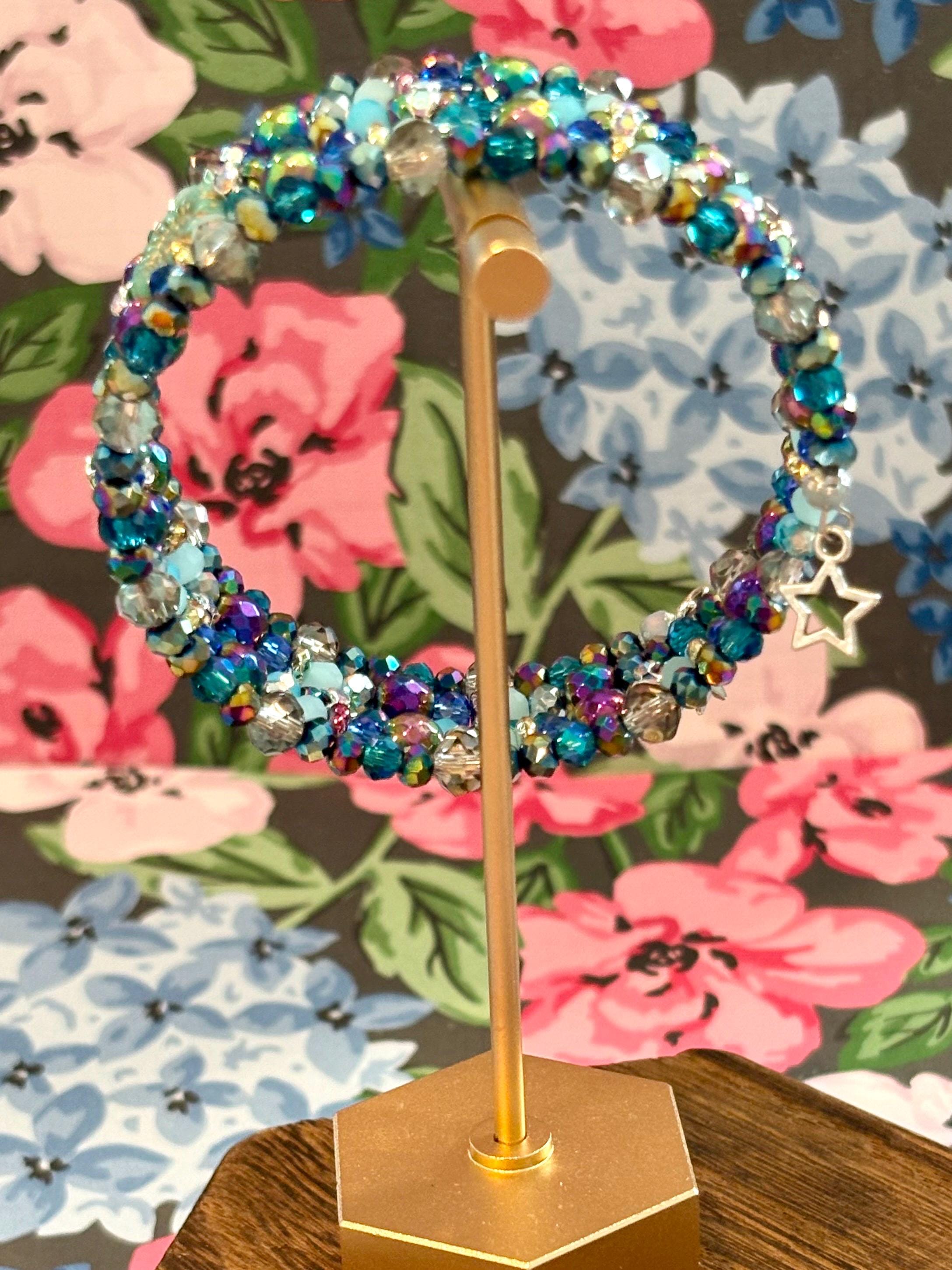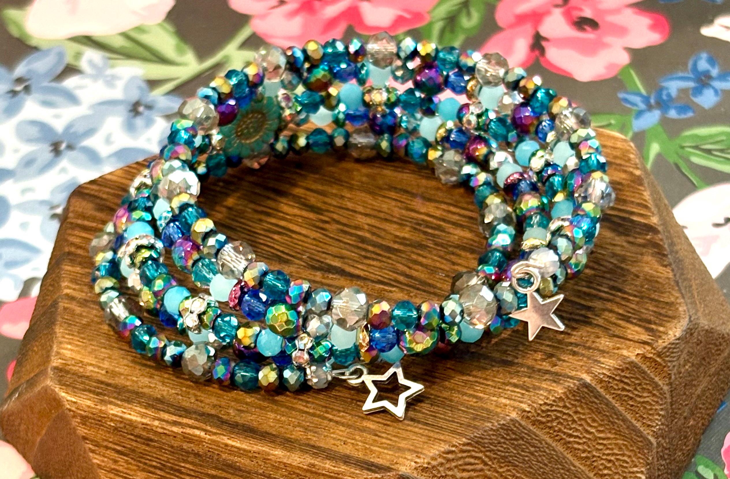 This memory-wire bracelet doesn’t stretch but fits comfortably as it coils naturally, making it perfect for everyday magic, celestial gifting, or adding enchanting sparkle to your Blessed Be Enchanted collection. Two silver star charms dance along the wrap, reminding you to follow your inner light and trust the universe.