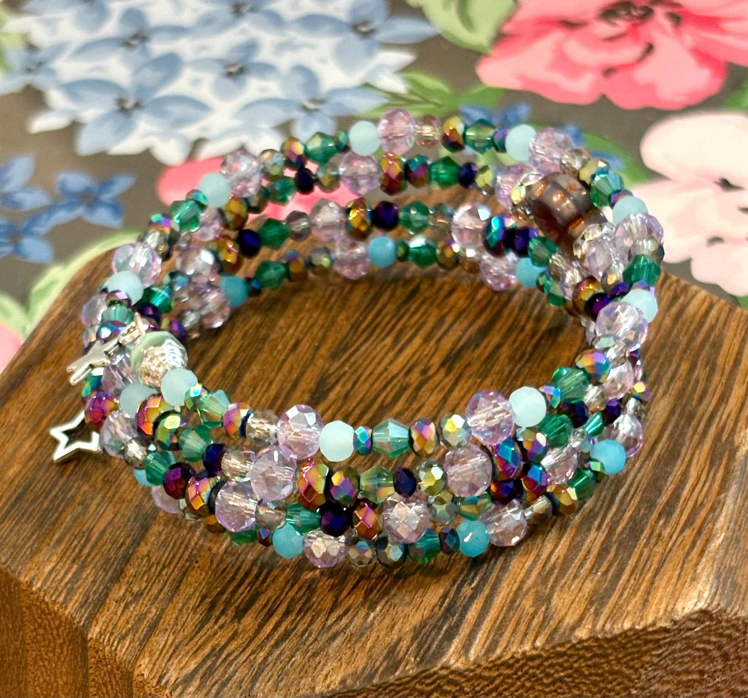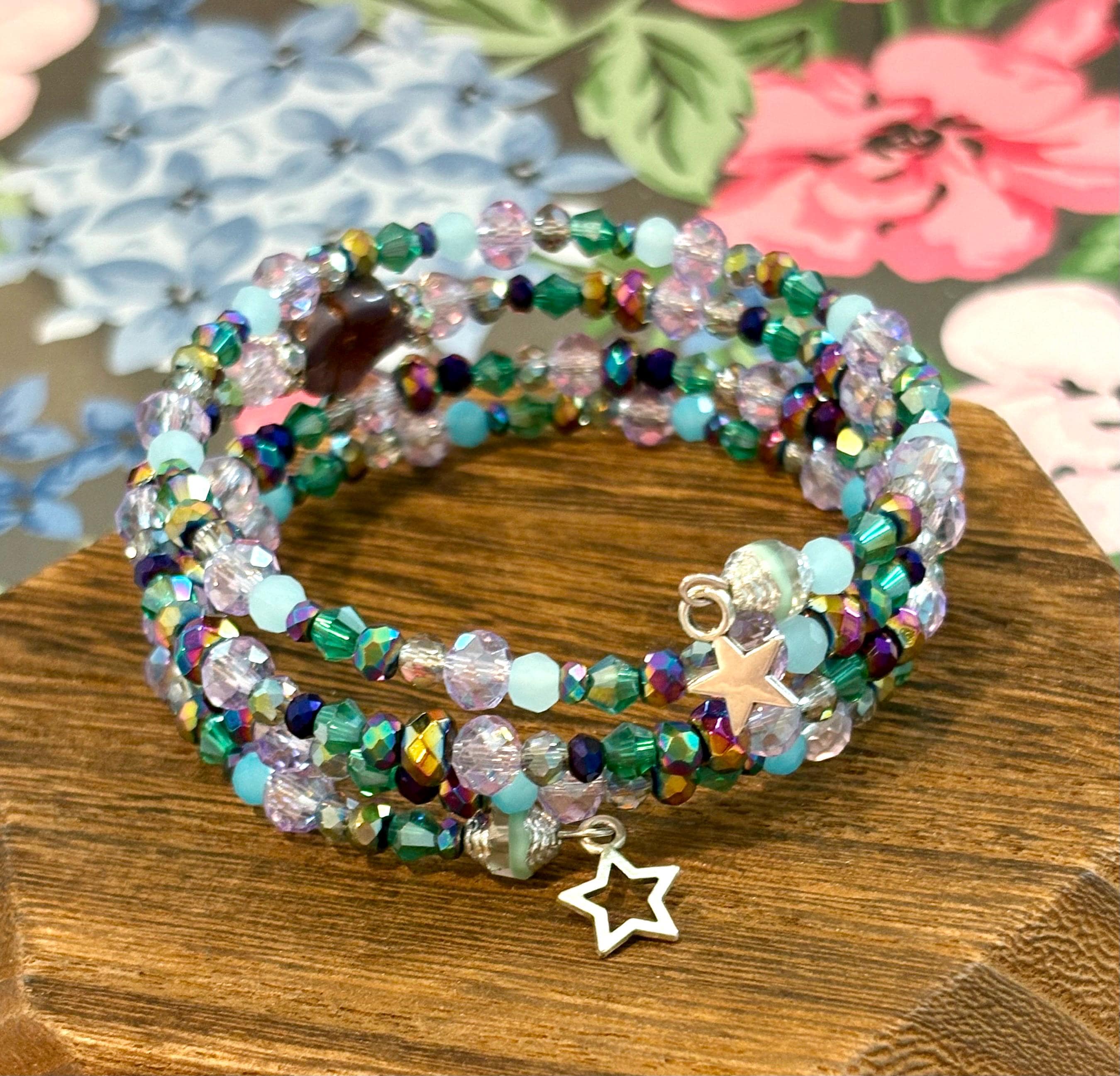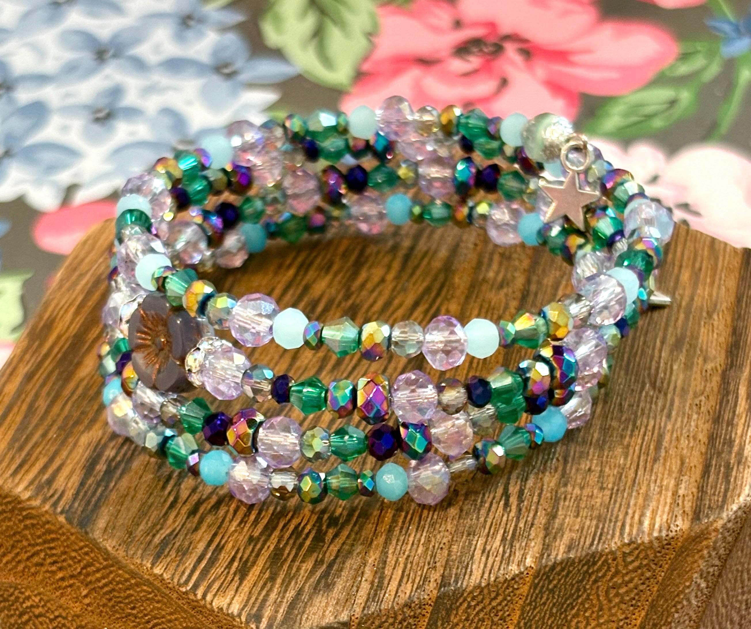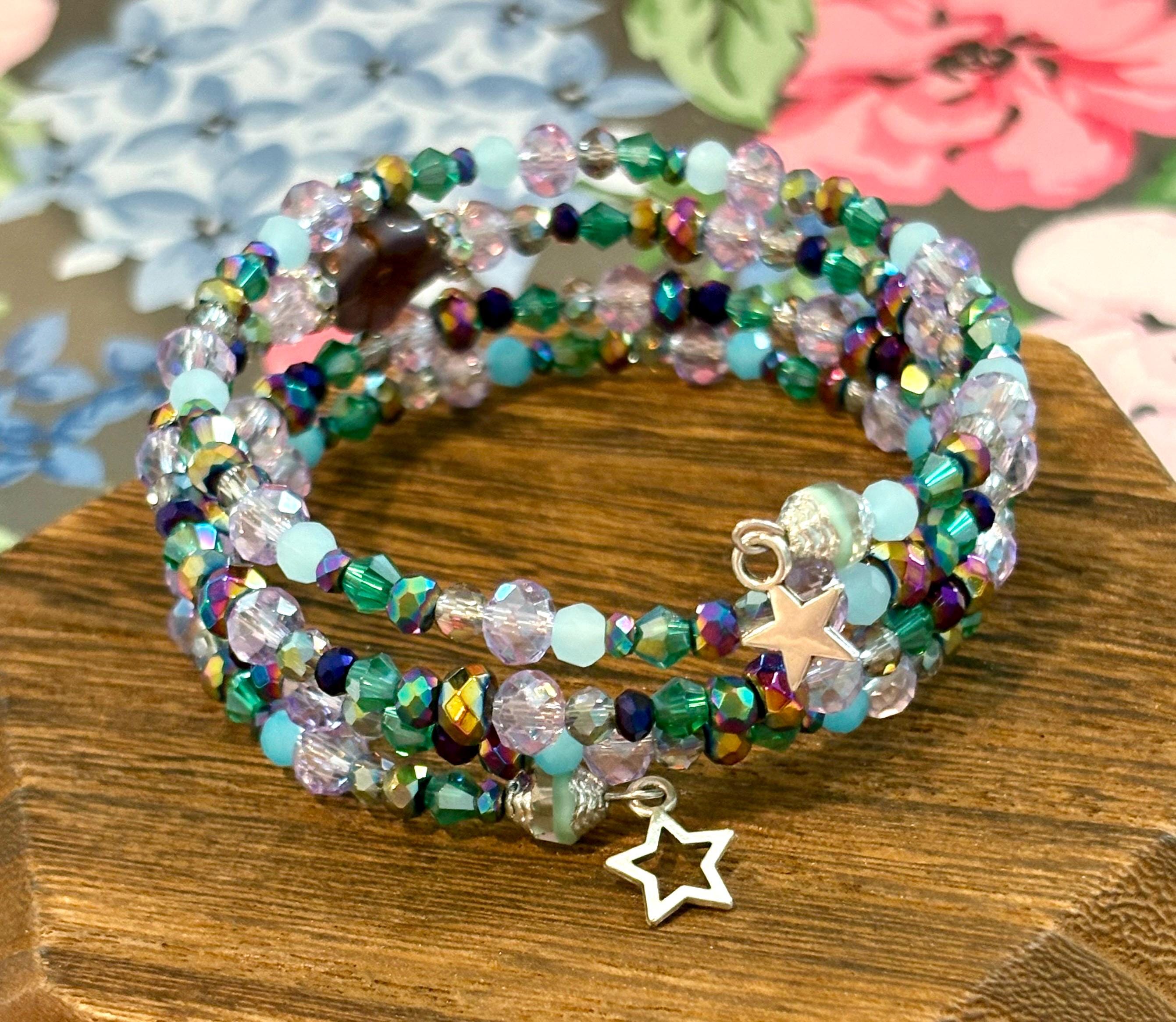 Step into an otherworldly shimmer with the Enchanted Galaxy Wrap Bracelet — a radiant, multi-layered coil bracelet bursting with cosmic color, celestial sparkle, and soft, enchanted garden vibes! Handmade with love and Reiki-infused intention, this wrap bracelet brings together the magic of the universe and the serenity of nature in one glowing piece.