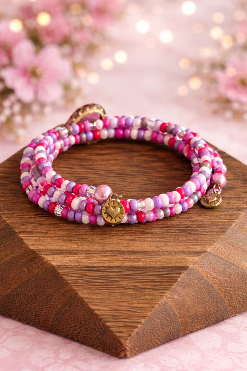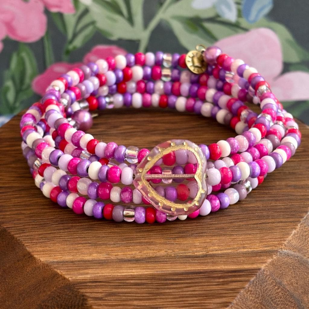 Sweetheart Soul Wrap Bracelet – Wrapped in Love Collection – Heart Gemstone Wrap – Valentine Jewelry – XOXO Beaded Wrap