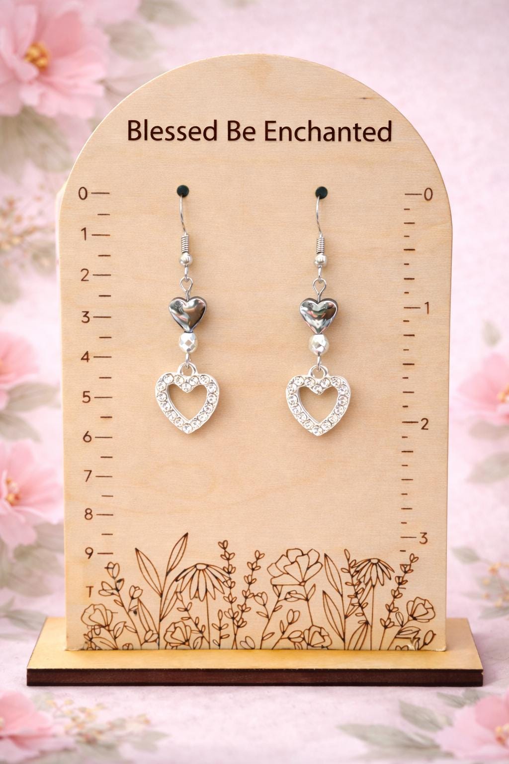 The Silver Heartlight Harmony Earrings are a beautiful blend of elegance, sparkle, and grounding energy! Featuring faceted silver hematite gemstones, mirrored heart accents, and sparkling rhinestone open-heart charms, these earrings shimmer with every movement.
