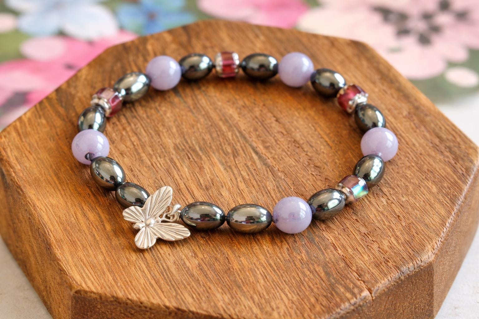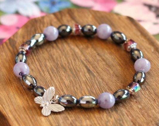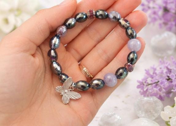 Silverwing Serenity Butterfly Bracelet – Silver Hematite, Lepidolite, Czech Glass, Healing Gemstone Jewelry
