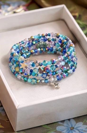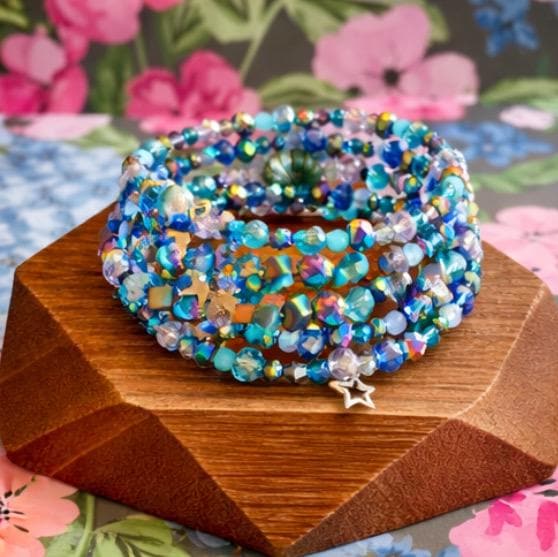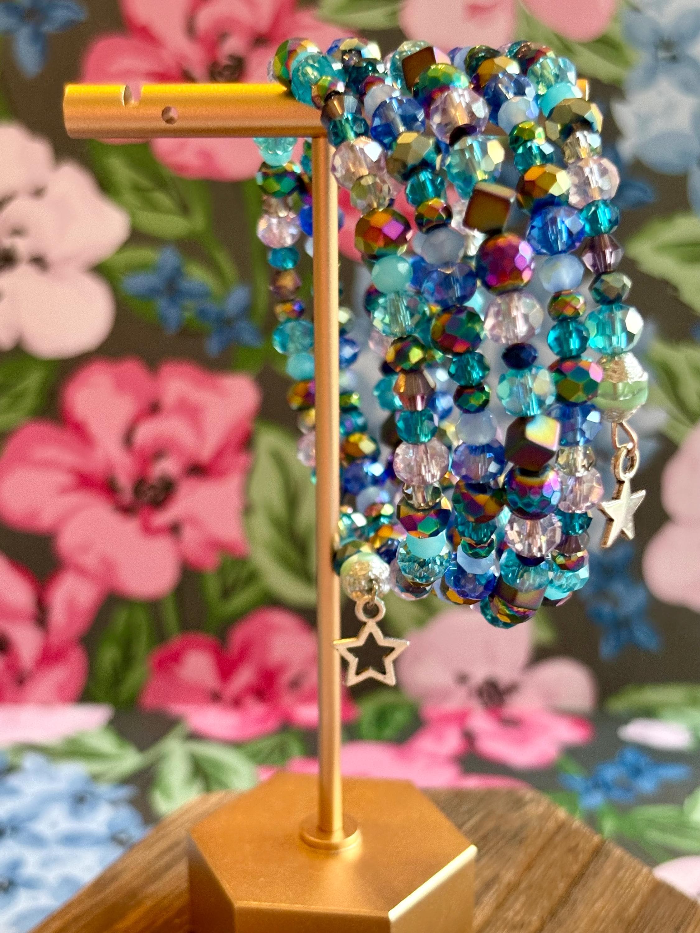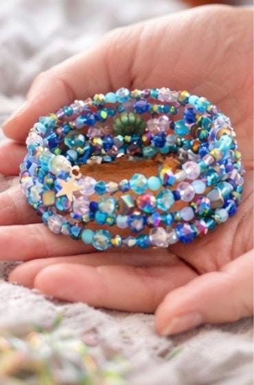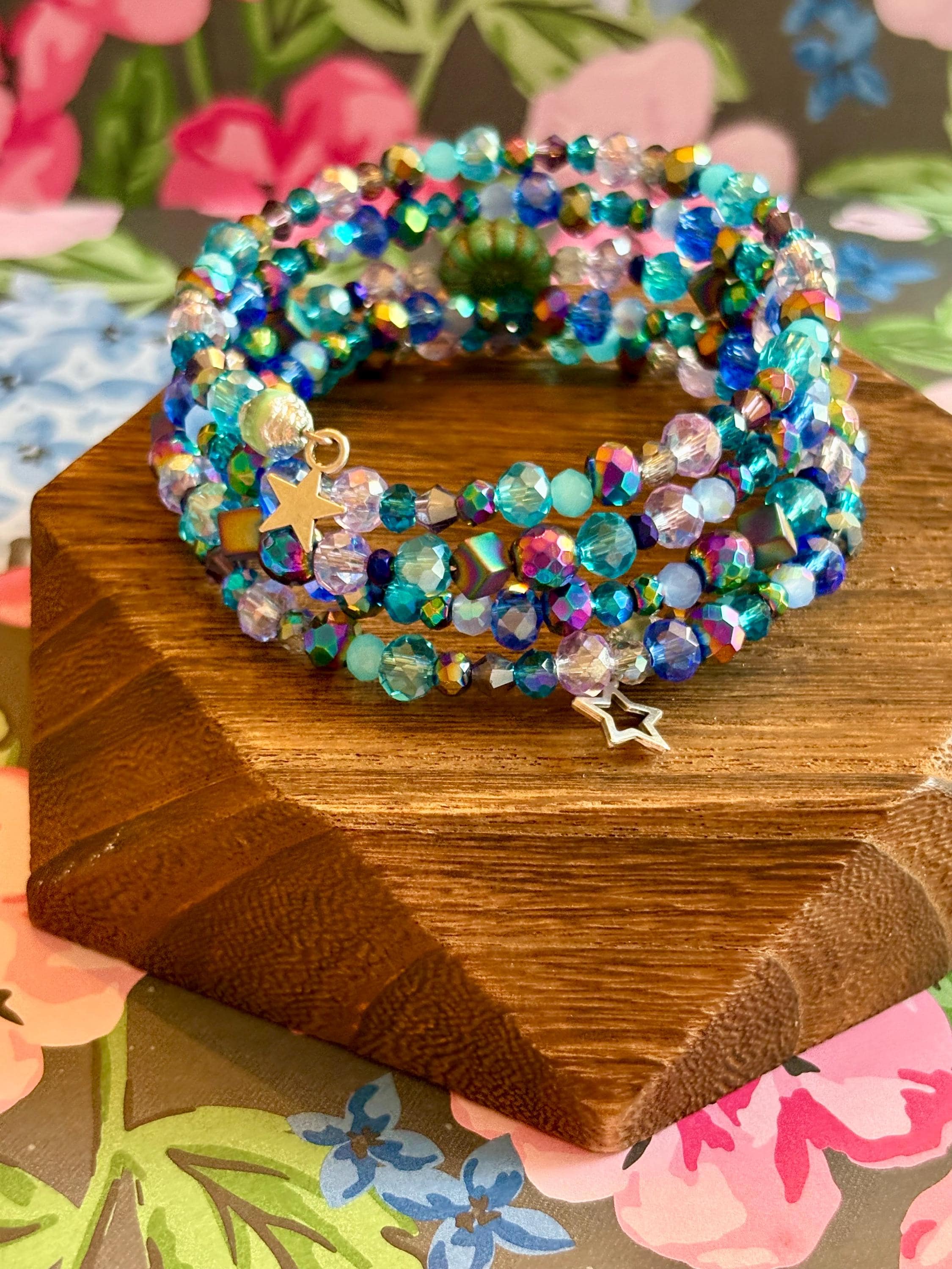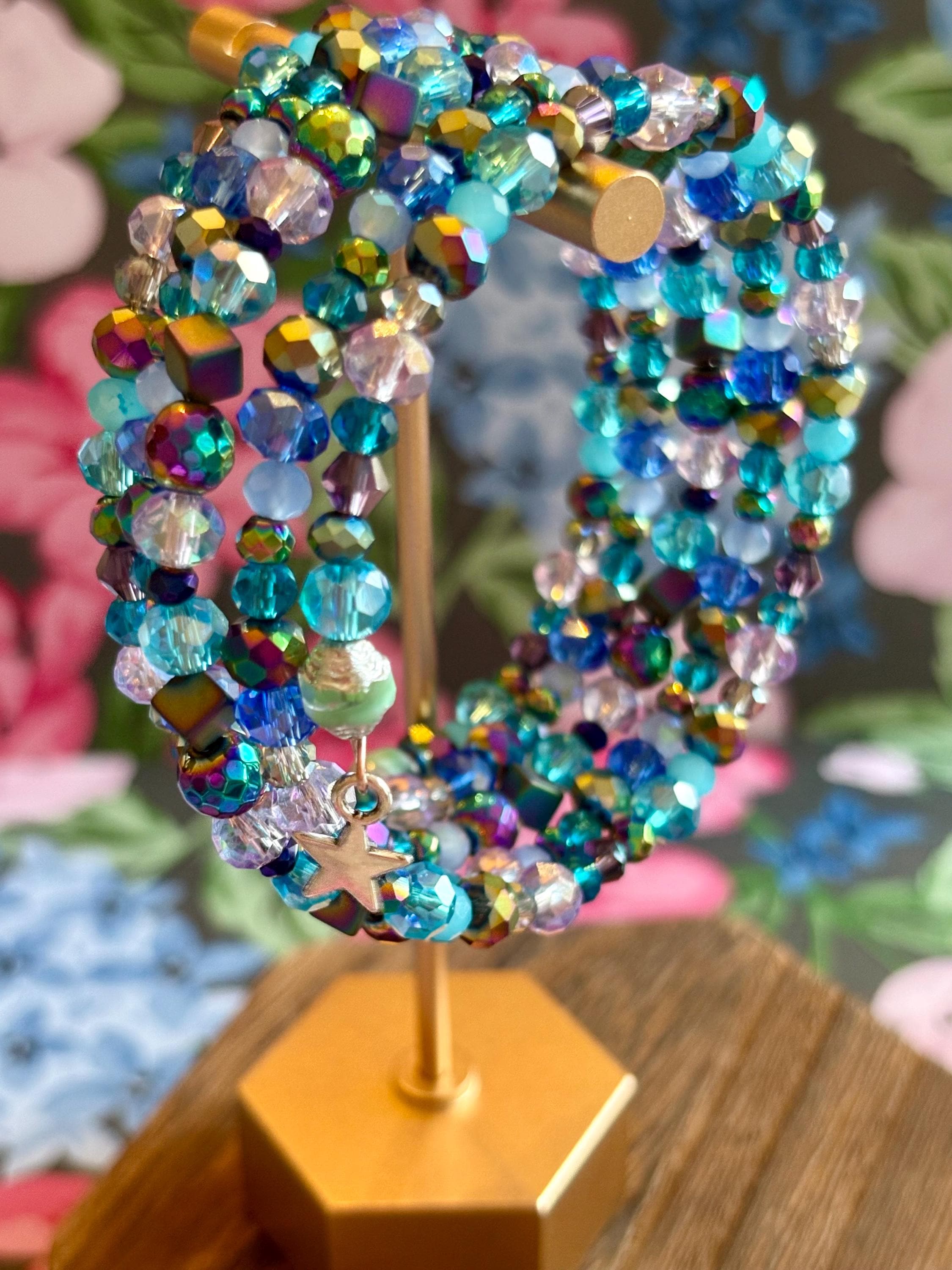 Step into celestial beauty with the Enchanted Galaxy Wrap – Aurora Borealis, a luminous, handcrafted wrap bracelet inspired by starlight, auroras, and enchanted skies. This multi-wrap bracelet shimmers with deep teal, ocean blues, lavender, purple, and rainbow crystal tones, creating a magical, cosmic glow with every movement.