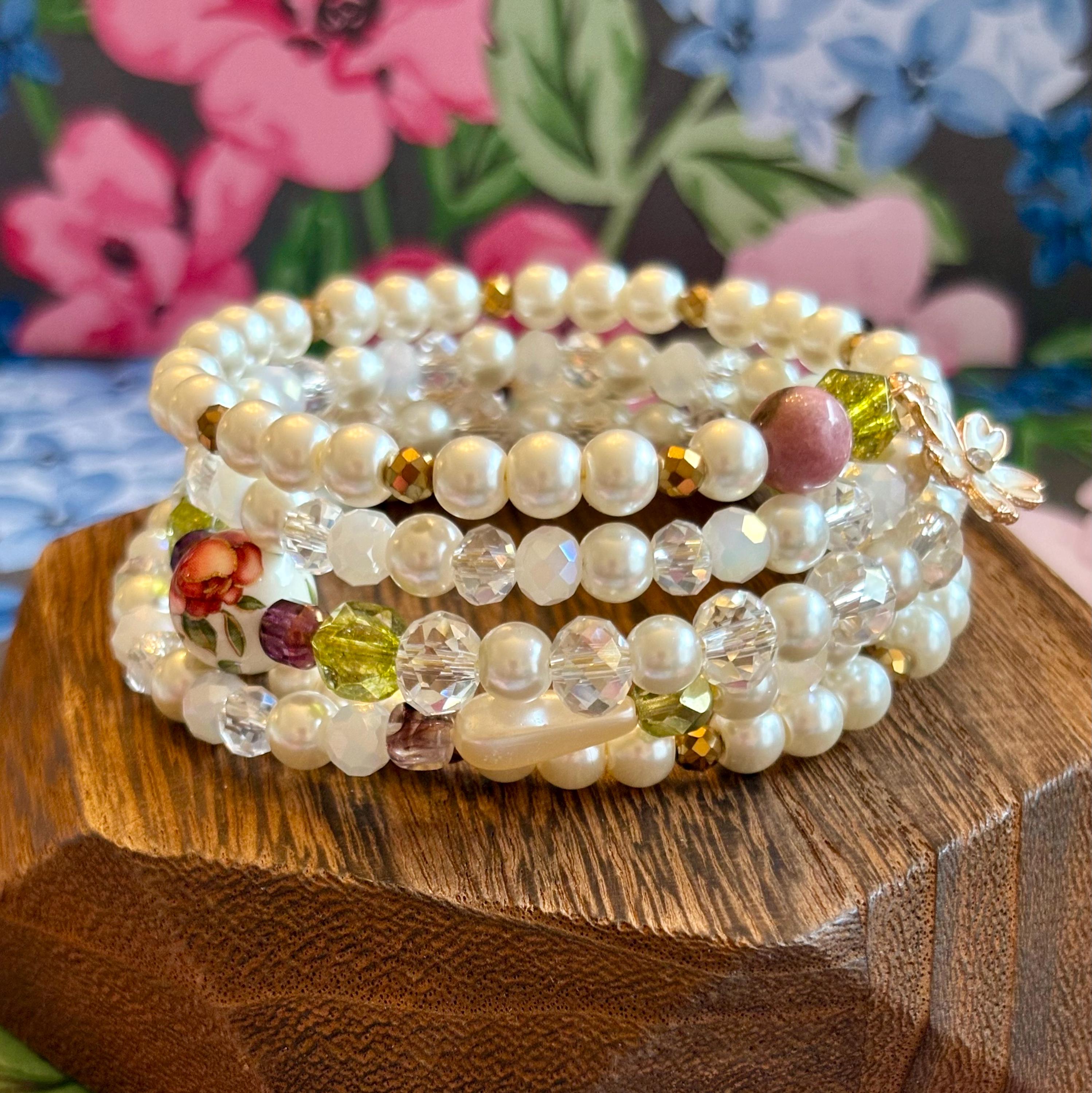 This Wrapped in Love Pearl Blossom Coil Wrap Bracelet is a luminous, romantic design created to wrap your wrist in softness, strength, and heart-centered energy! Handcrafted with layers of glowing pearls, faceted crystals, and meaningful gemstones, this coil wrap is finished with a delicate flower charm and a tourmaline dangle for grounding protection.