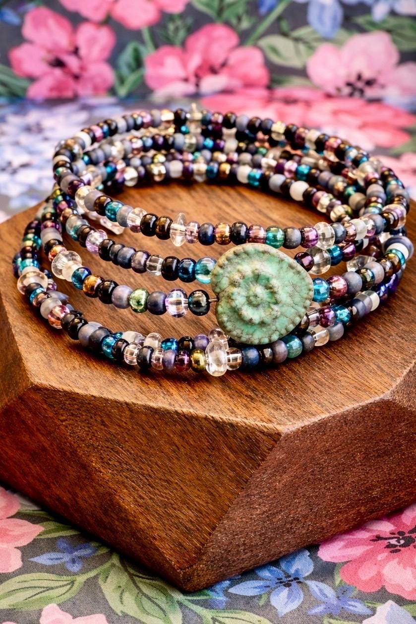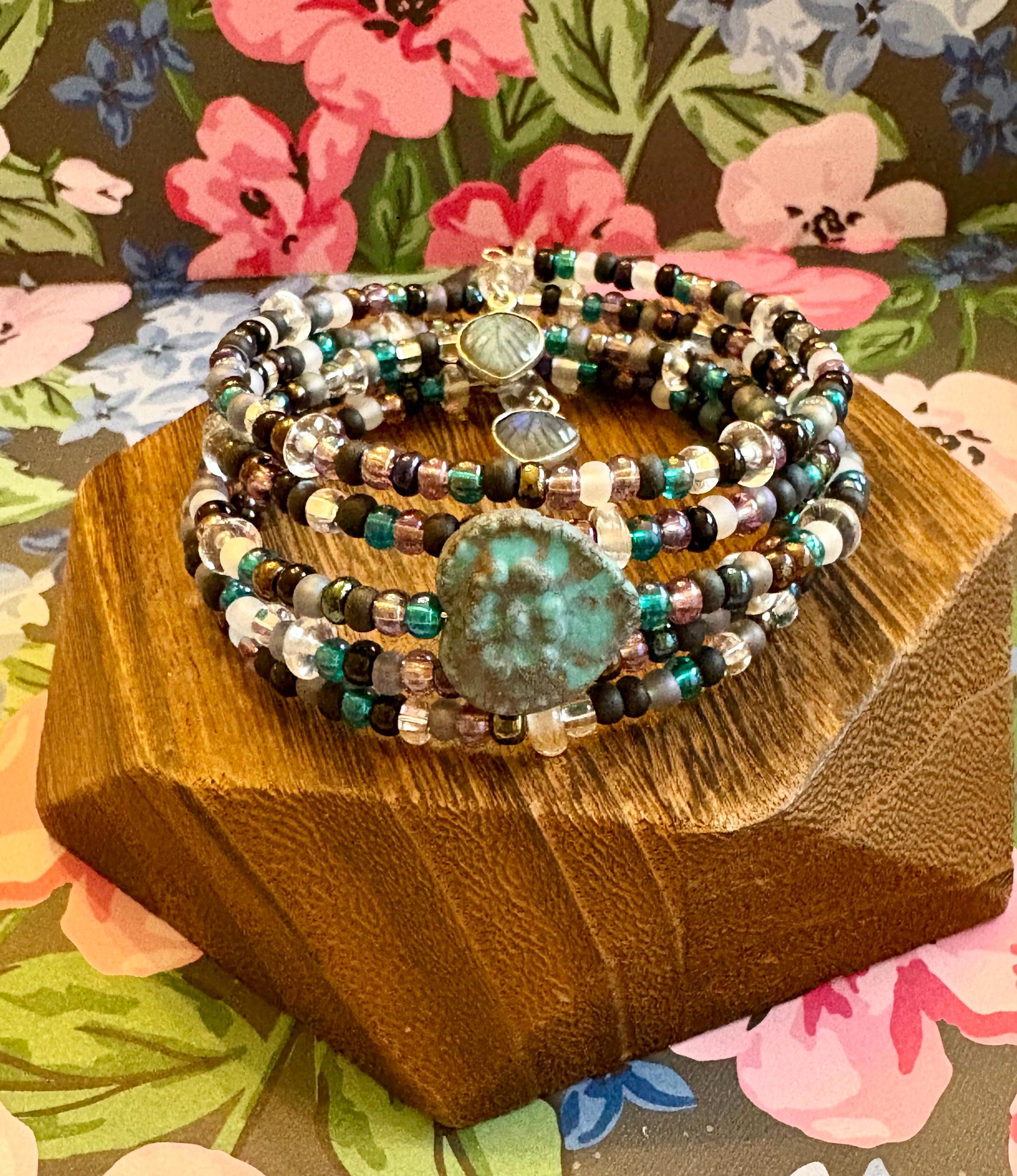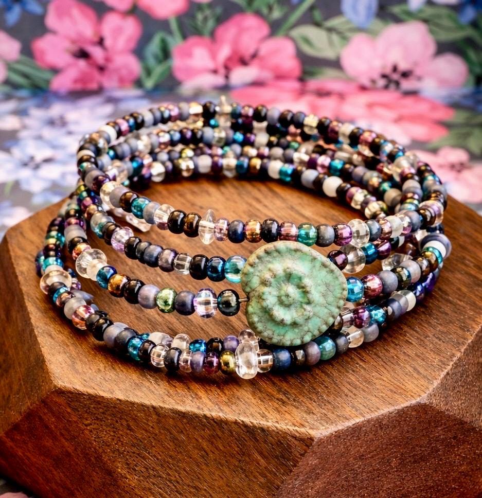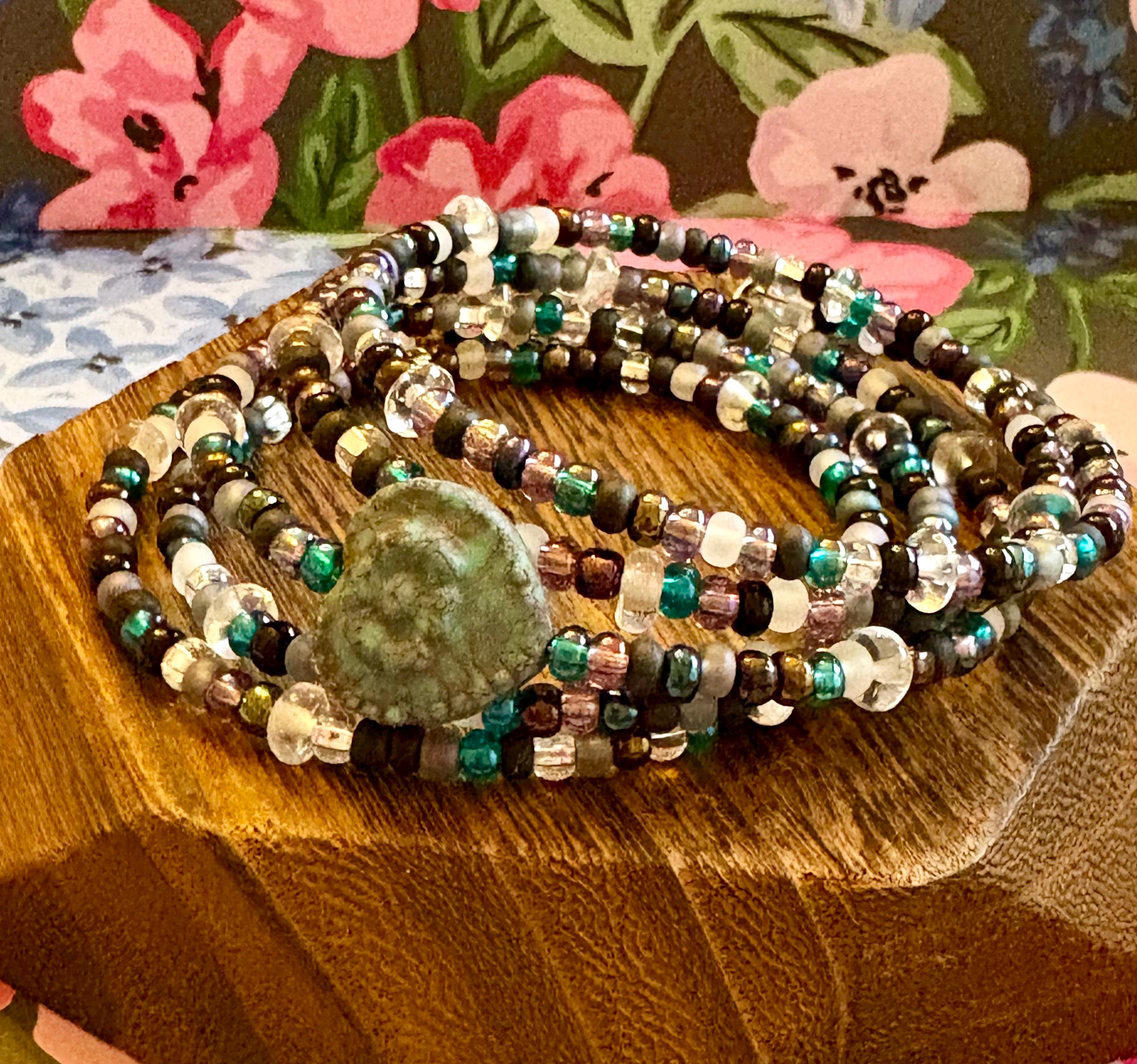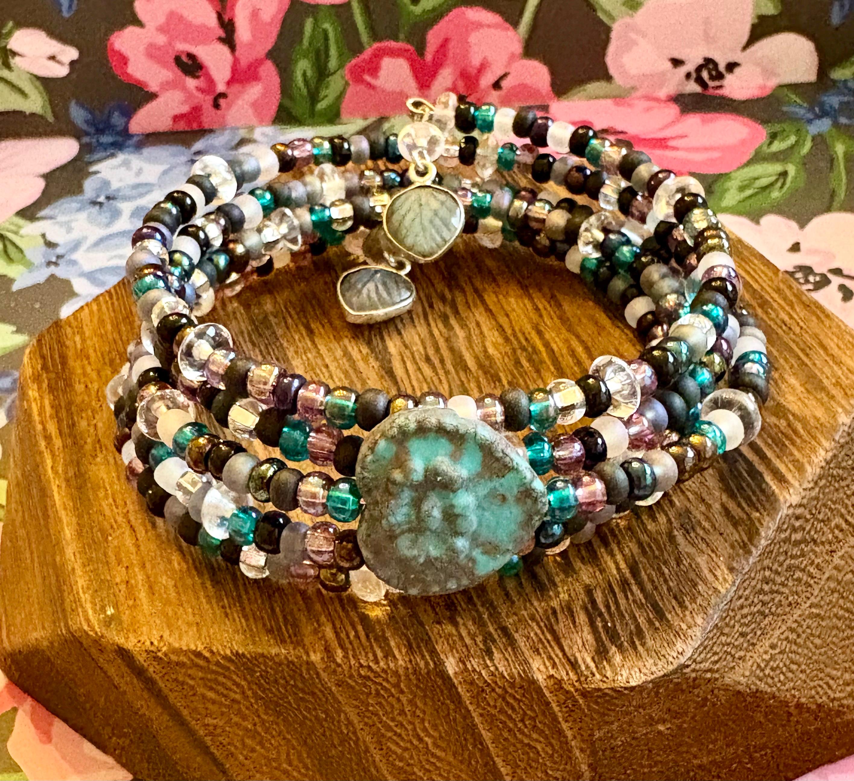 At the heart of this design is a Czech glass heart focal bead, representing love infused with intention. The Witches Brew seed bead mix adds depth, mystery, and a touch of enchantment—making every bracelet truly one of a kind.