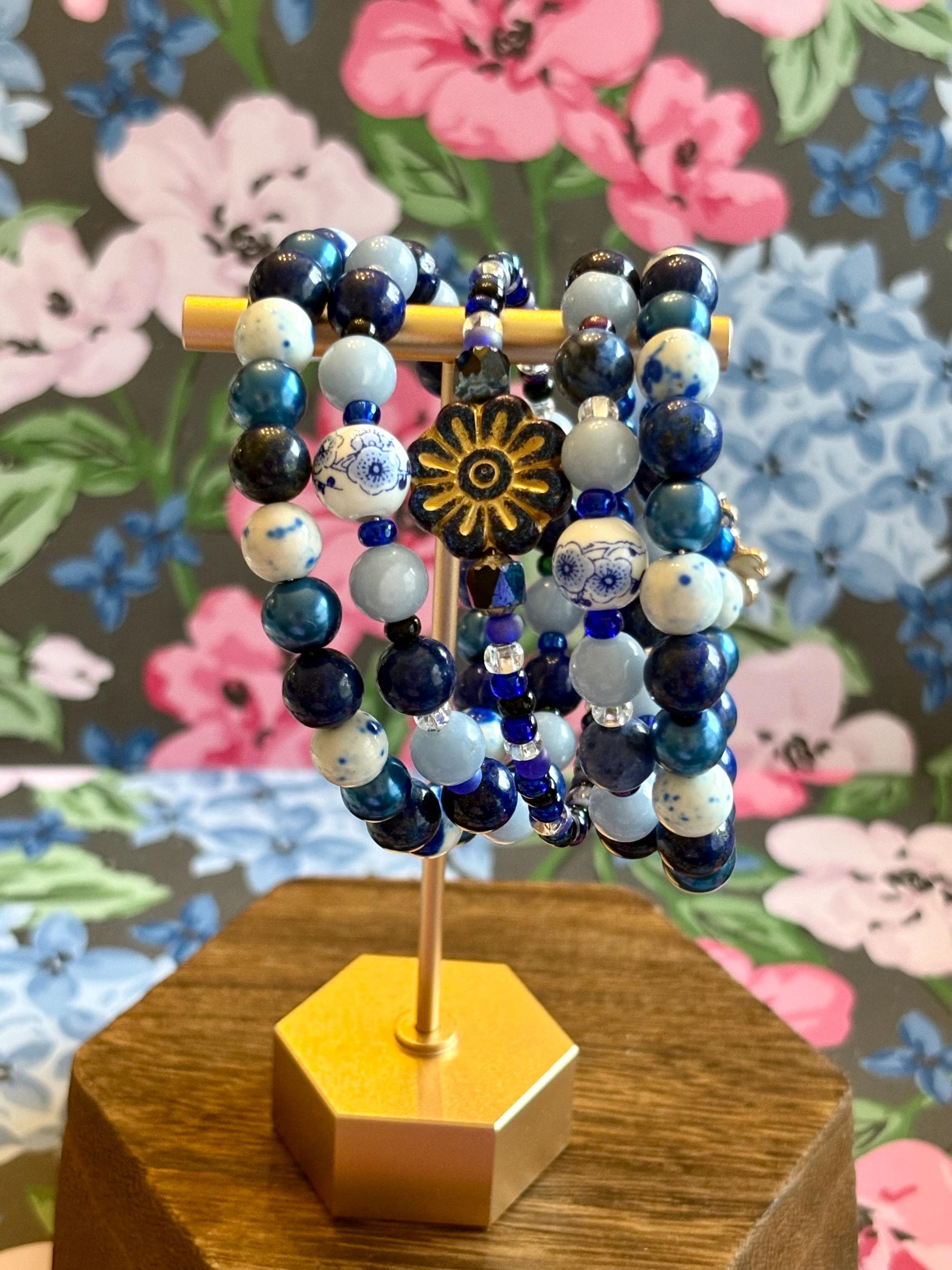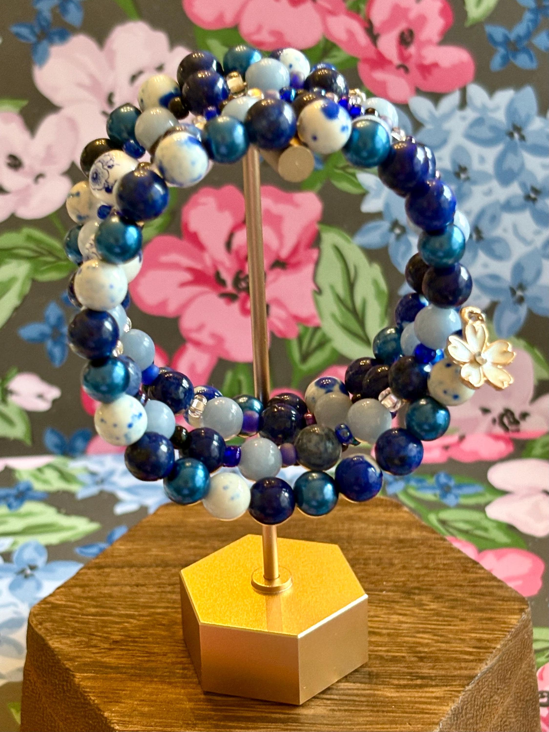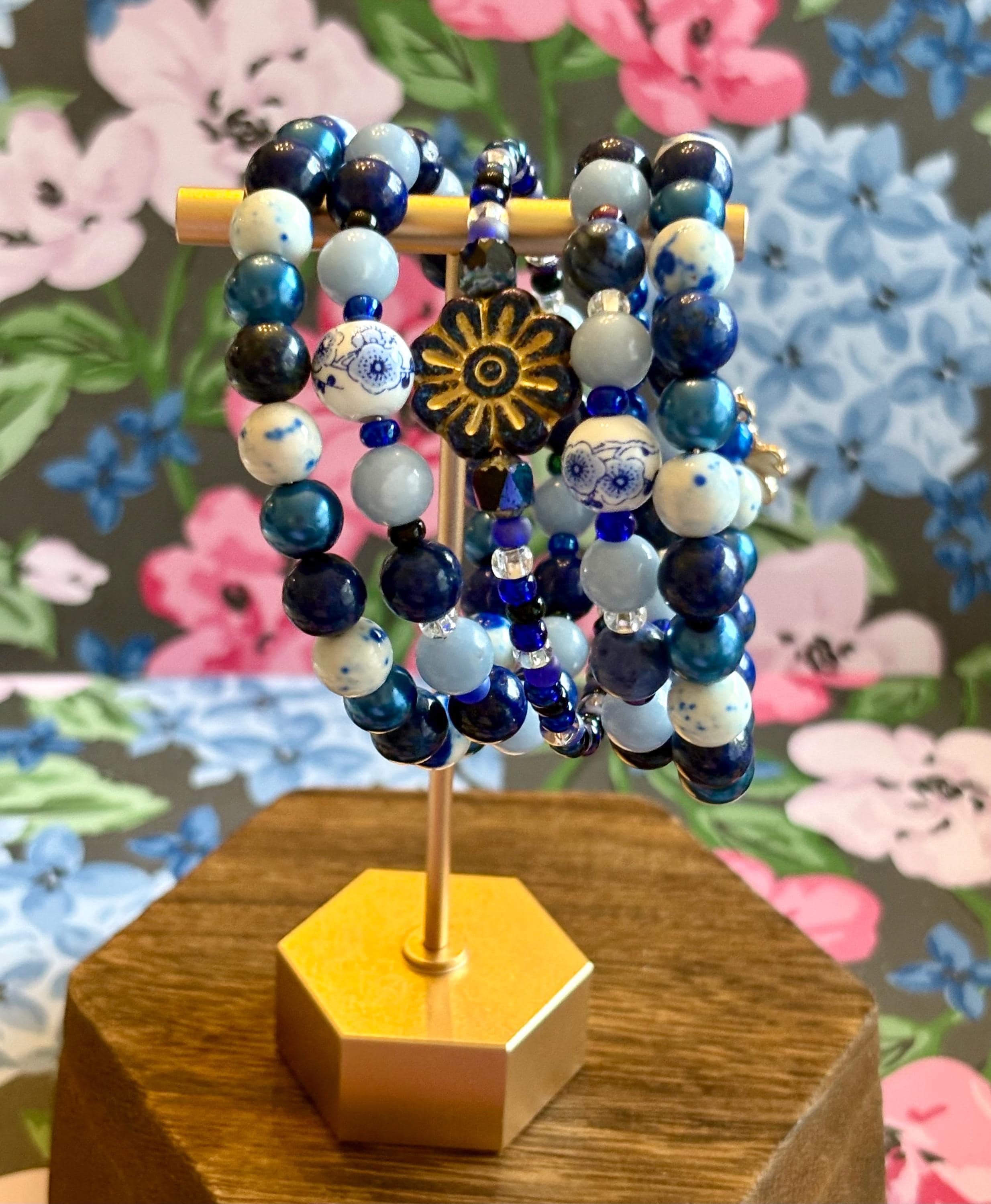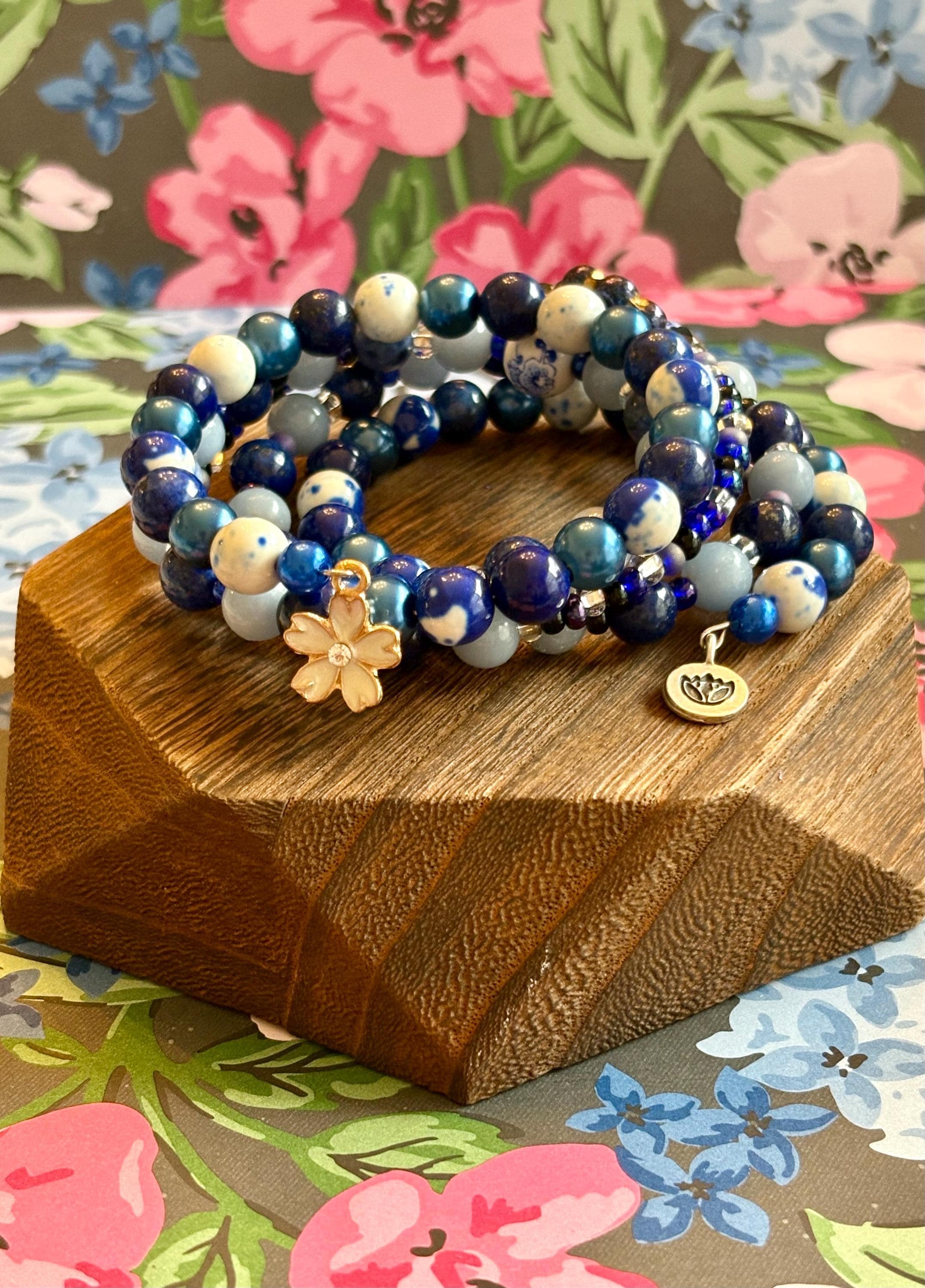 Wrap yourself in calming blue hues and angelic serenity with Blue Lotus Angel Bloom, a handcrafted gemstone coil wrap bracelet designed to bring peace, clarity, and gentle spiritual support! This multi-wrap bracelet blends soft sky blues, deep lapis tones, and luminous metallic accents for a soothing yet powerful presence on the wrist.