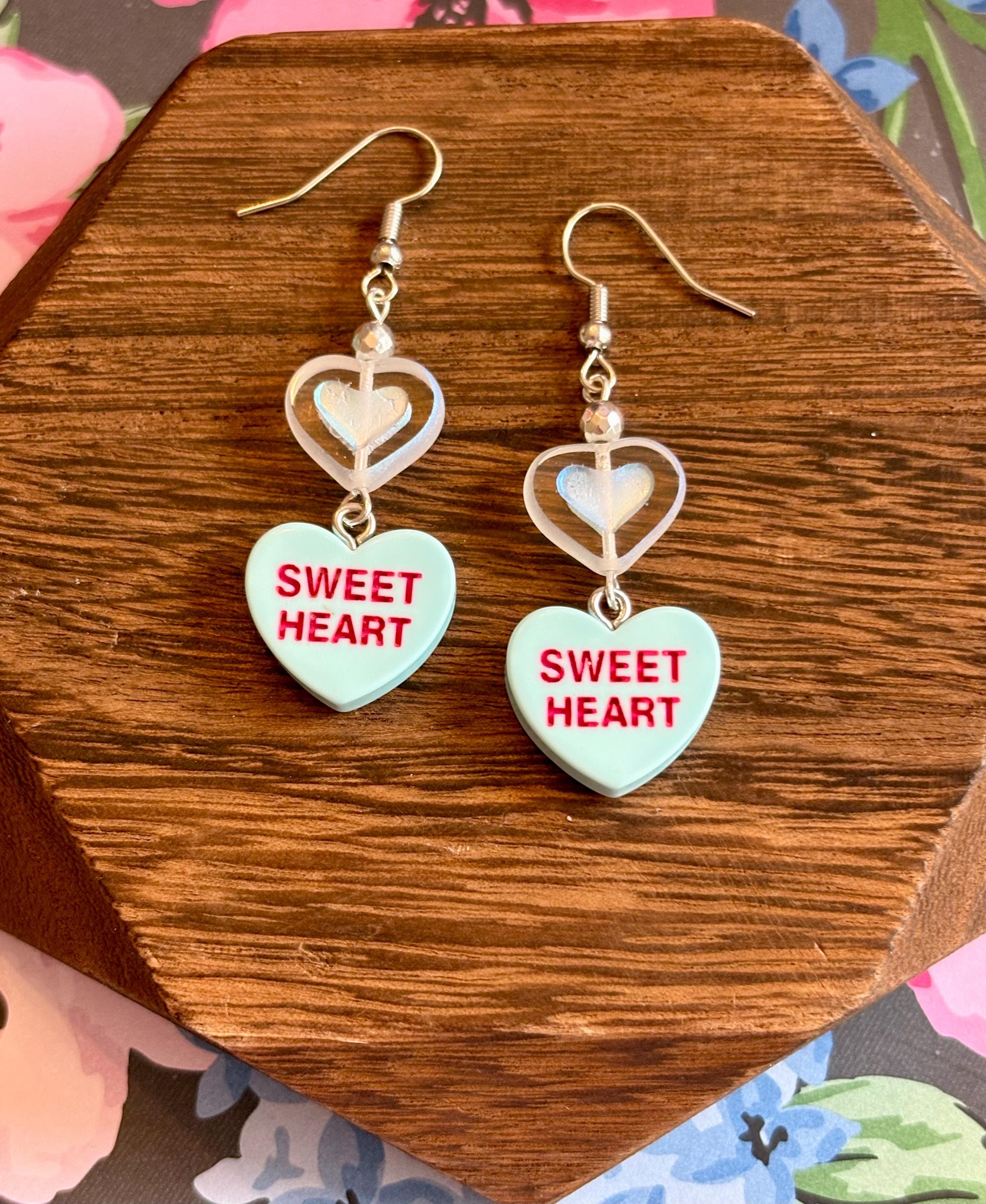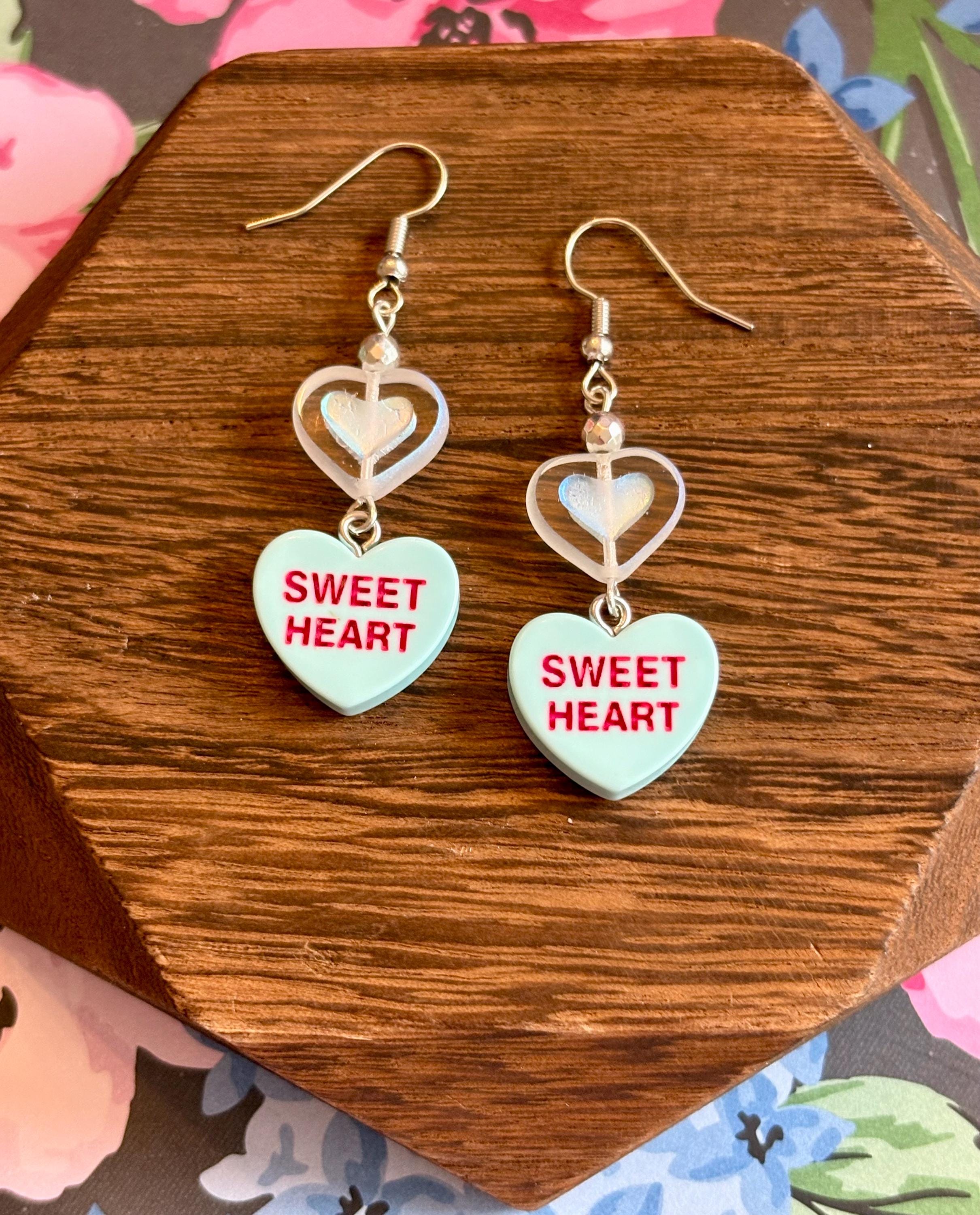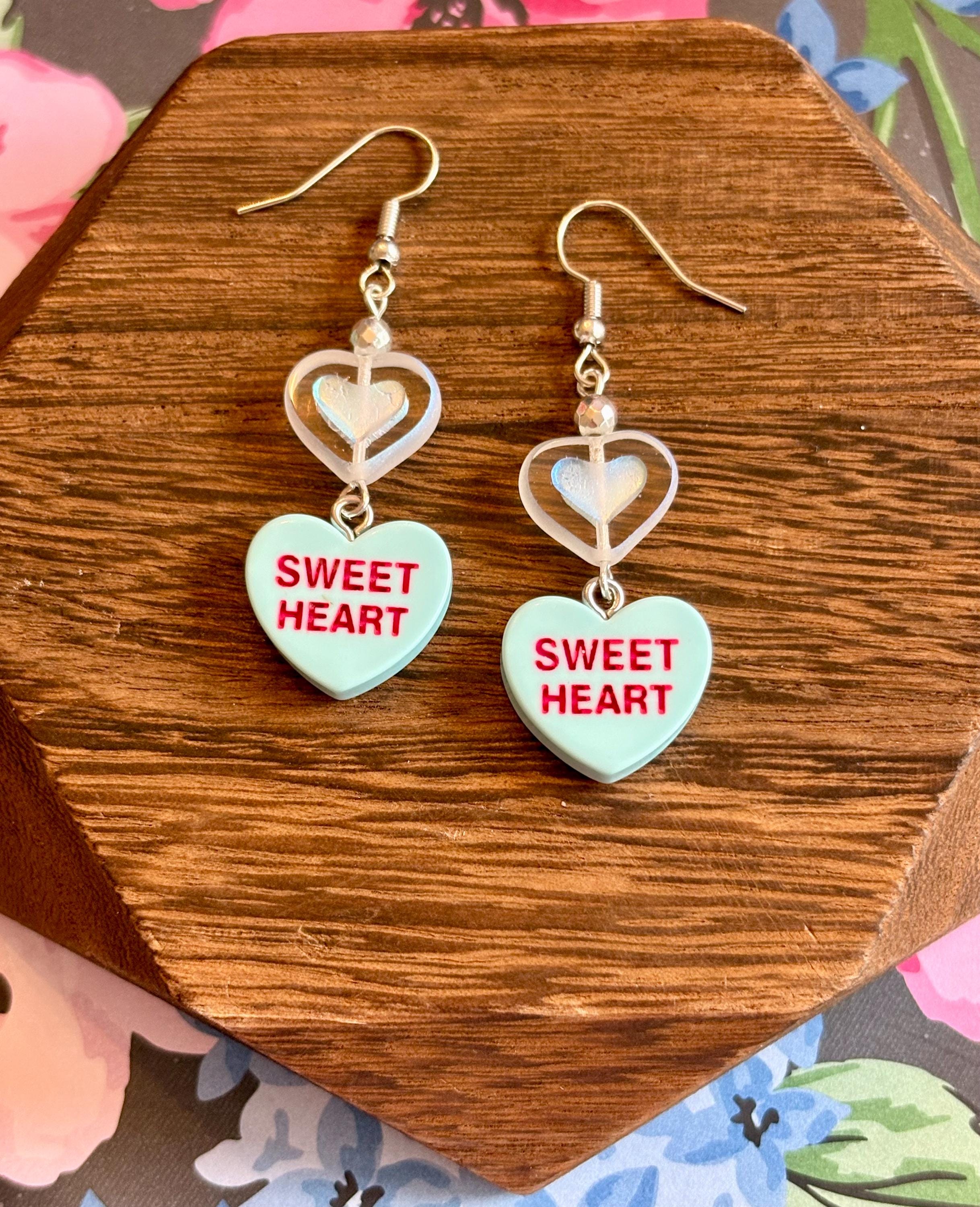 These Sweetheart Whispers Candy Heart Earrings are a playful yet meaningful blend of nostalgic charm and grounding crystal energy! Designed with faceted silver hematite gemstones, shimmering Czech glass heart beads, and classic candy heart charms, they add a pop of love, joy, and sparkle to any outfit.
