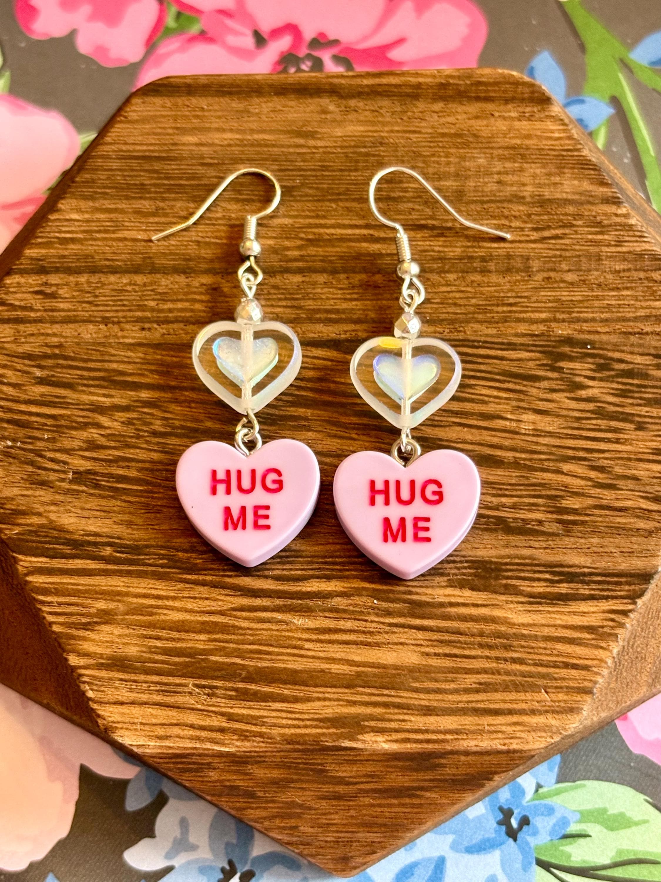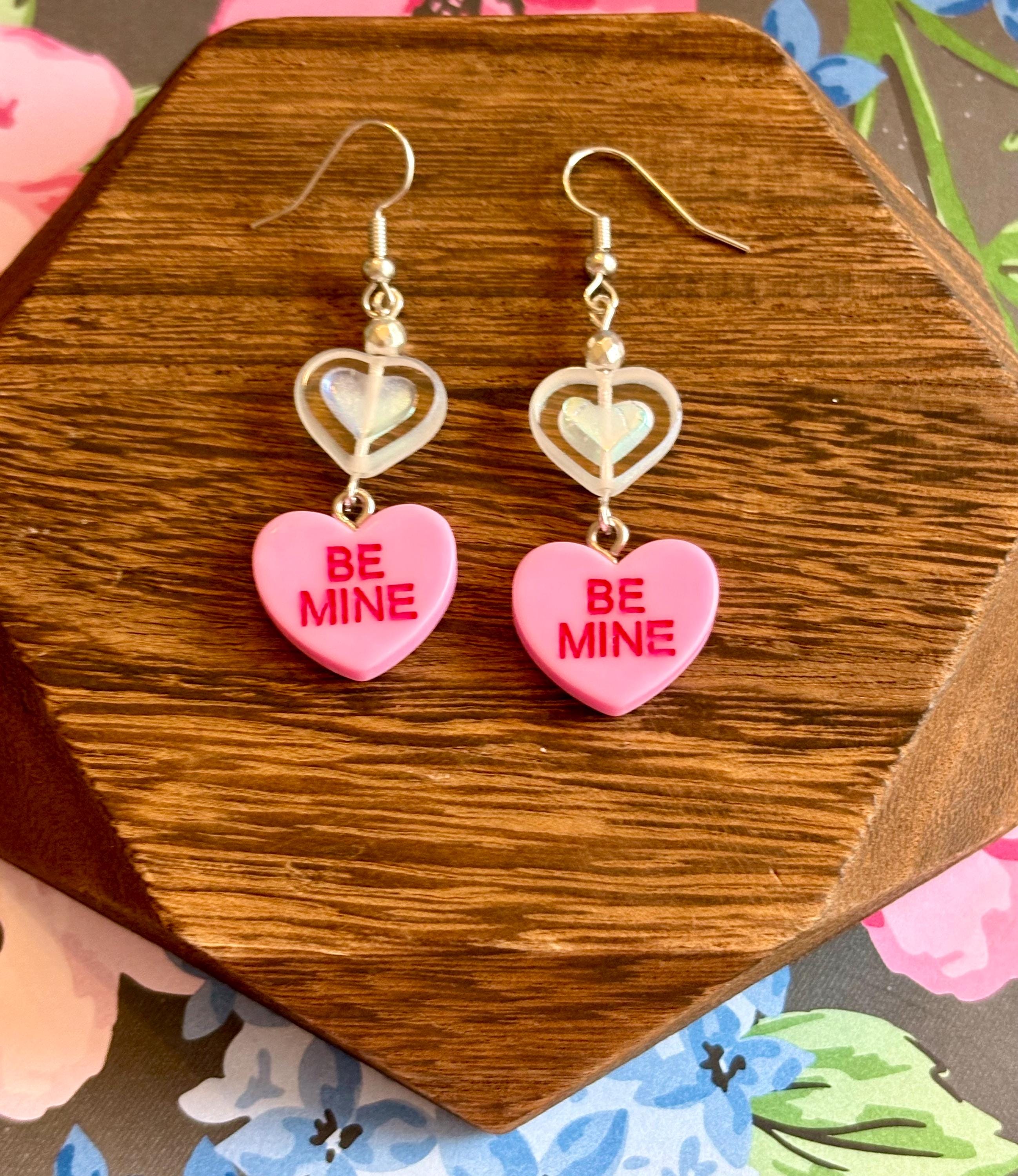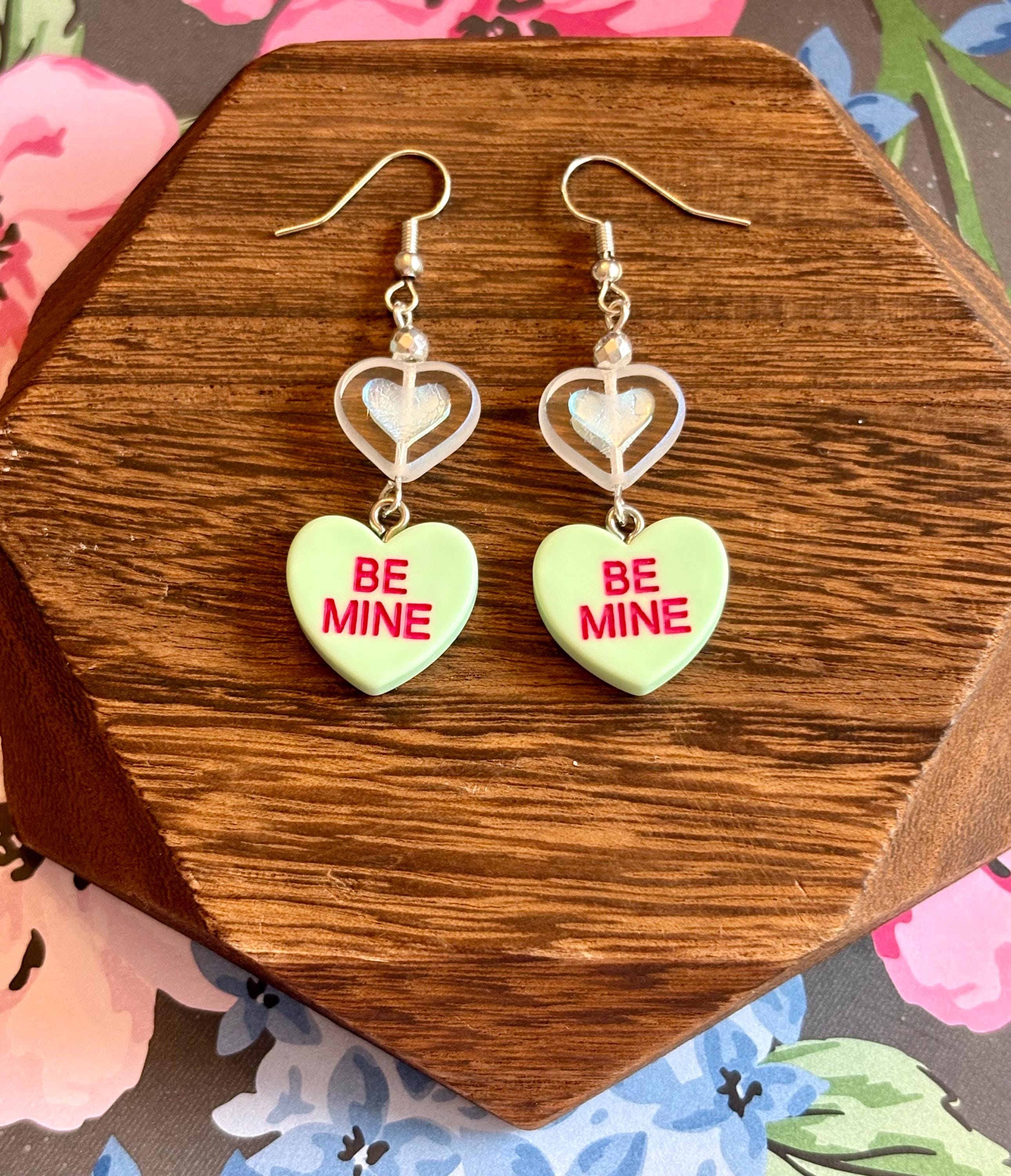 These Sweetheart Whispers Candy Heart Earrings are a playful yet meaningful blend of nostalgic charm and grounding crystal energy! Designed with faceted silver hematite gemstones, shimmering Czech glass heart beads, and classic candy heart charms, they add a pop of love, joy, and sparkle to any outfit.