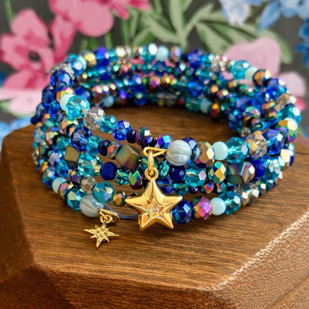 Aurora Borealis Galaxy Wrap Bracelet | Enchanted Galaxy Collection | Crystal Star Charm Bracelet | Rainbow Faceted Beads