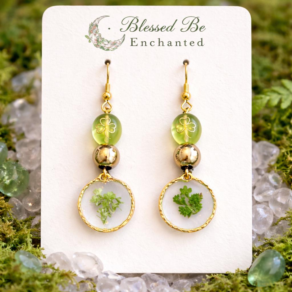 Invite a little luck and a lot of magic into your day with these Enchanted Clover Earrings—a nature-inspired design infused with gentle enchantment and earthy beauty! Each pair features real dried pressed flowers preserved in clear pendants, creating a delicate window into nature’s quiet magic.