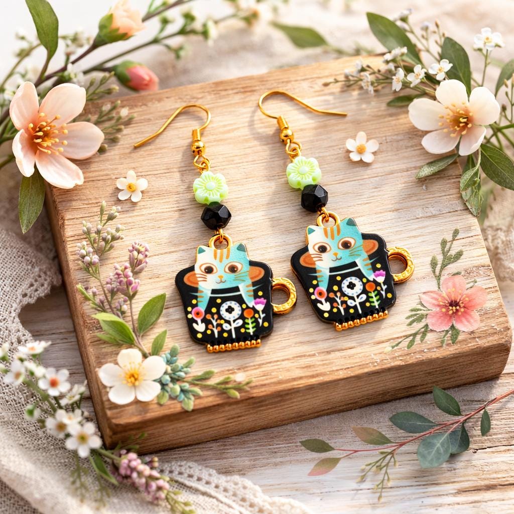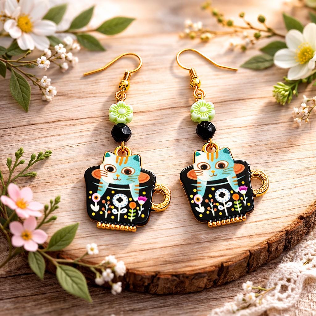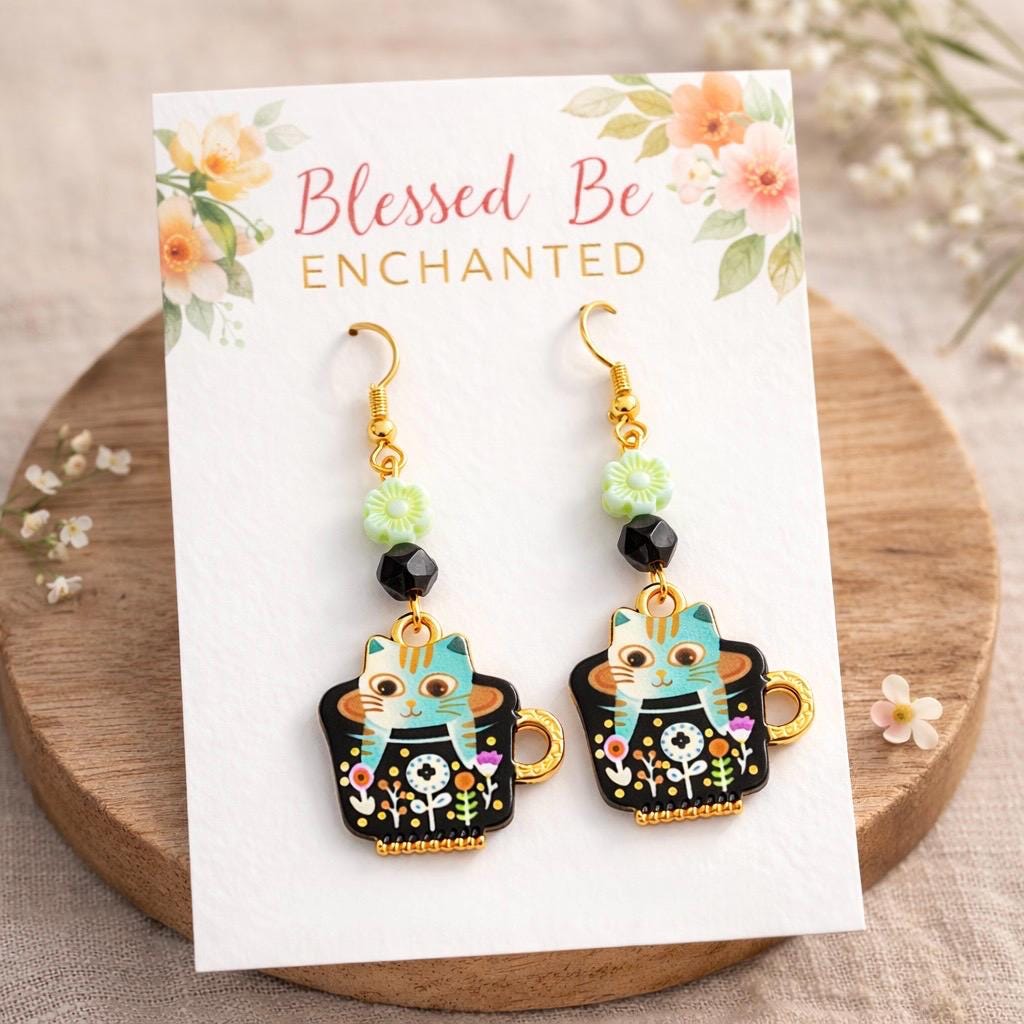 Lightweight and full of personality, they’re perfect for cat lovers, tea lovers, and those who adore a little mystical charm in their everyday style.