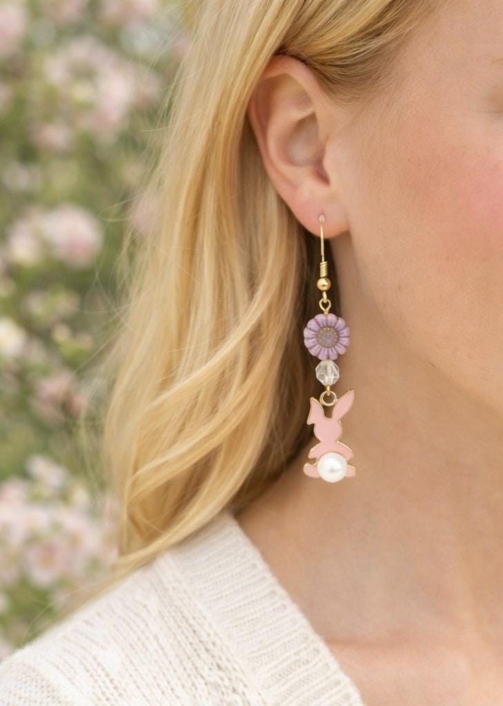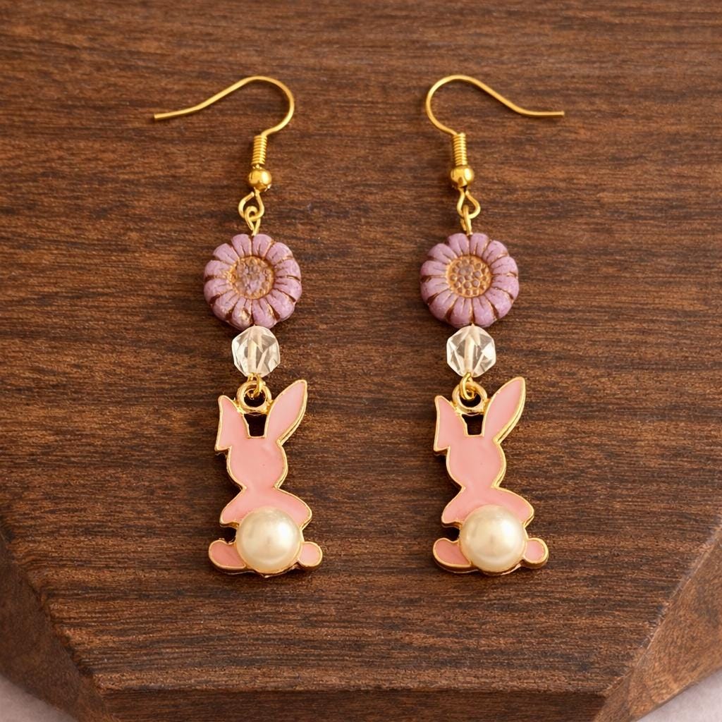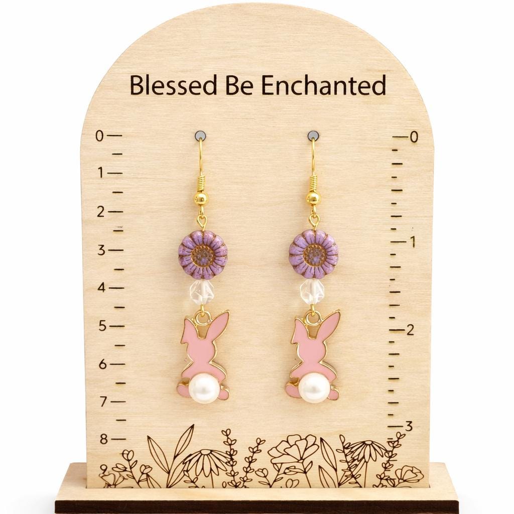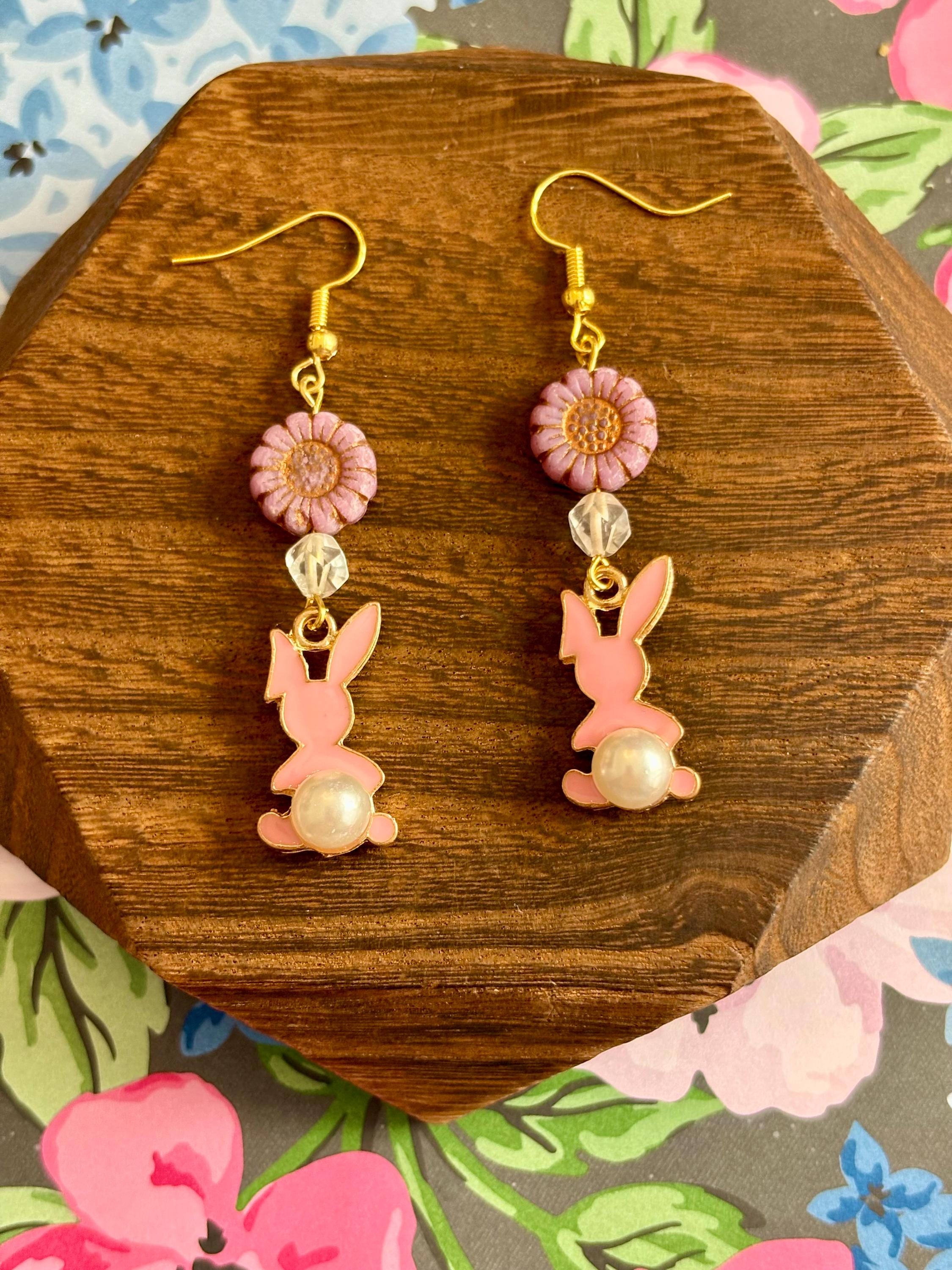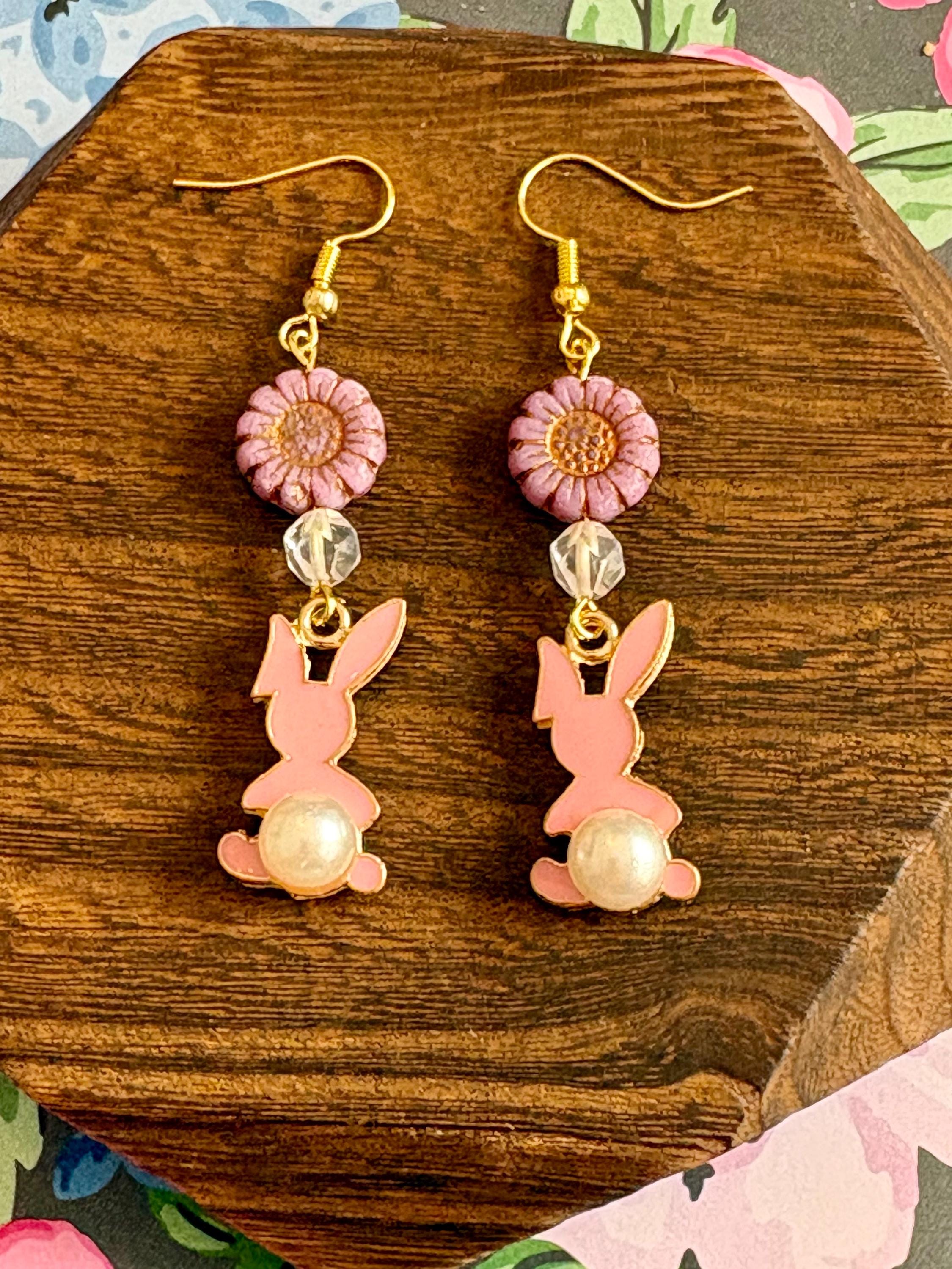 These Roseblossom Bunny Pearl Earrings are a tender celebration of love, renewal, and soft feminine strength! Featuring star-cut Rose Quartz gemstones, delicate Czech glass sunflower beads, and charming pink enamel bunny charms with pearl tails, they radiate gentle heart-centered energy.