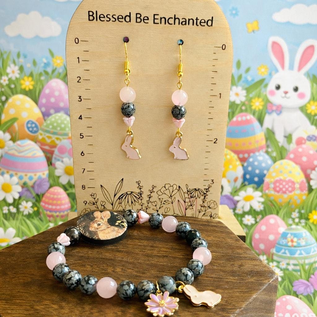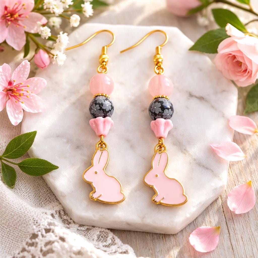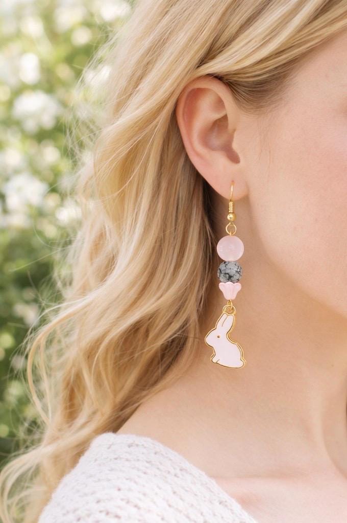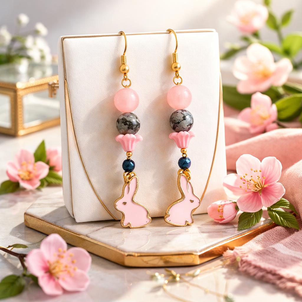 They pair beautifully with gold jewelry and gemstone bracelets — especially the matching Blossom Meadow Bunny Harmony Bracelet 🐰💕