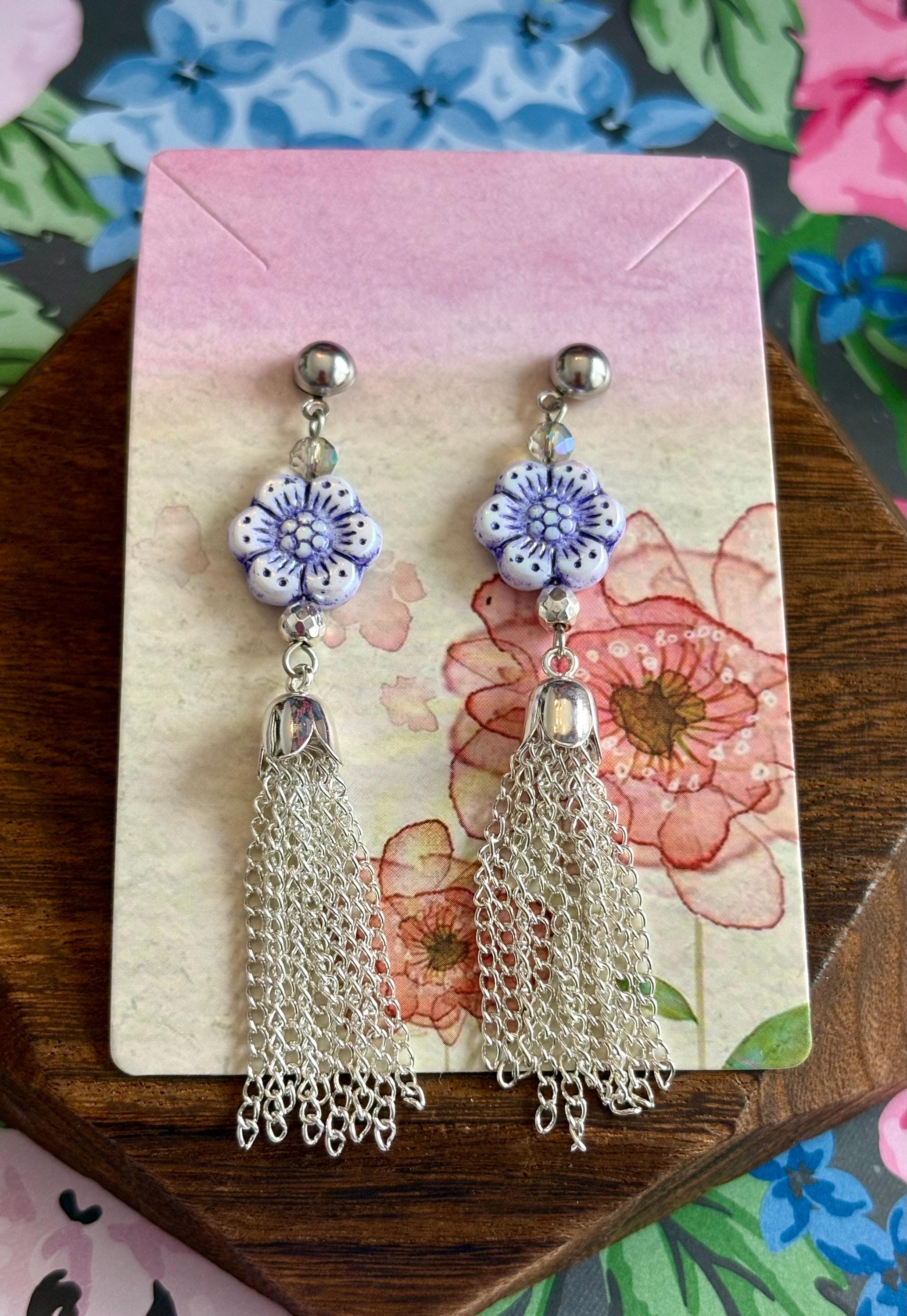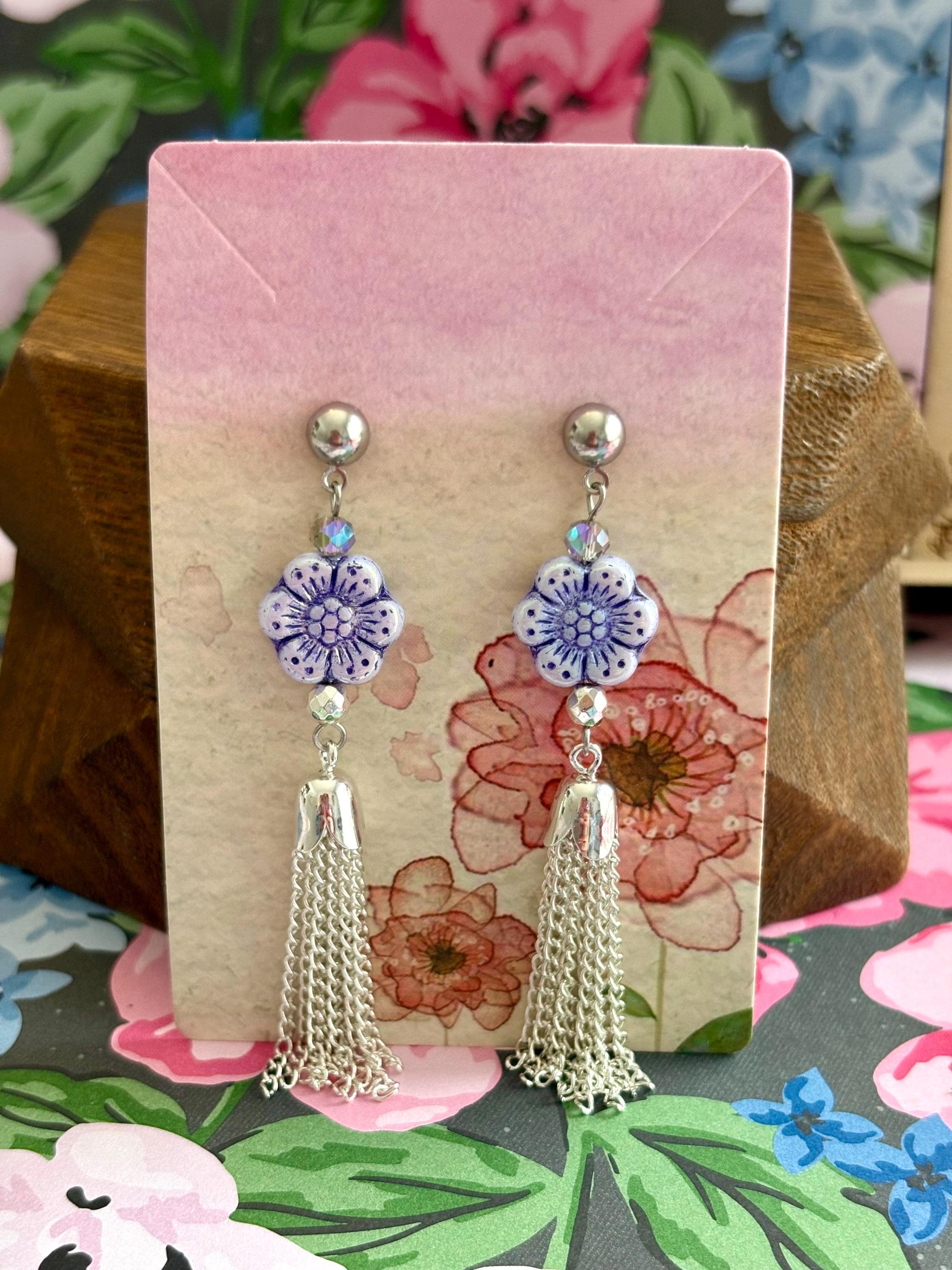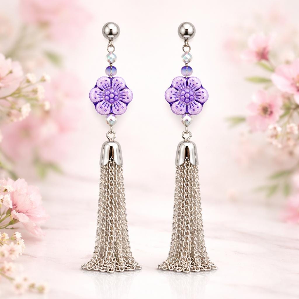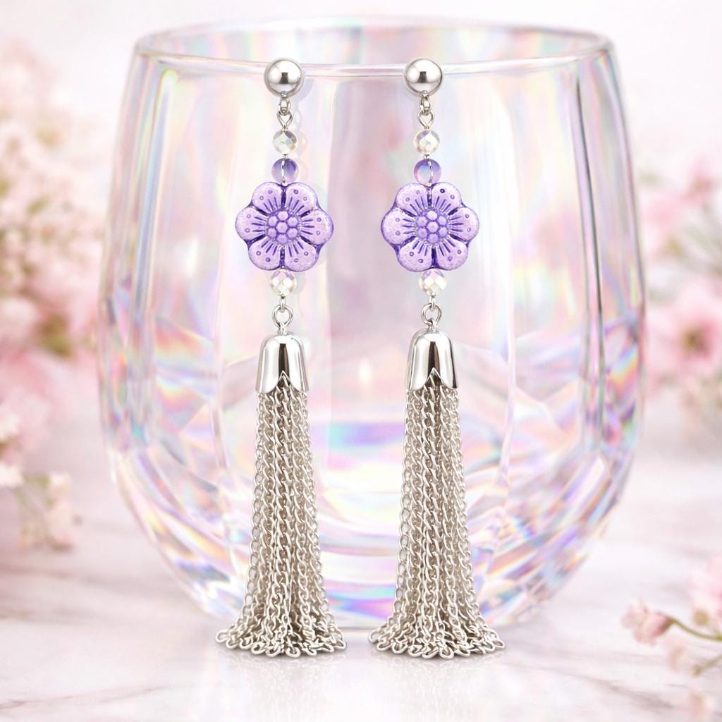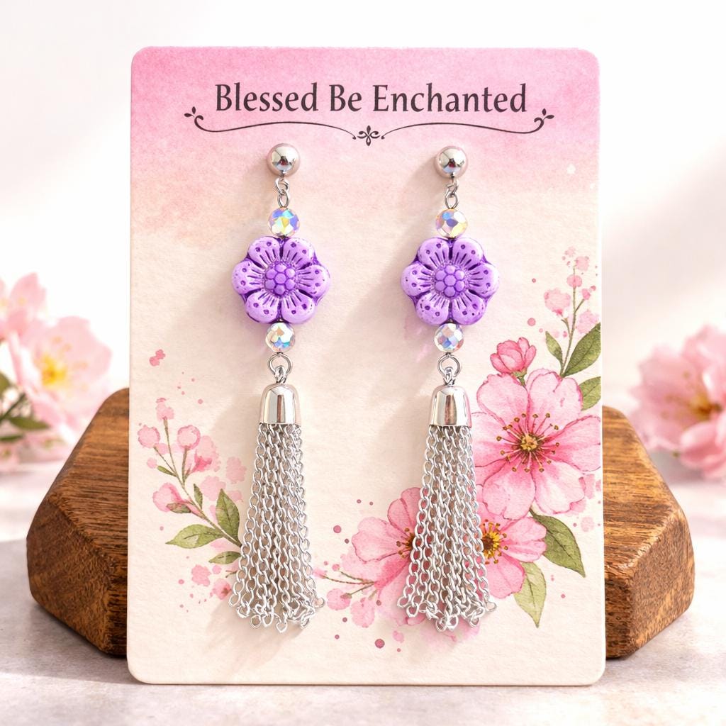 Step into soft feminine strength with my Violet Petal Serenity Tassel Earrings — a graceful blend of floral beauty, grounding energy, and shimmering movement!