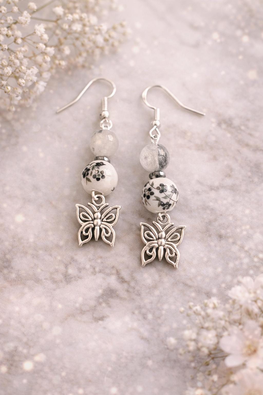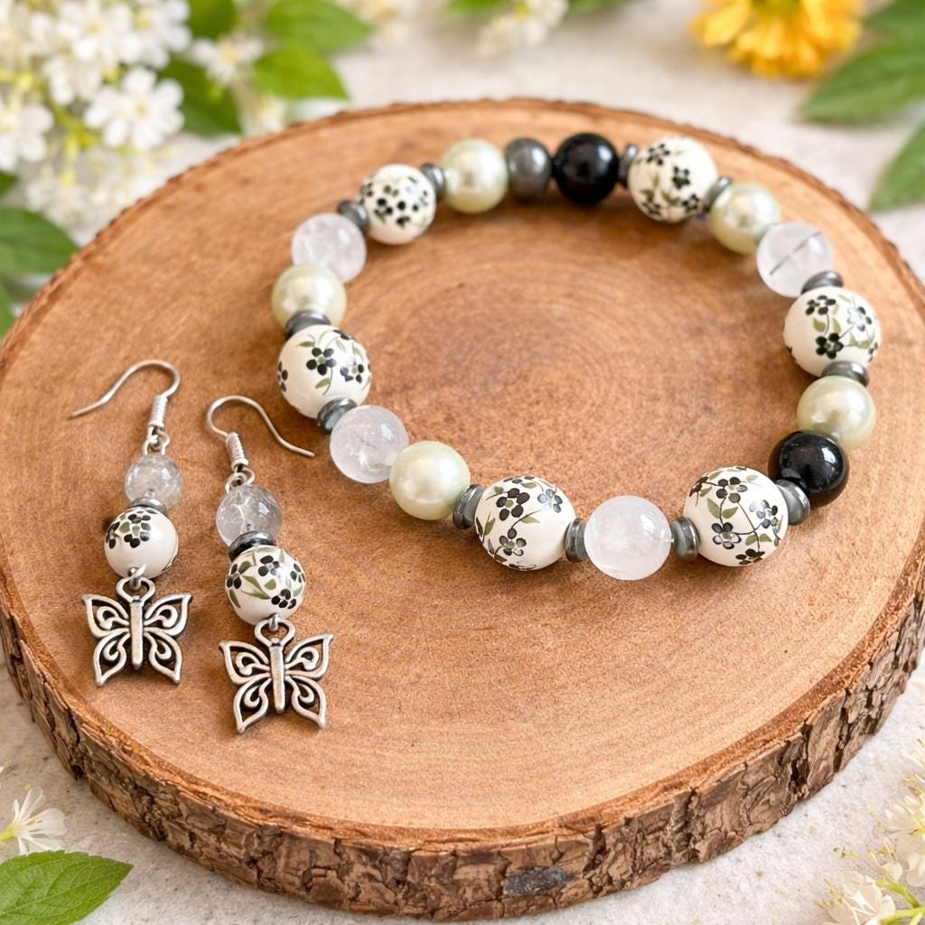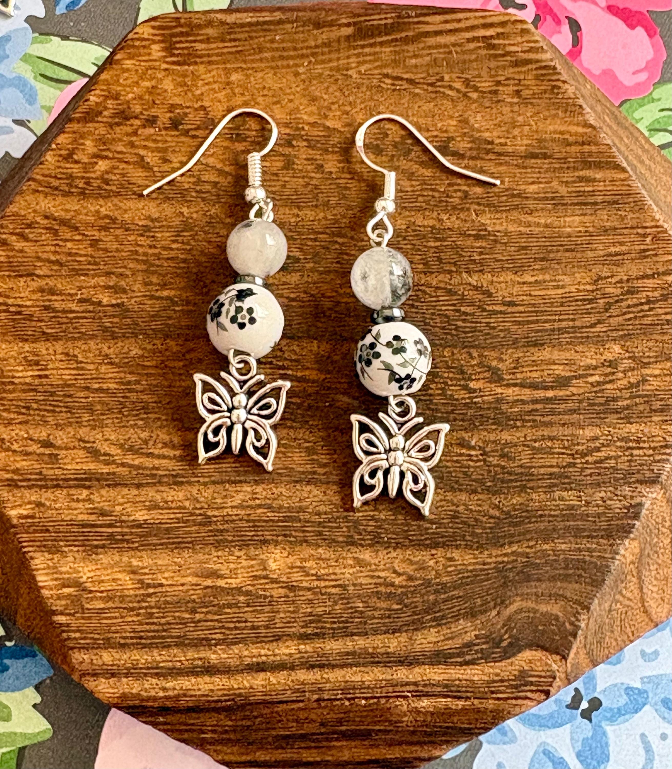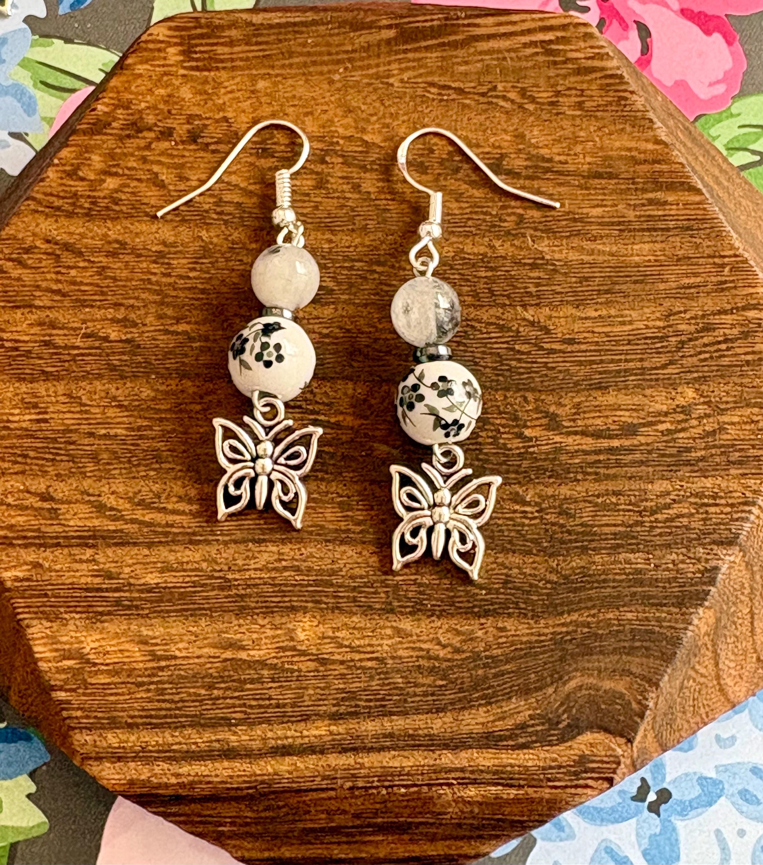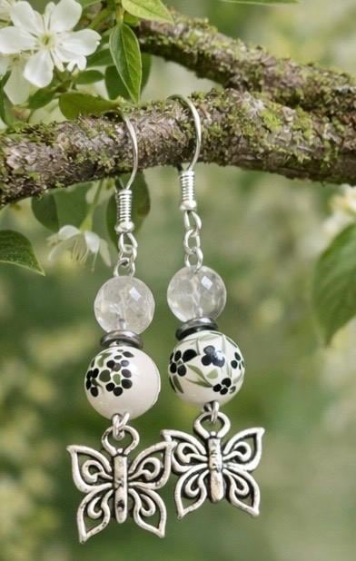 With deep noir tones, grounding hematite, and tourmalinated quartz kissed with silver, these earrings carry the energy of transformation, protection, and inner clarity. Finished with delicate butterfly charms, they are a symbol of rebirth rising from shadow into light.