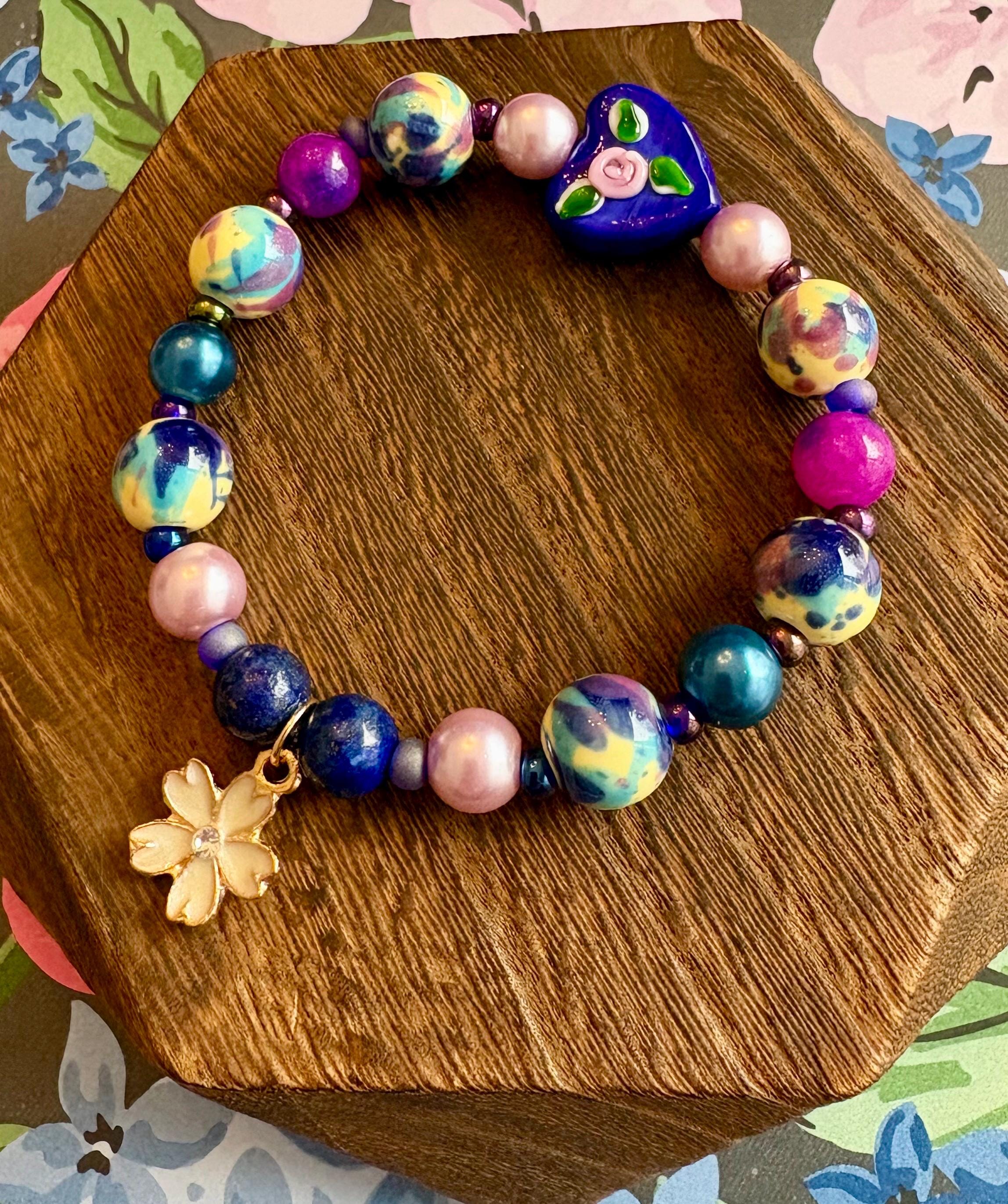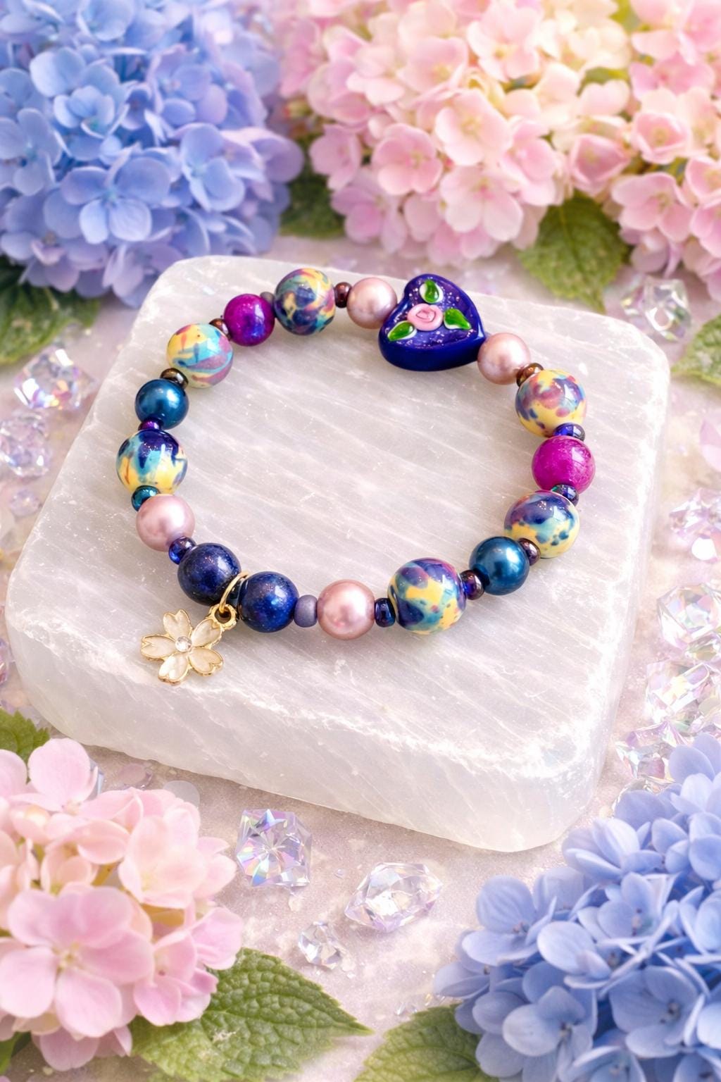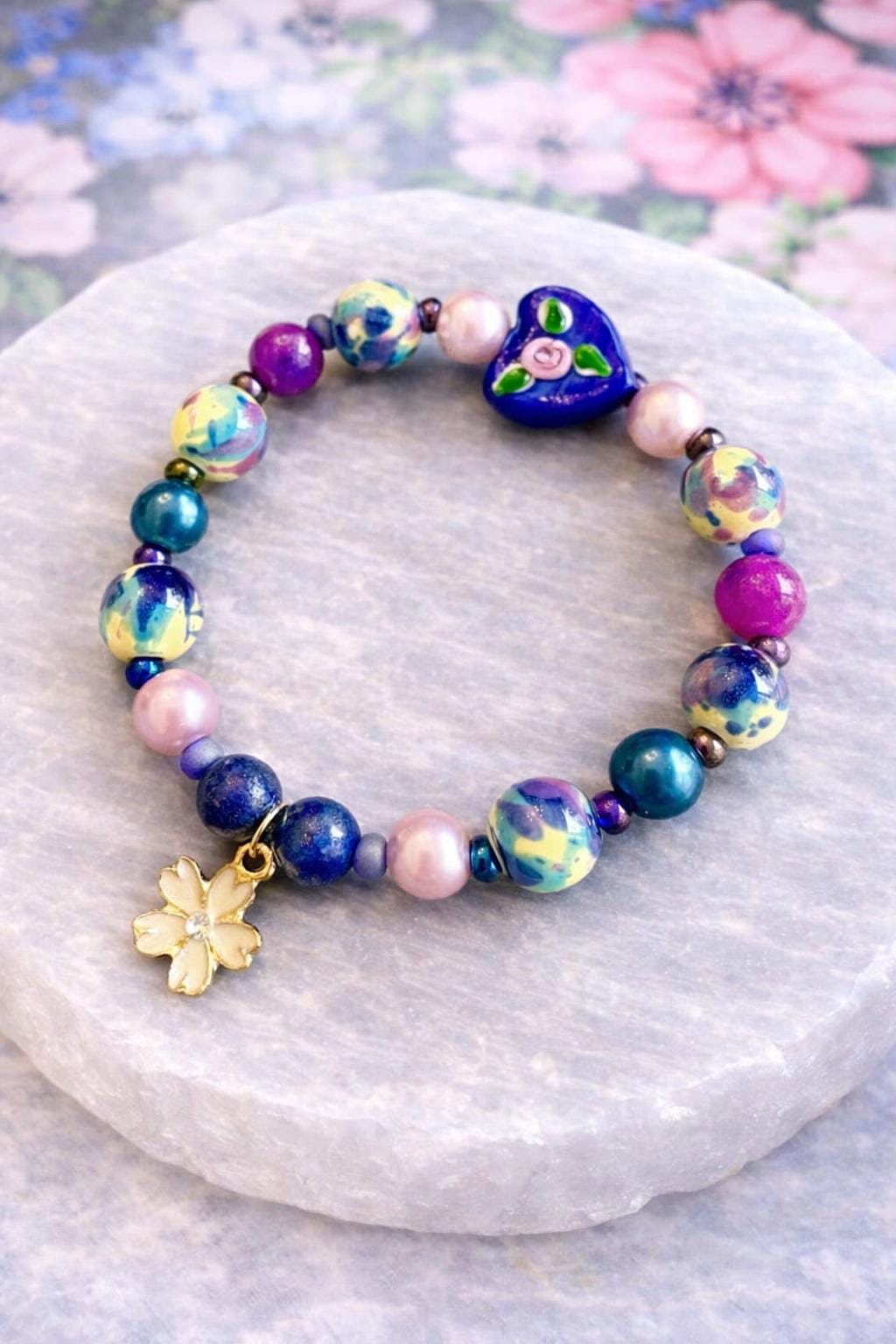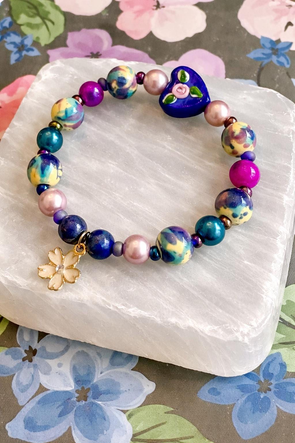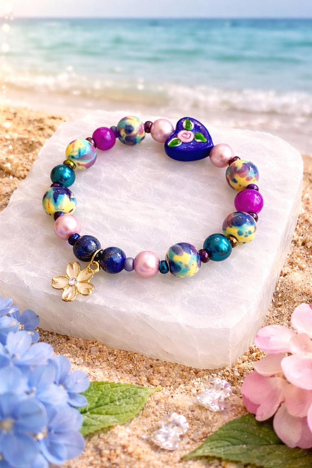 Love in Full Bloom is a joyful, heart-centered stretch bracelet designed to slip comfortably onto your wrist, wrapping you in color, creativity, and soulful love ✨