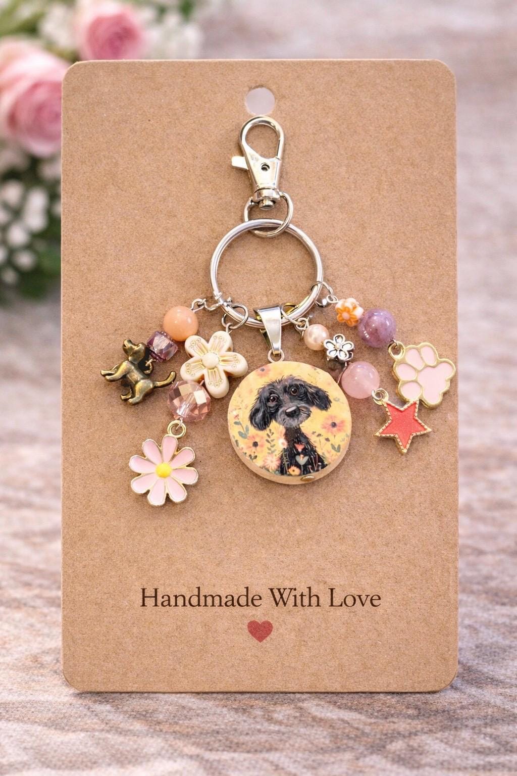 Handcrafted with glowing gemstones, delicate florals, and playful dog-loving details, this piece captures the pure joy, loyalty, and unconditional love our furry companions bring into our lives.