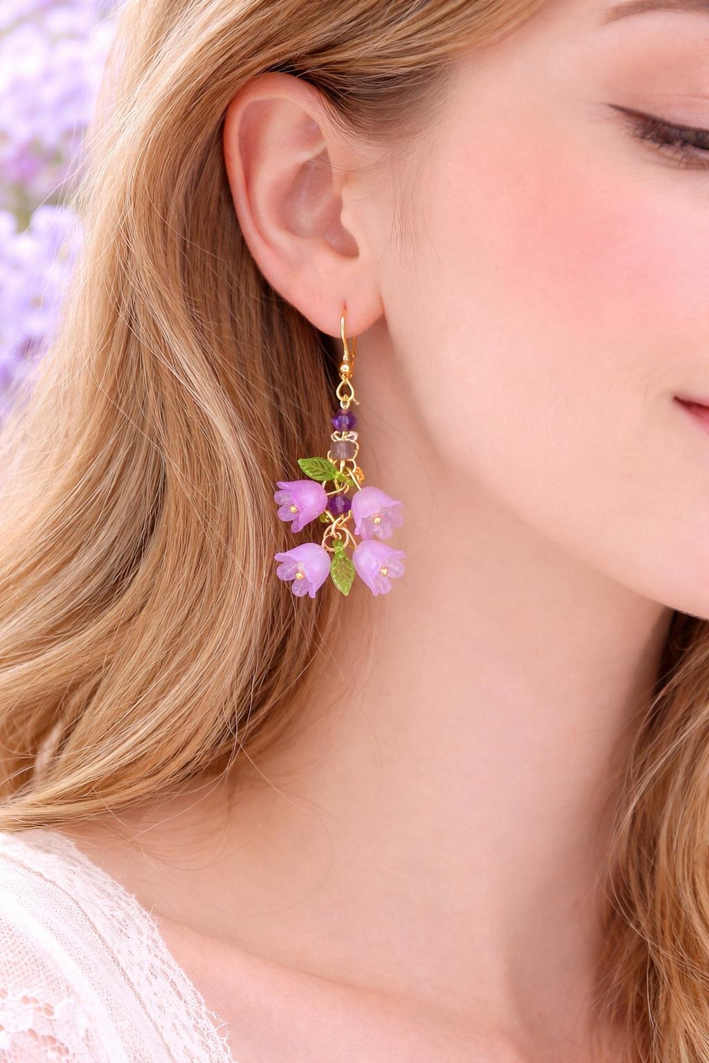 Step into a dreamy spring meadow with these enchanting Amethyst Meadow Bloom Earrings, where delicate blossoms and soft purple hues come together in a graceful, feminine design.