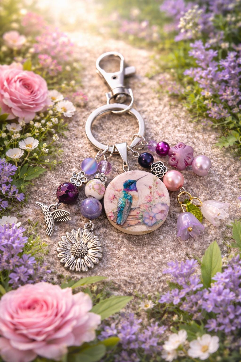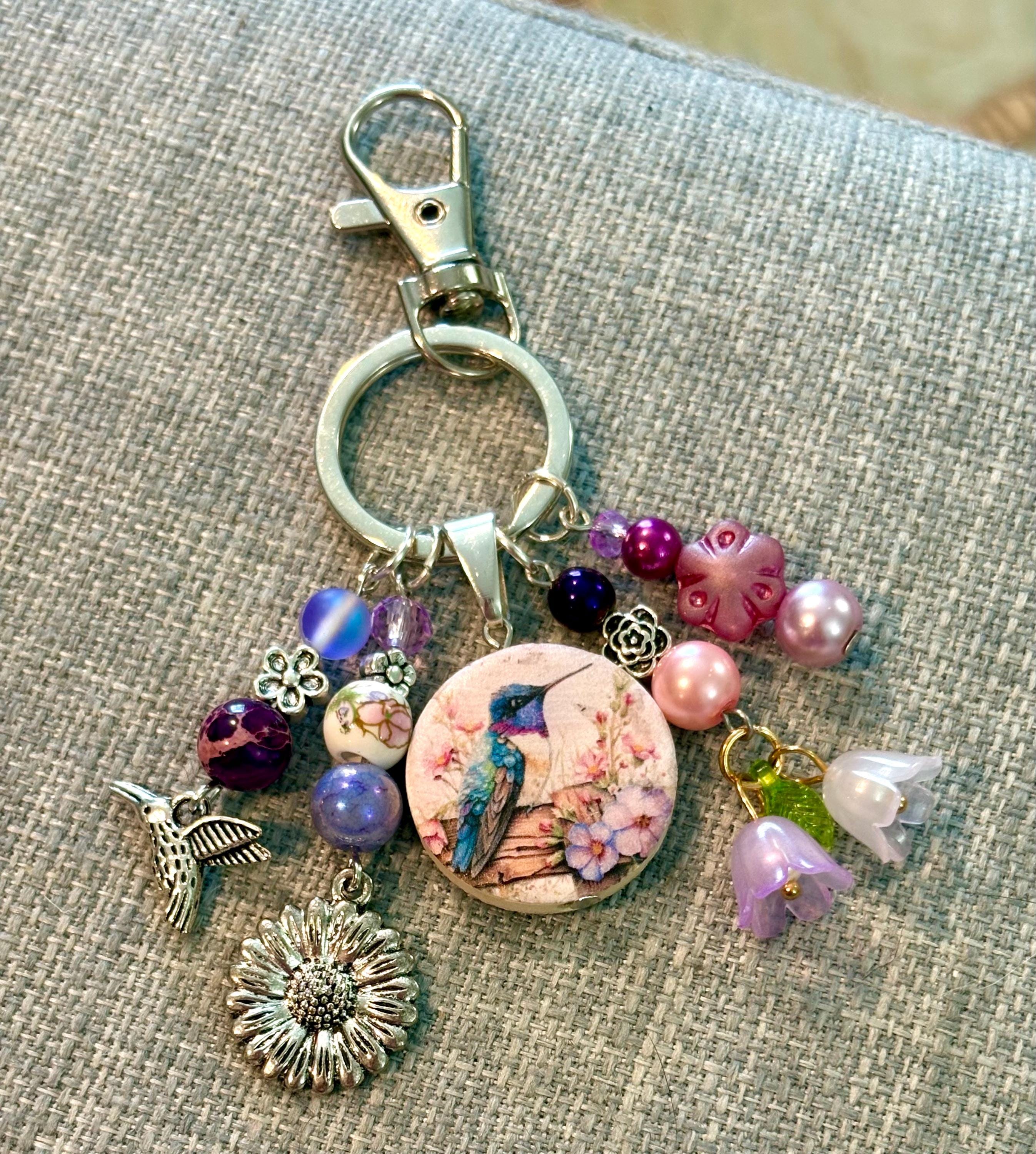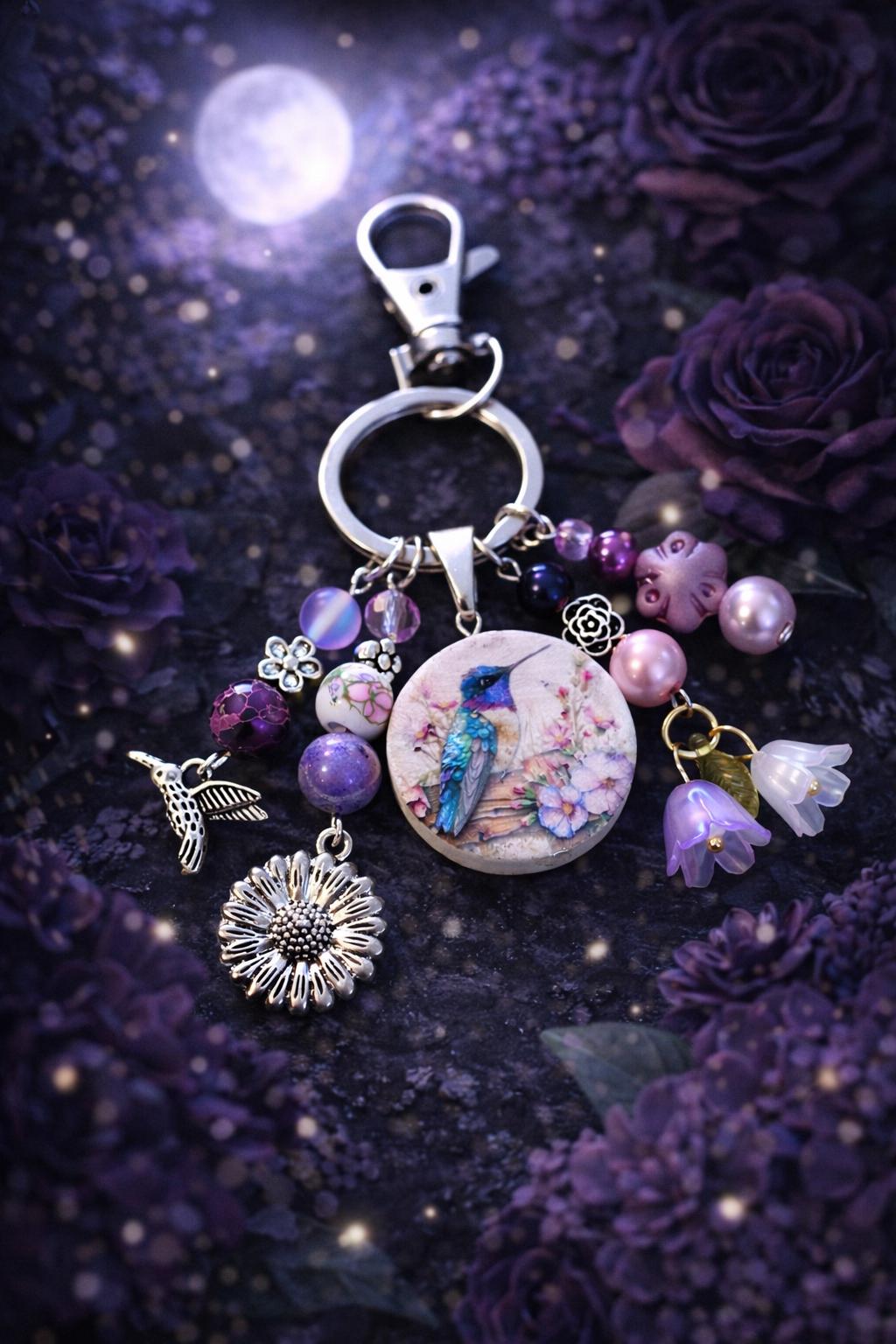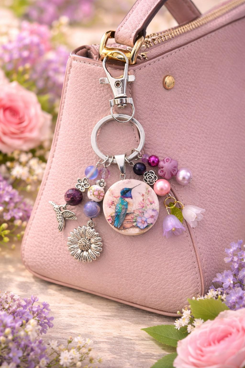 🌿 Enchanted Hummingbird Bloom Purse Charm / Keychain