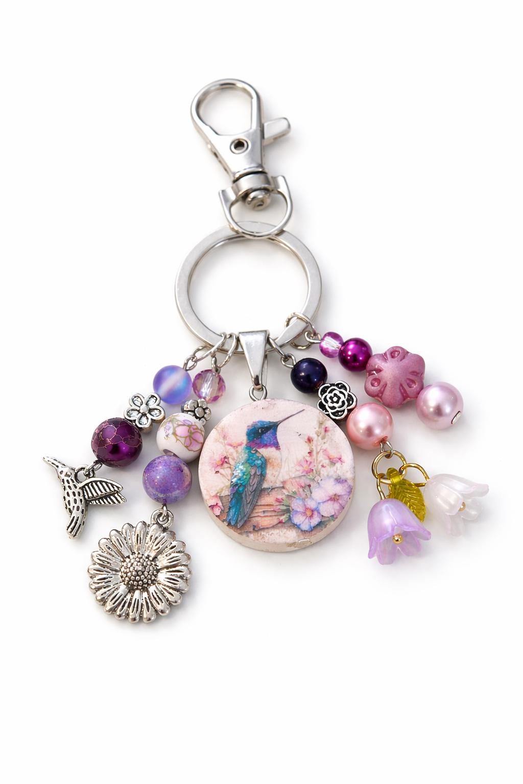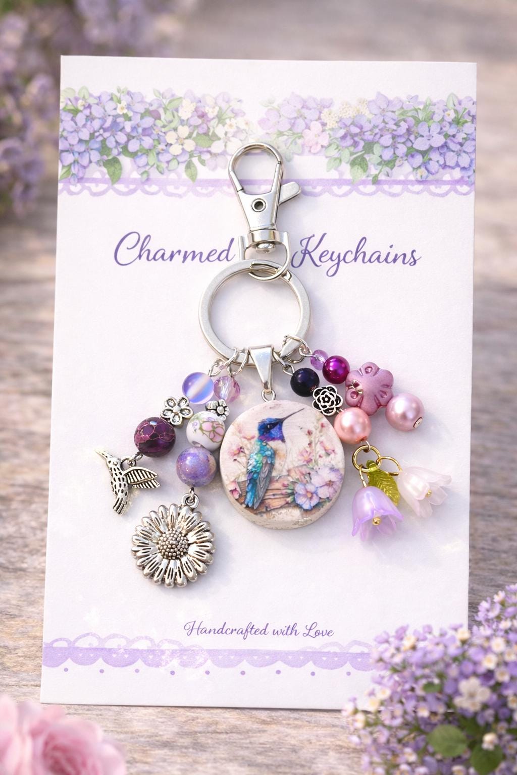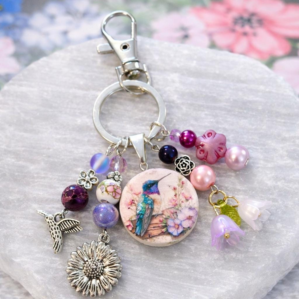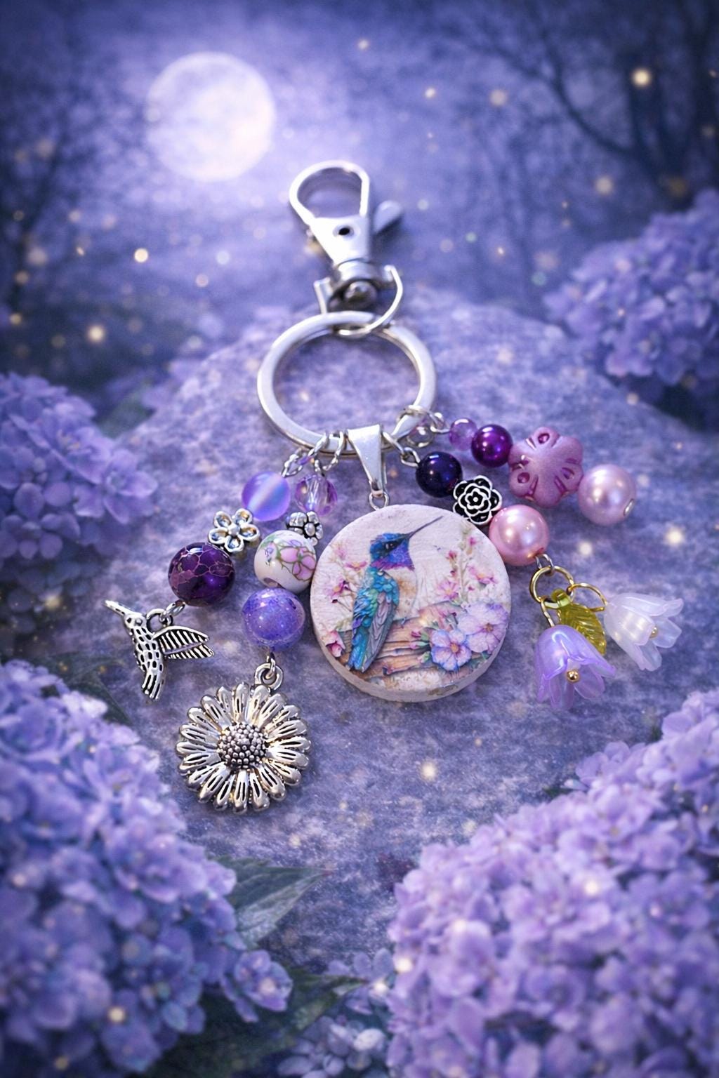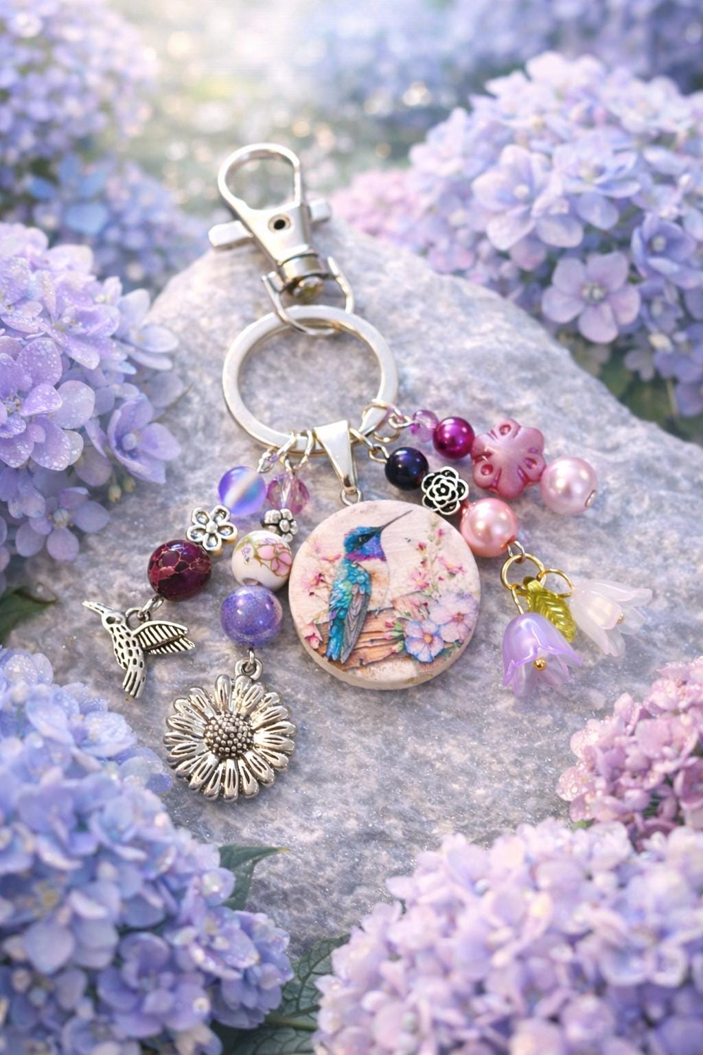 🌿 Enchanted Hummingbird Bloom Purse Charm / Keychain