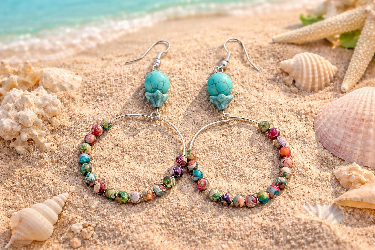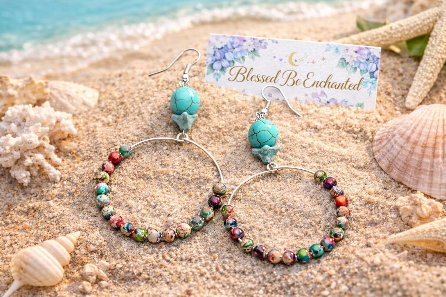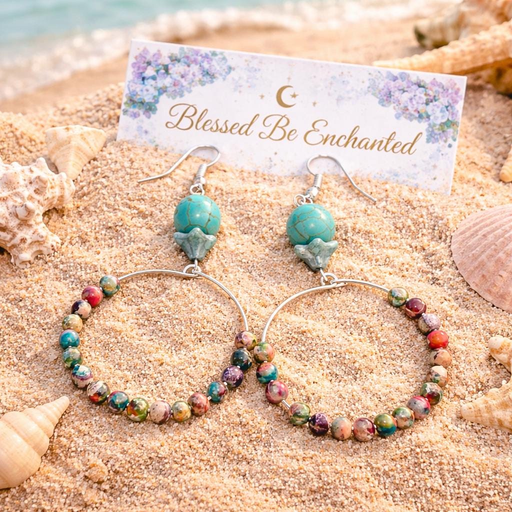 These vibrant gemstone hoop earrings are bursting with joyful hues, making them the perfect statement piece for free spirits, beach lovers, and color dreamers alike.