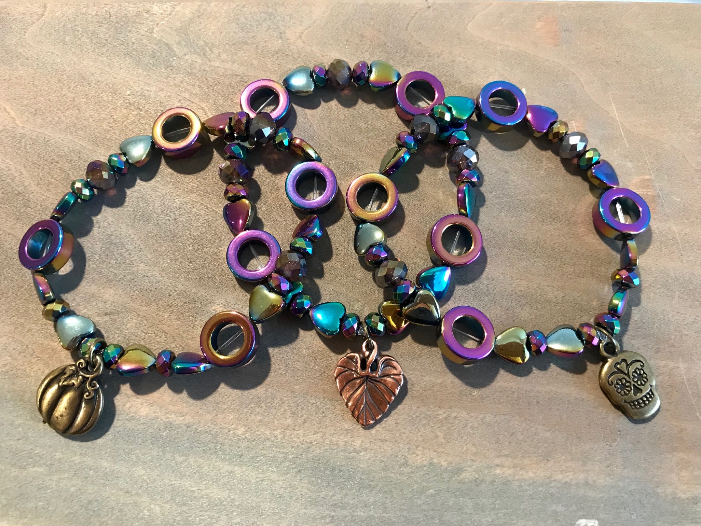 Gemstone Bracelet - Titanium Rainbow Hematite / Crystal Healing Bracelets for Women, Fall Charms